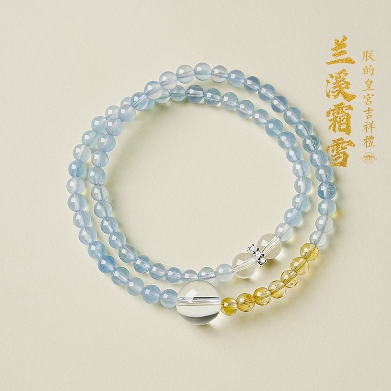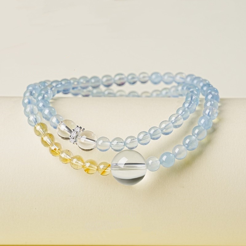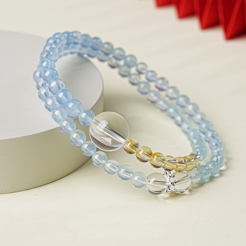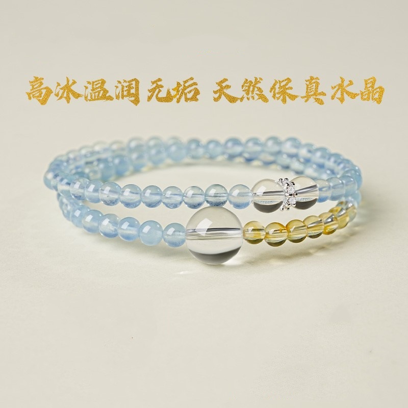 天然海蓝宝手串白水晶蓝色水晶手链轻奢高级感手饰送女生生日礼物