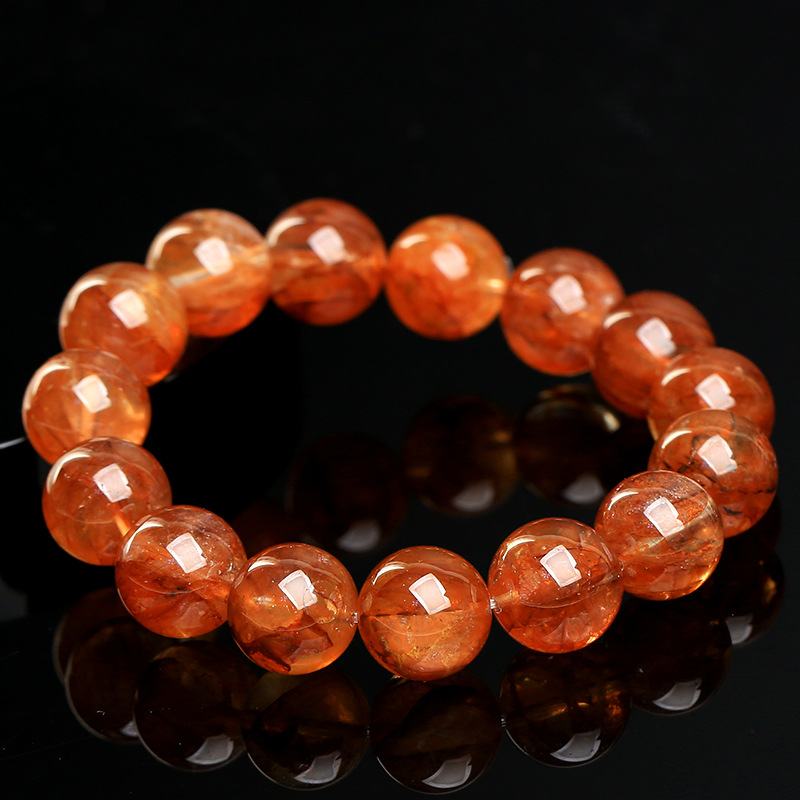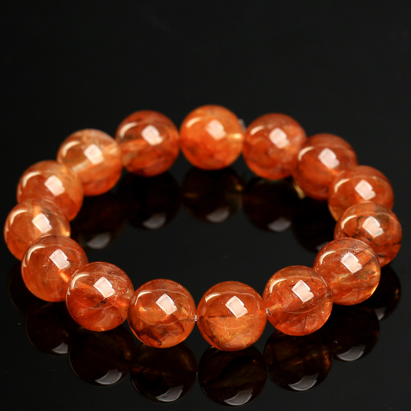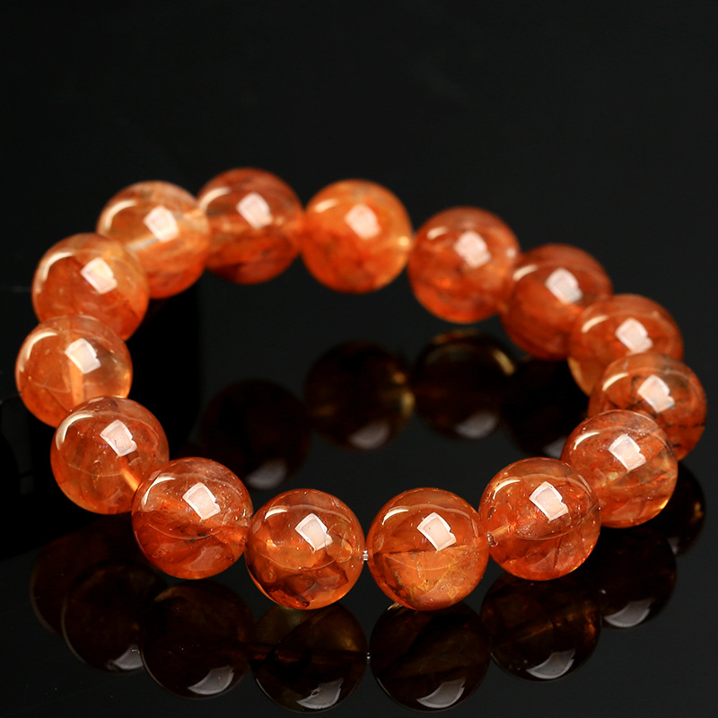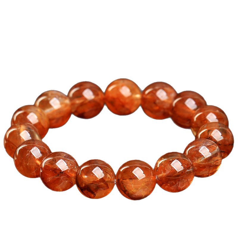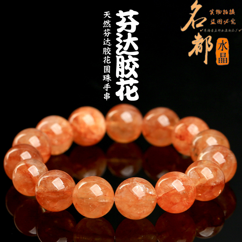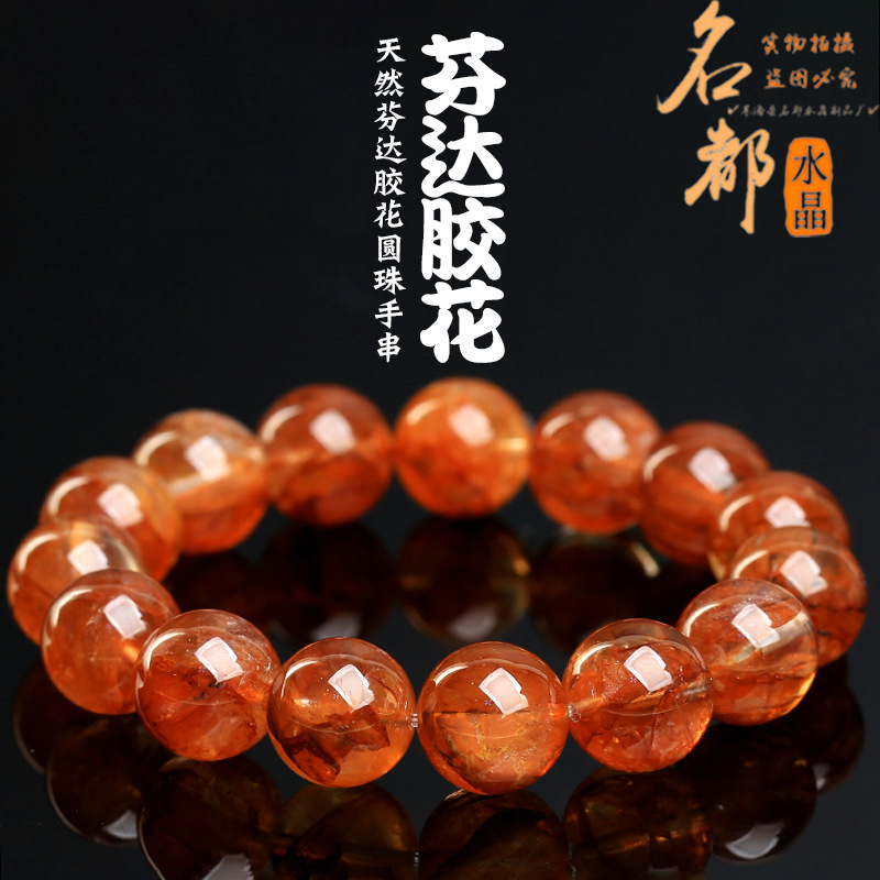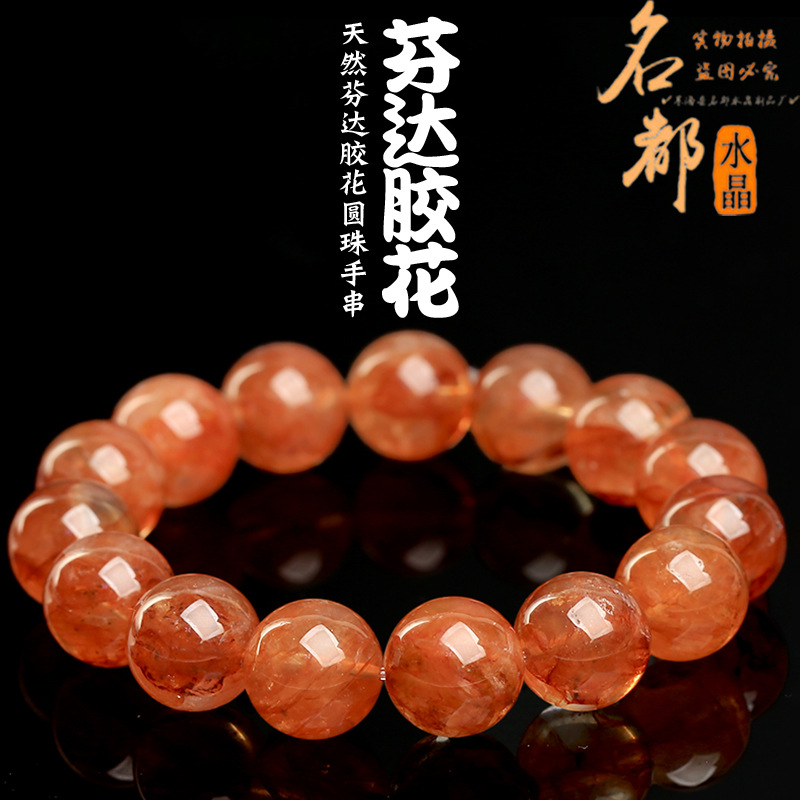 名都水晶 天然芬达红胶花手链 芬达红黄胶散珠手串圆珠批发
