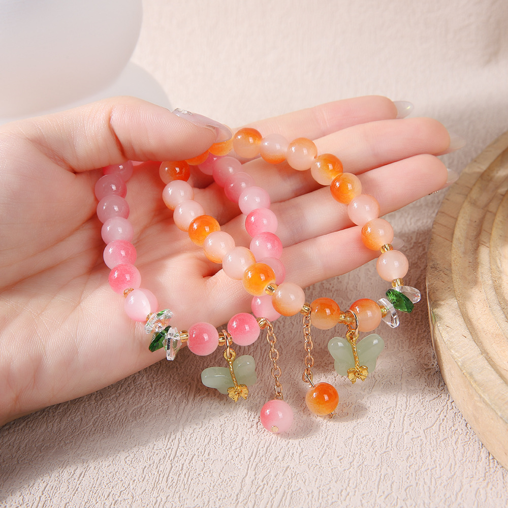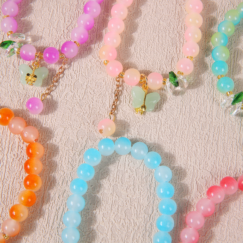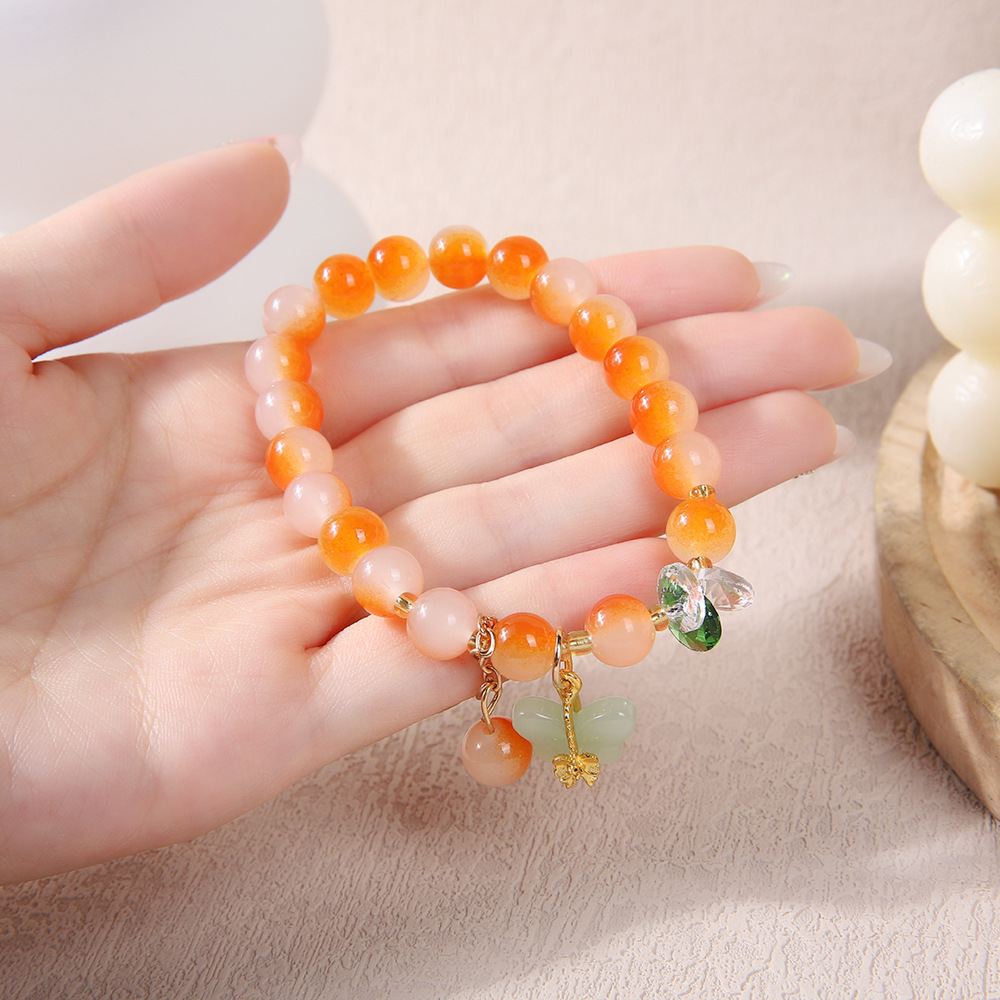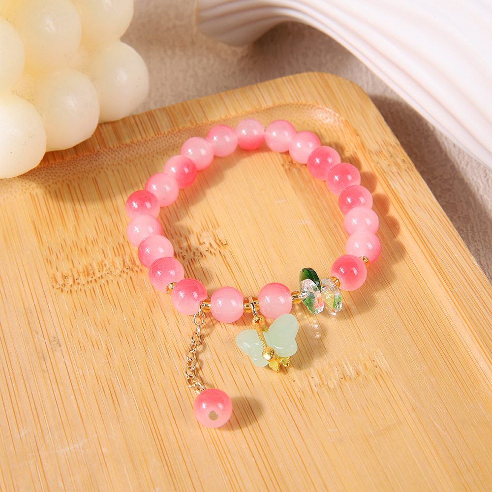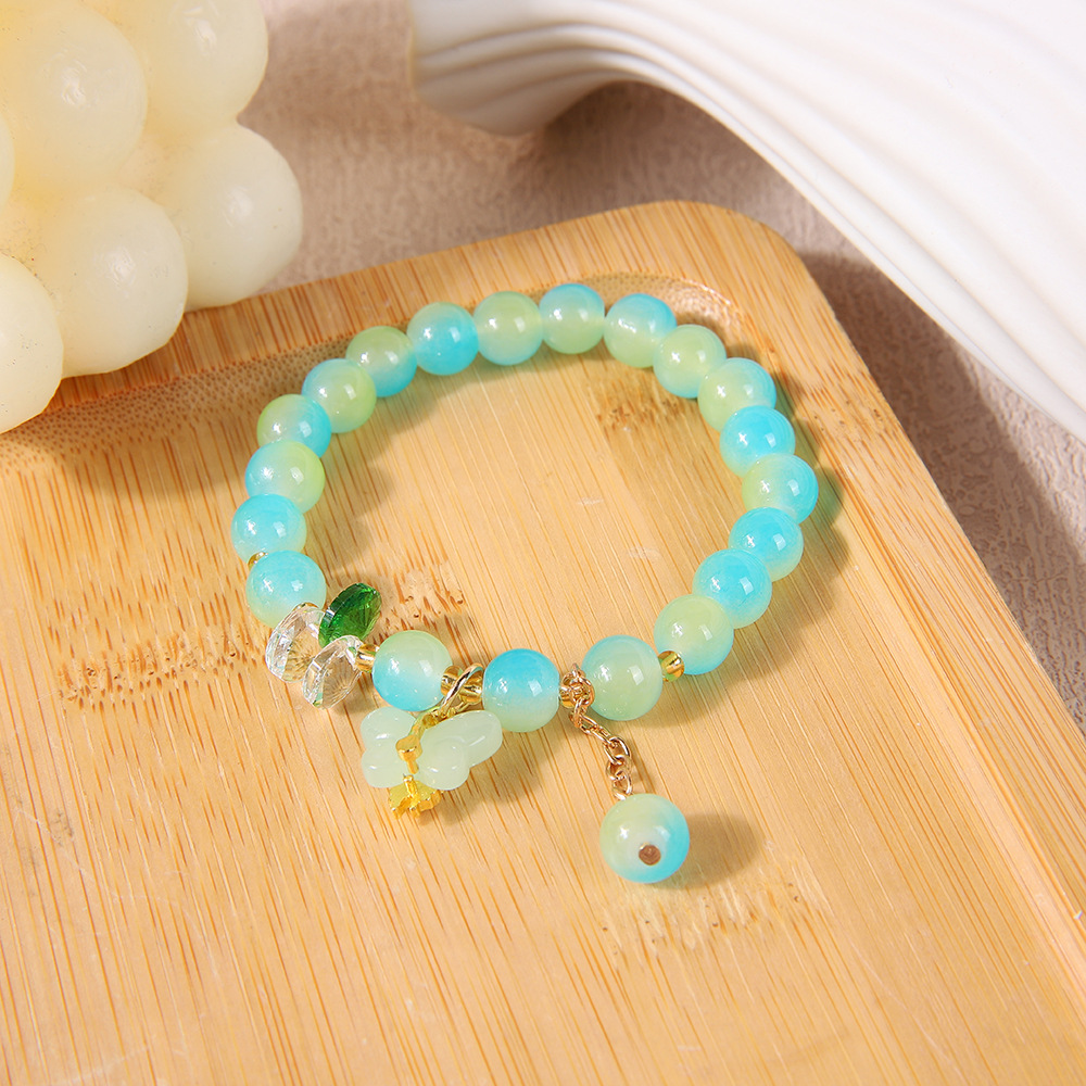 双色渐变色仿玉石玛瑙新款冰透水晶手链卡通吊坠学生党送闺蜜手串