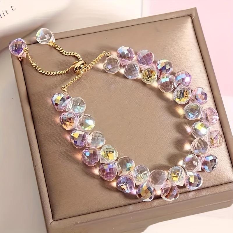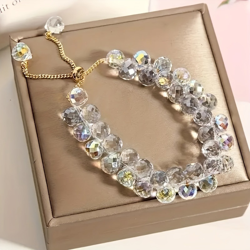 跨境外贸水晶手链 幻彩水晶珠水晶片隔片抽拉款直播爆款星辰手饰