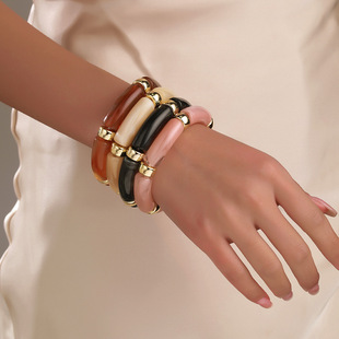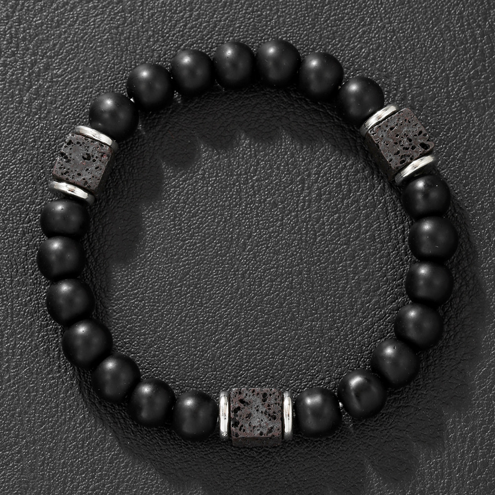直播热销黑曜石手链男士串珠方形火山石珠情侣手链批发亚马逊爆款