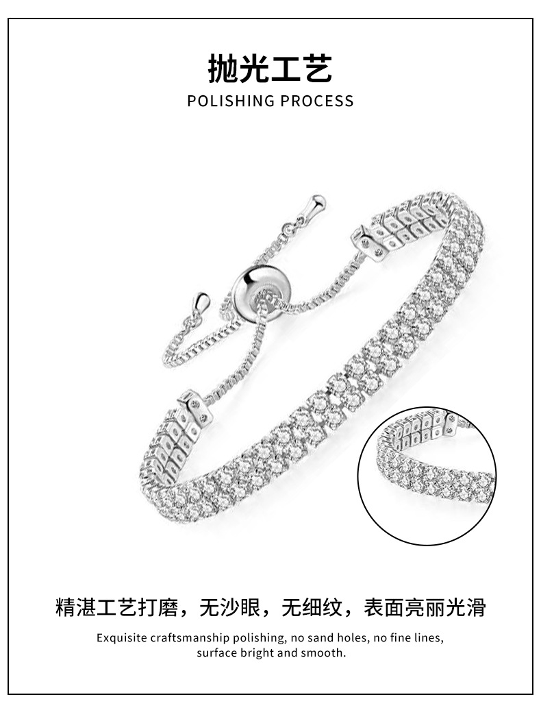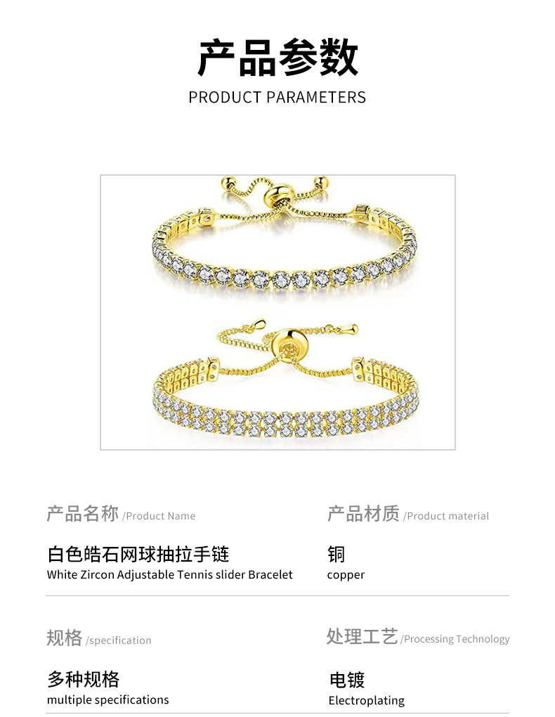 水晶之恋简约时髦个性锆石长方形手链高级感优雅气质满钻网球手链