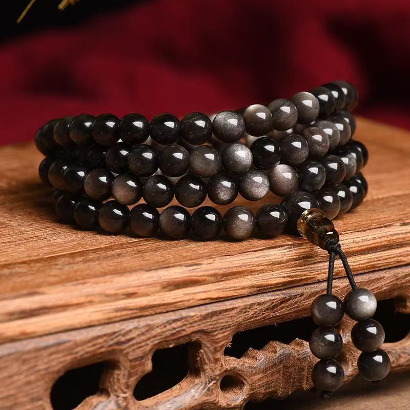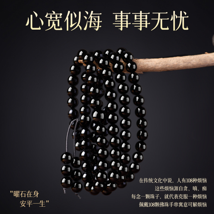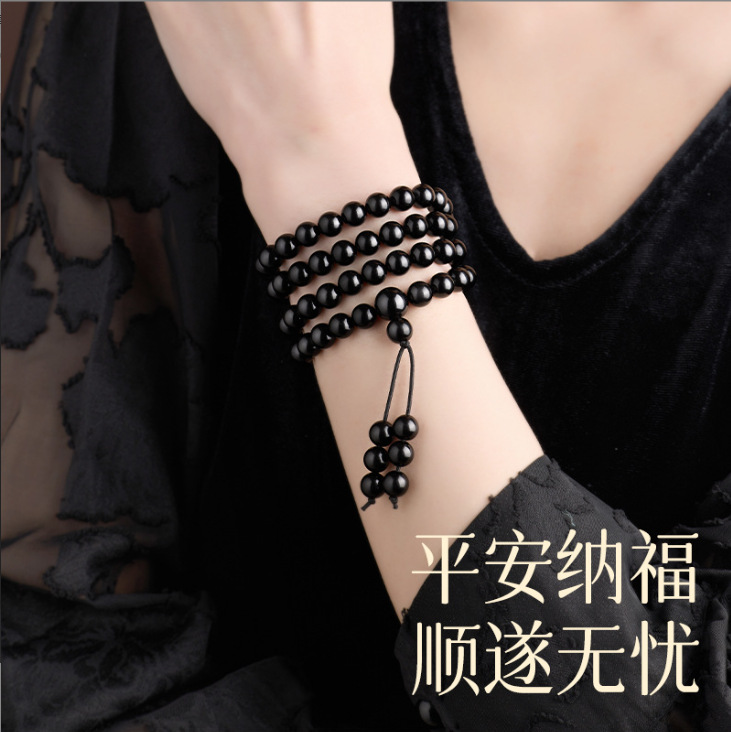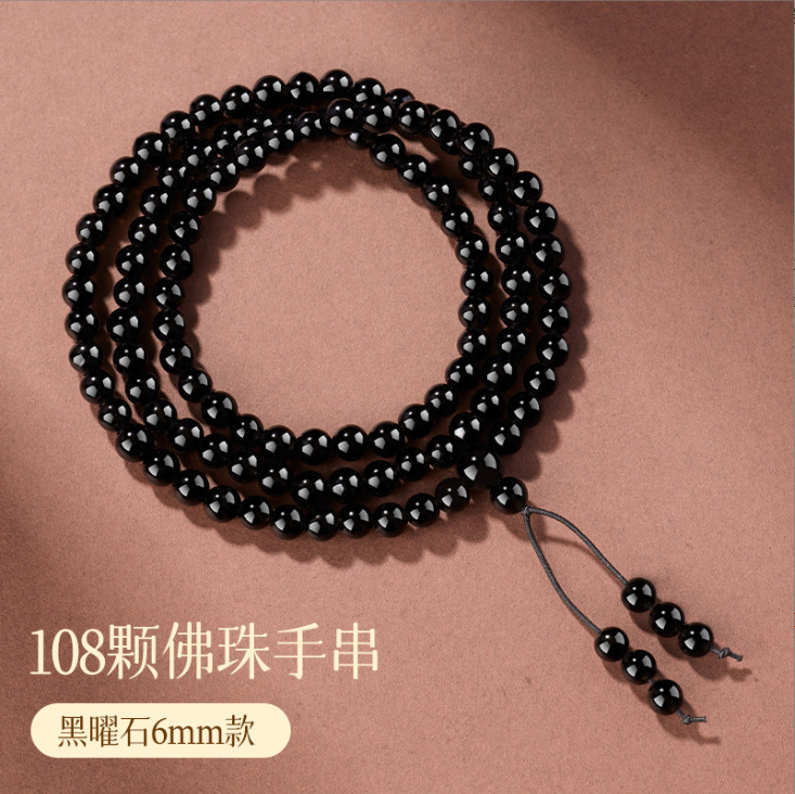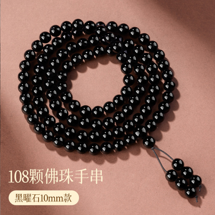 天然黑曜石手串108颗金曜佛珠蛇年本命年多圈手链串珠男女款批发