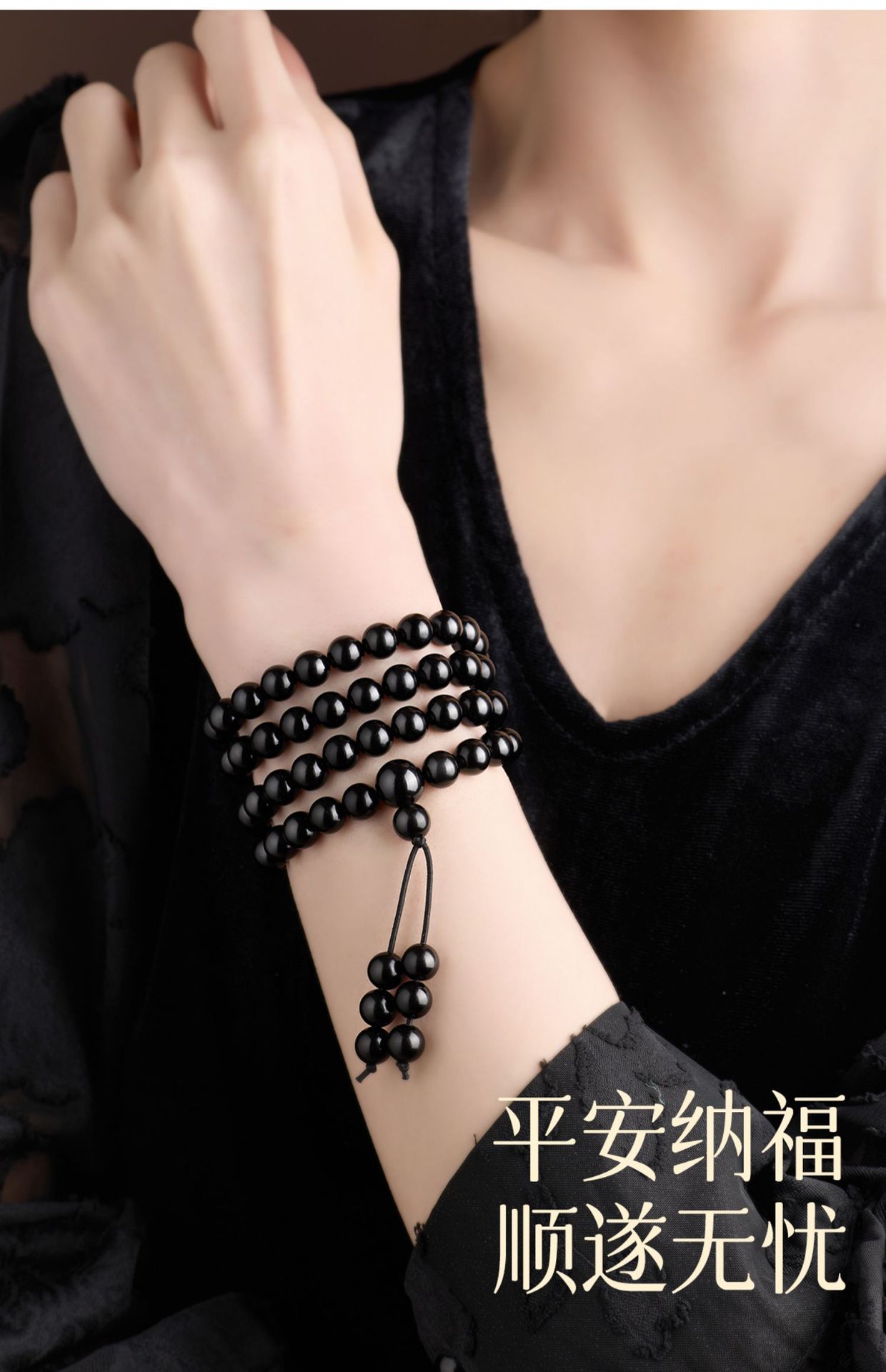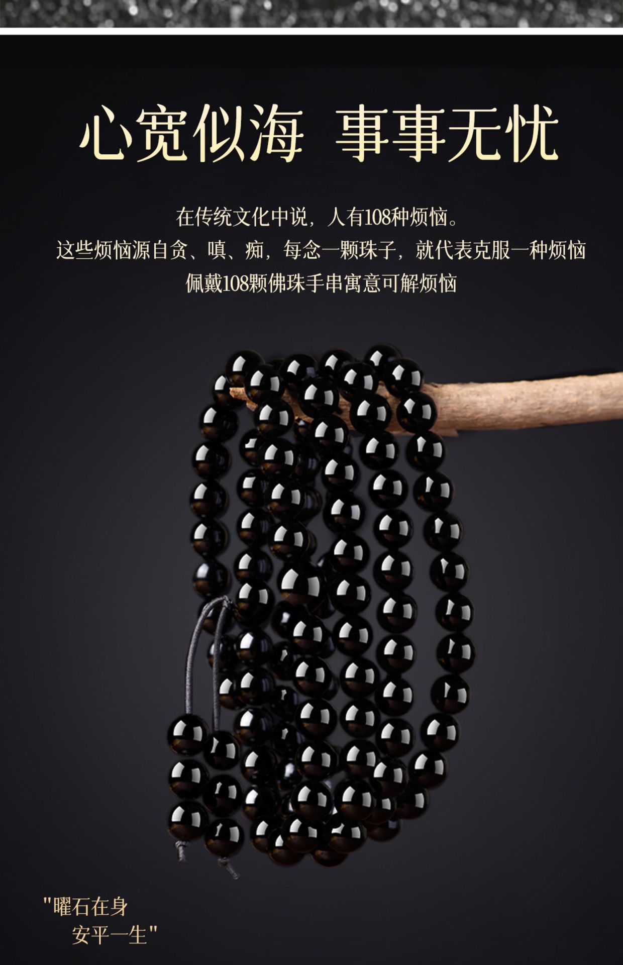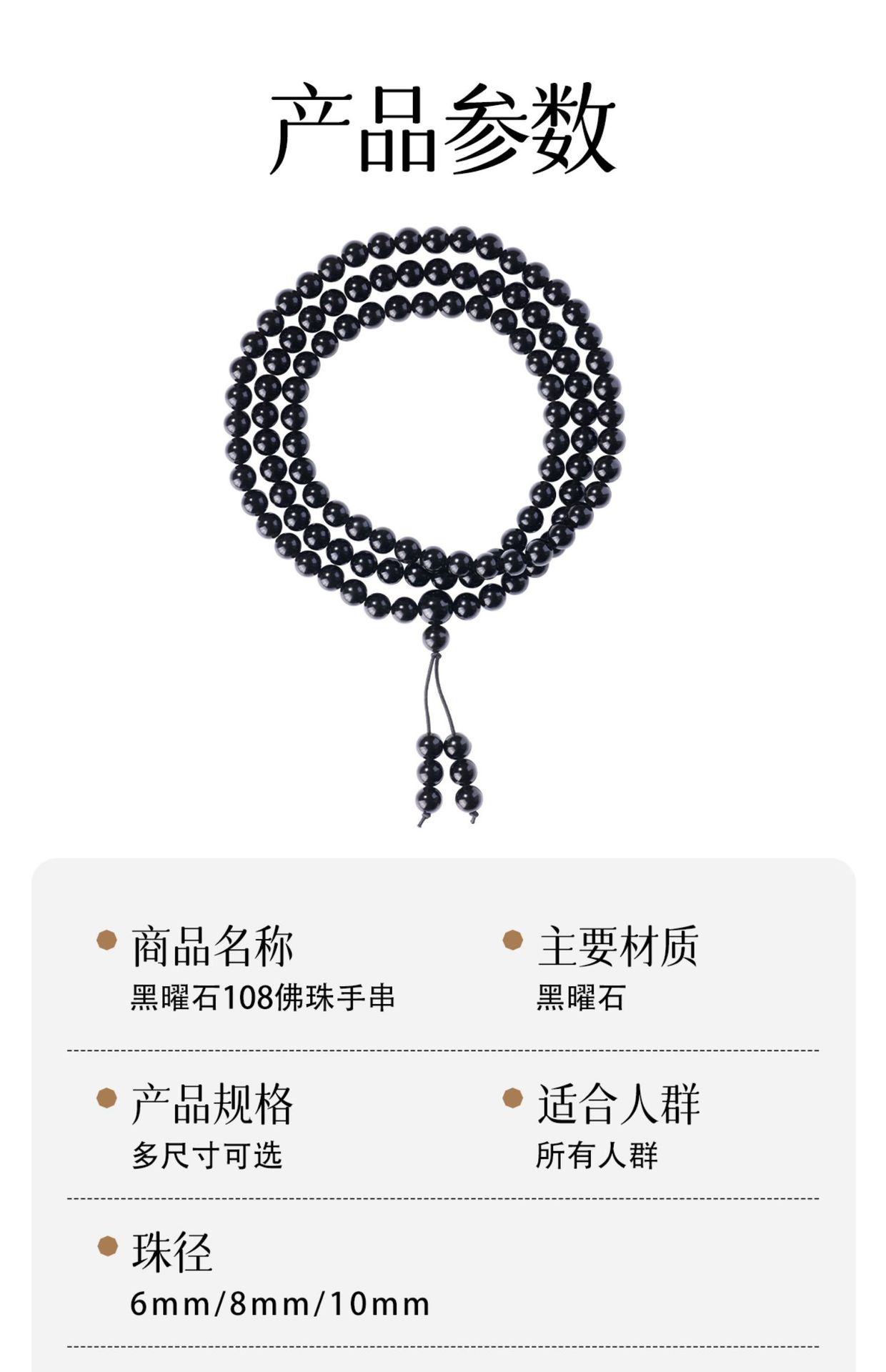 天然黑曜石手串108颗金曜佛珠蛇年本命年多圈手链串珠男女款批发