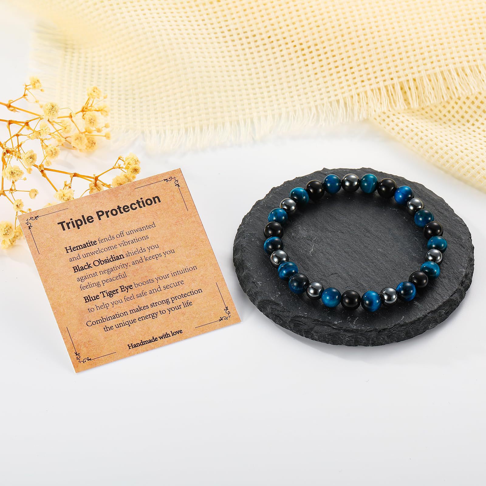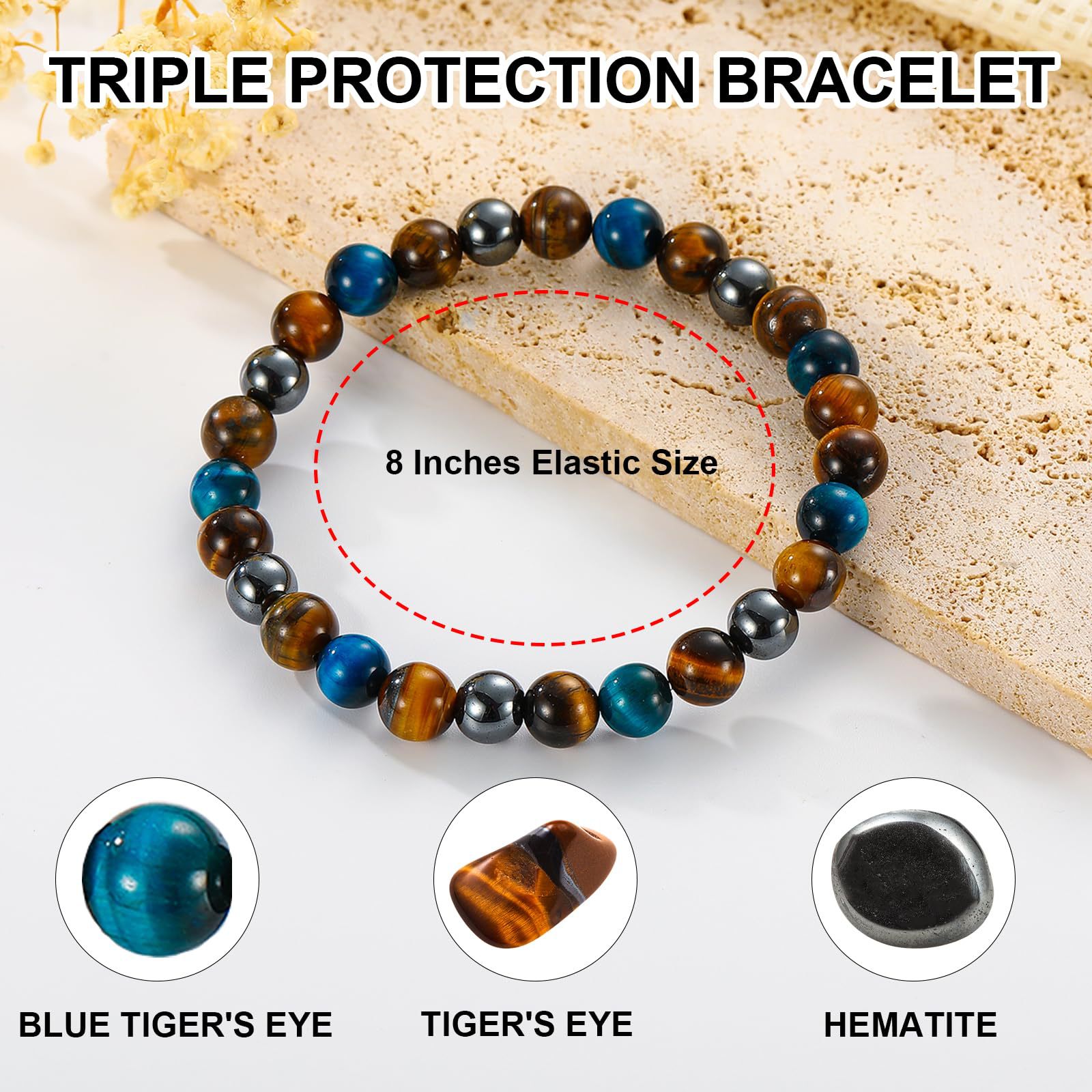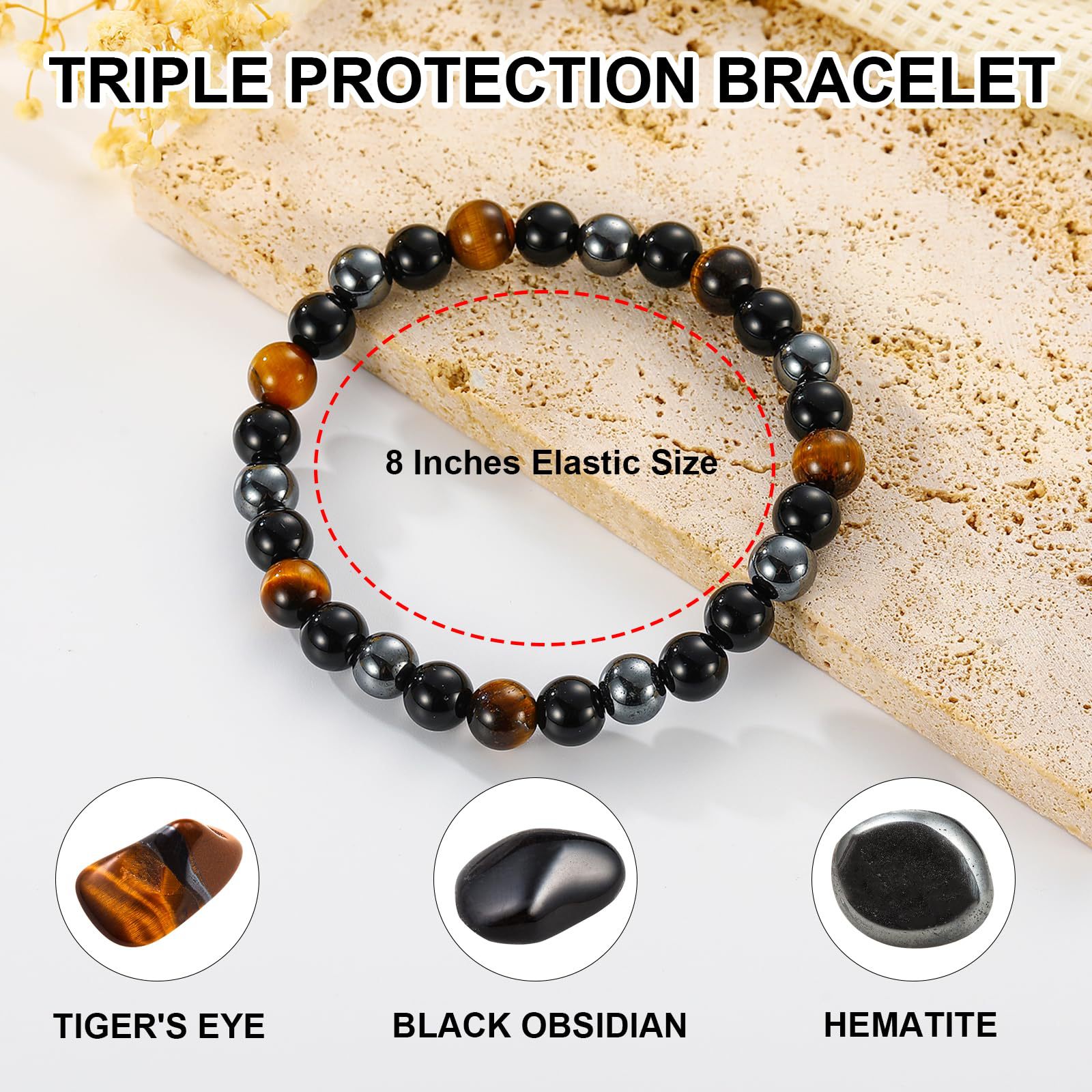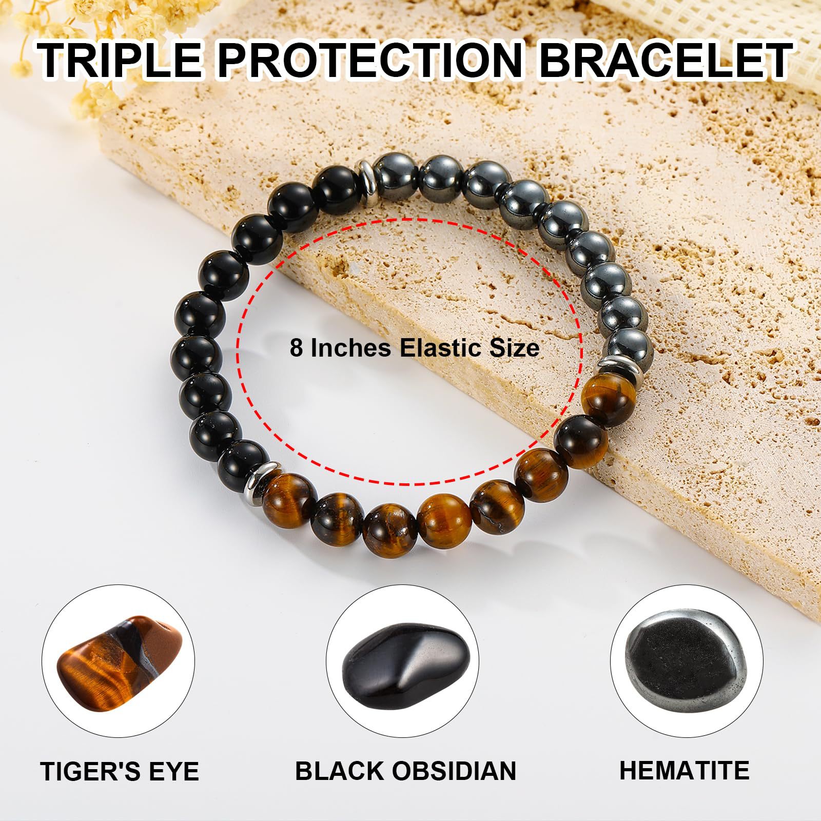 8mm虎眼石手链生日礼物串珠弹力绳黑曜石磁石蓝虎眼三重保护手链