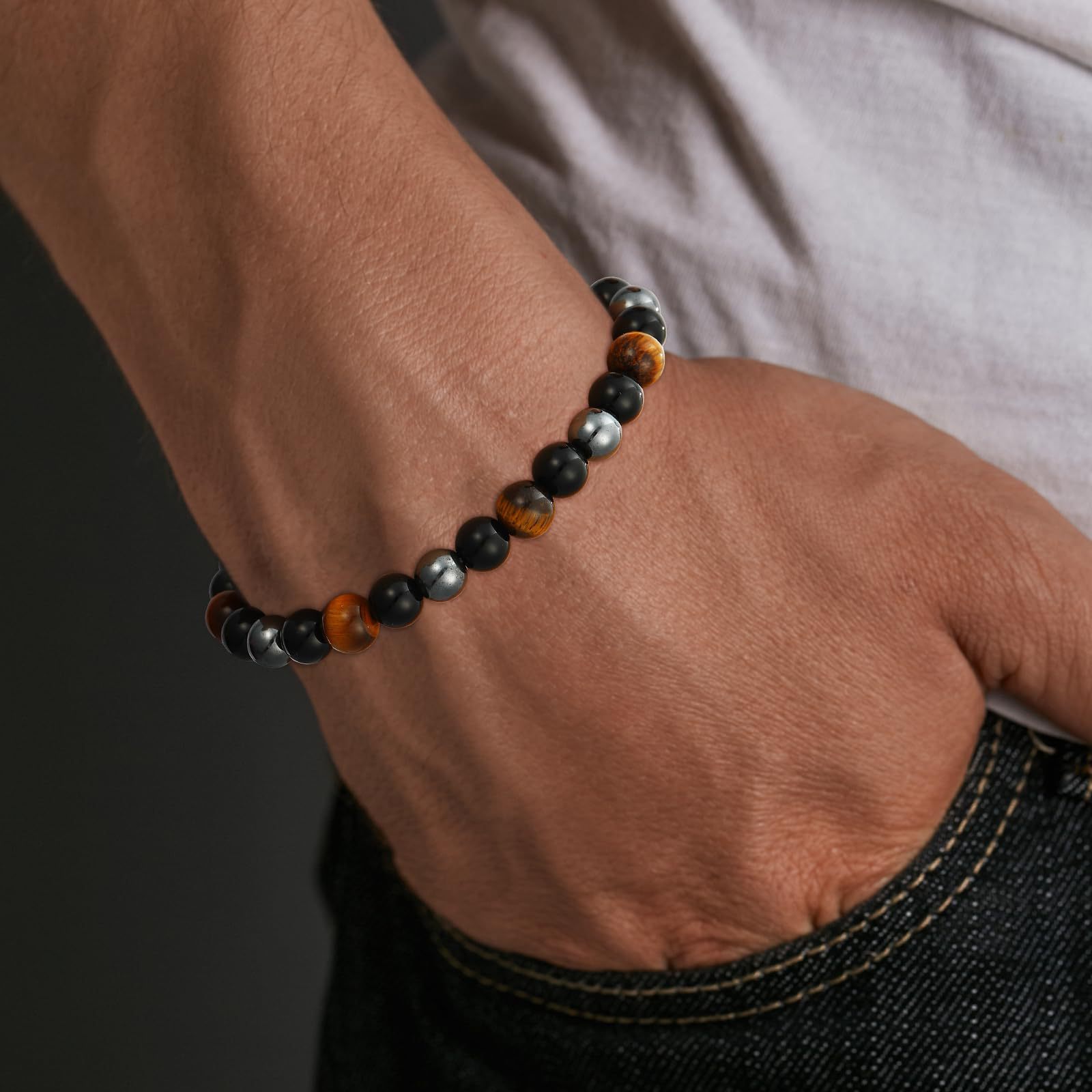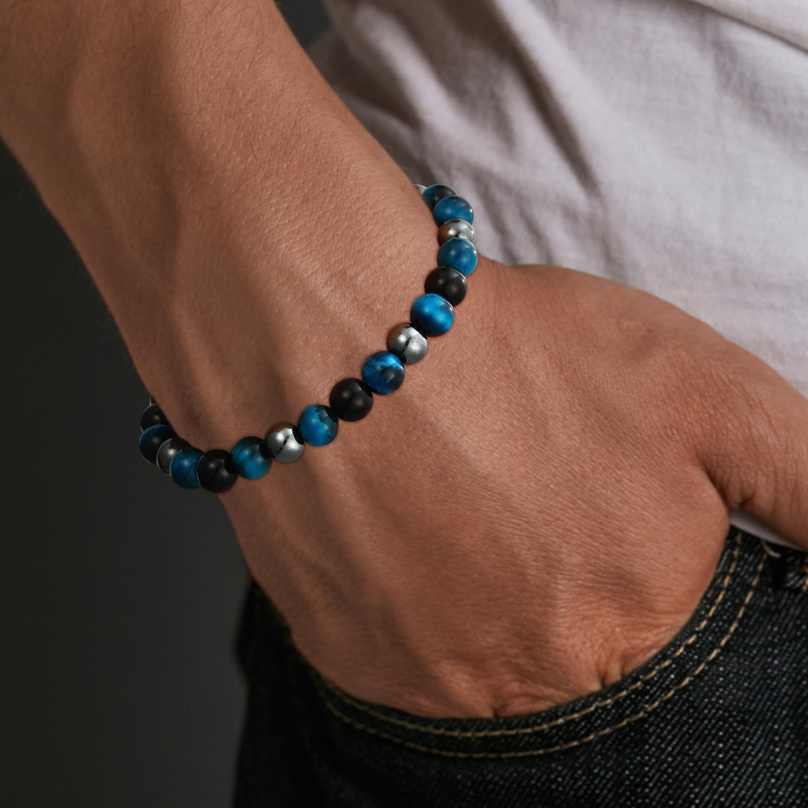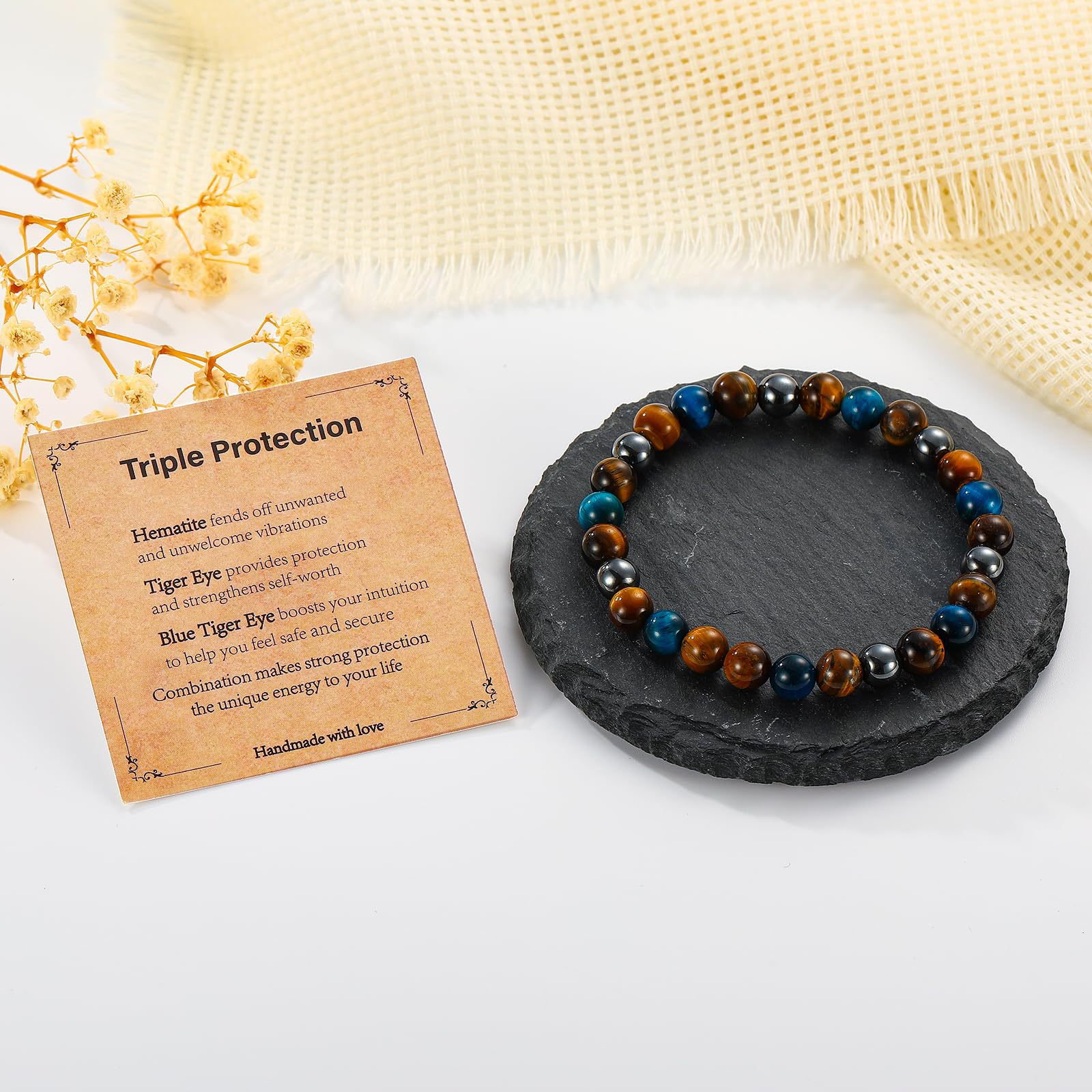 8mm虎眼石手链生日礼物串珠弹力绳黑曜石磁石蓝虎眼三重保护手链
