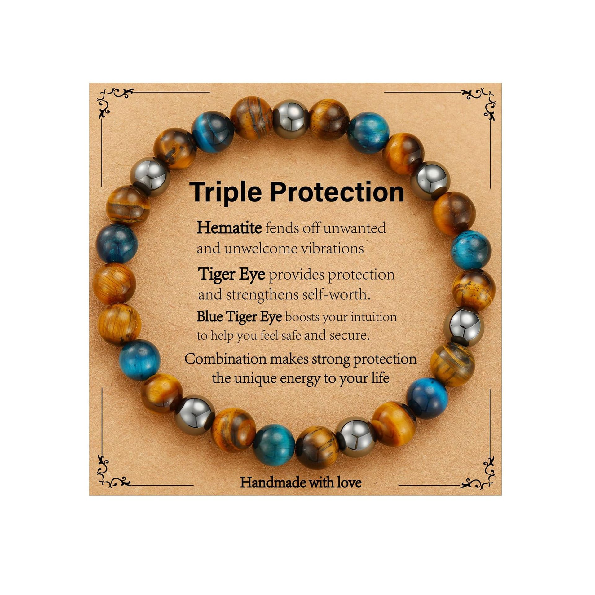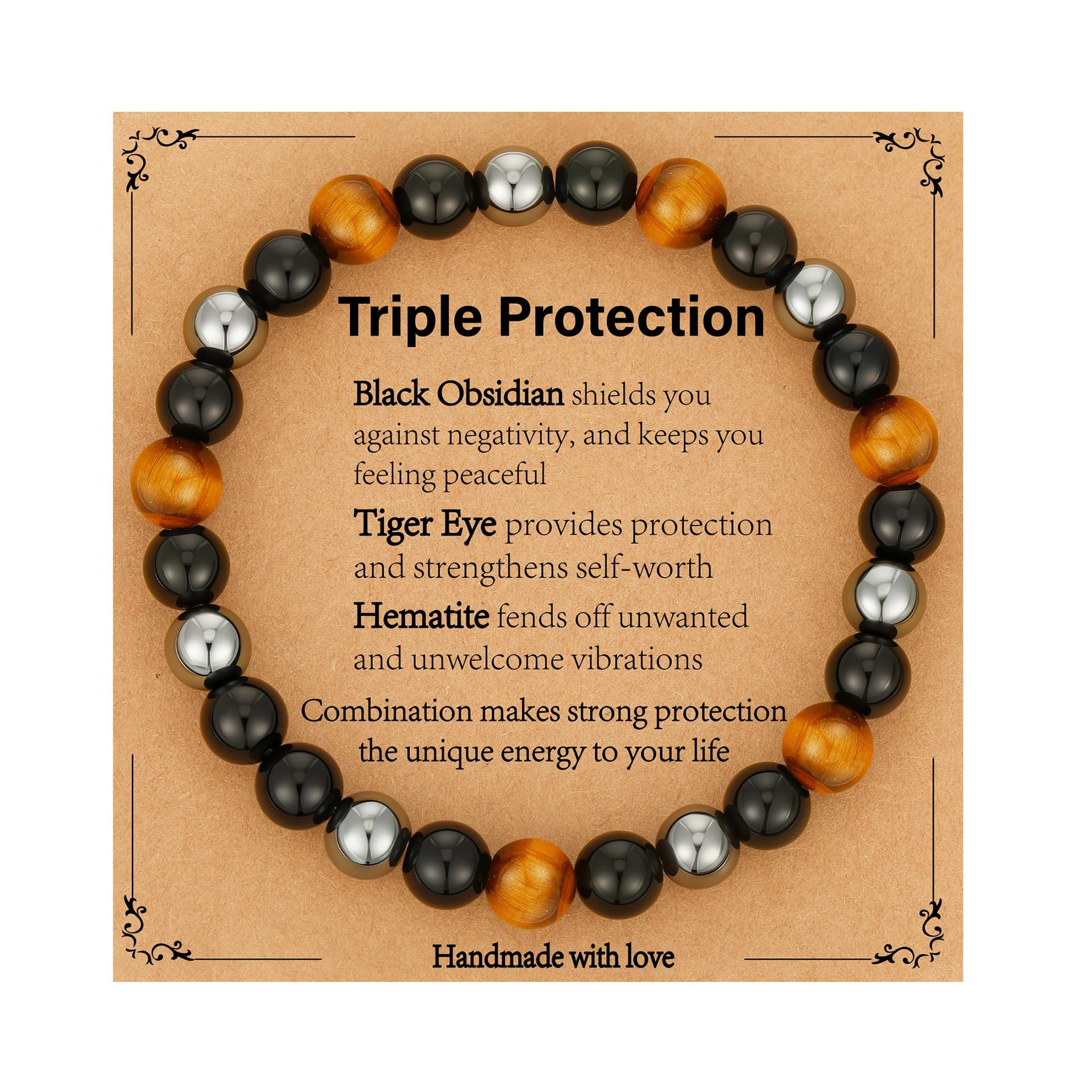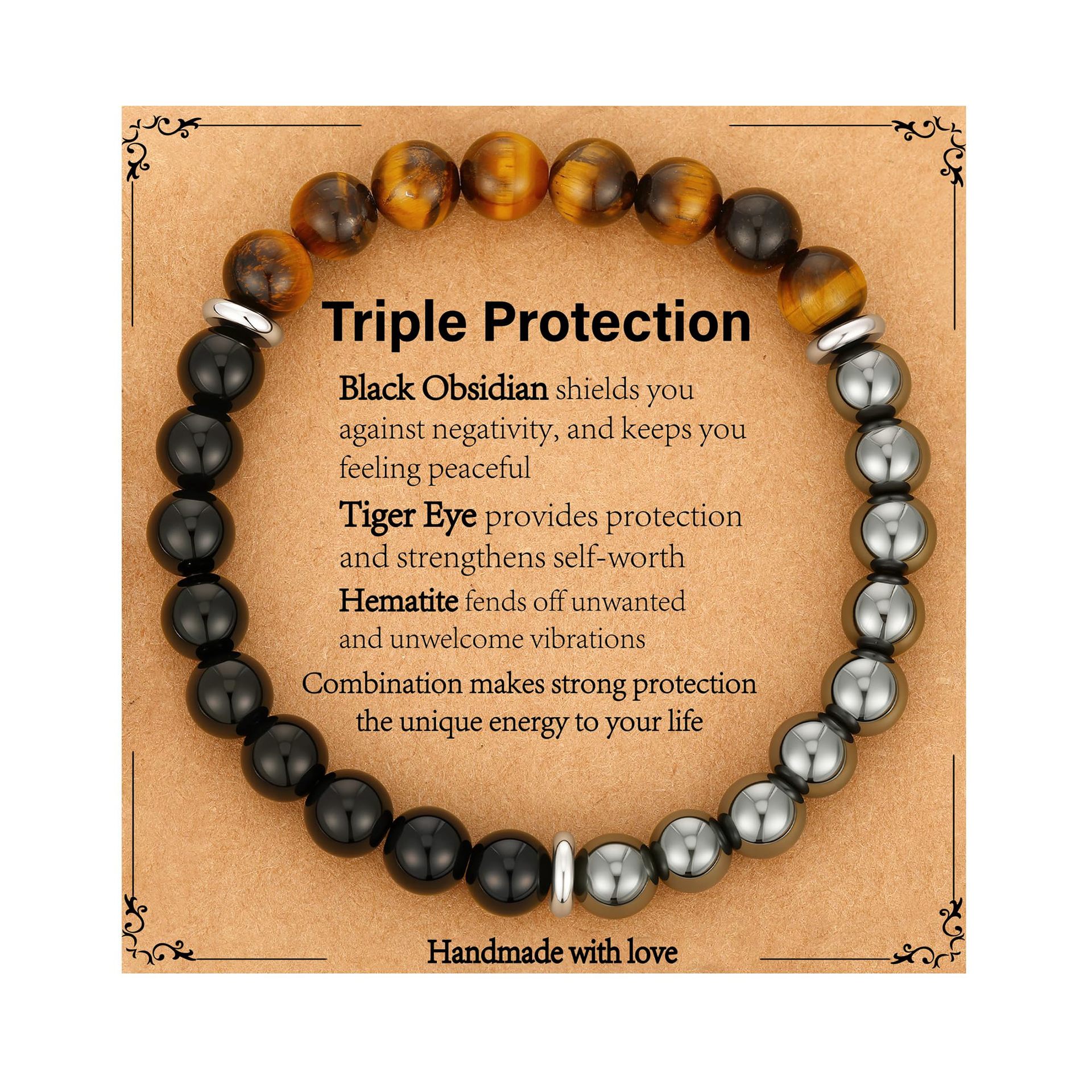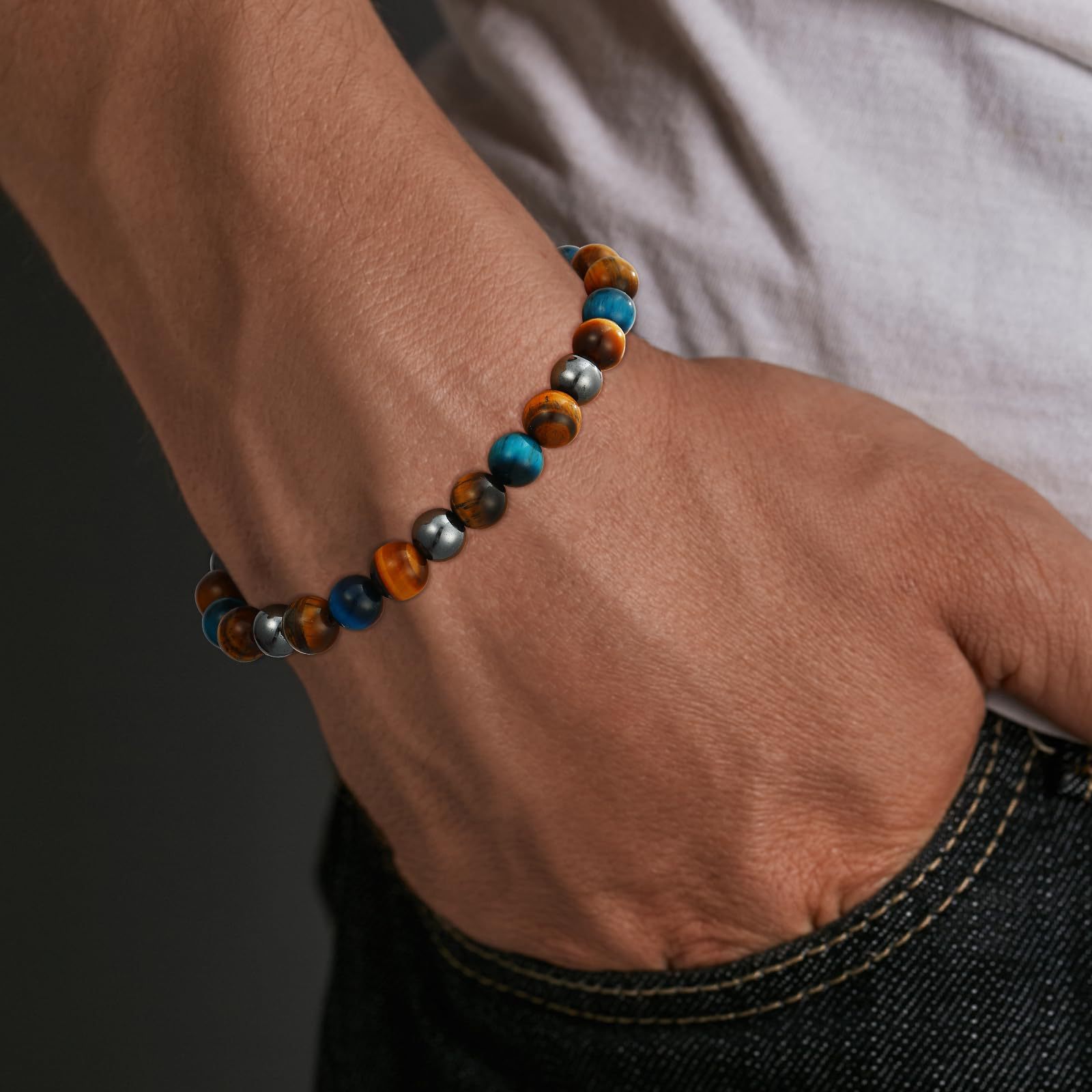 8mm虎眼石手链生日礼物串珠弹力绳黑曜石磁石蓝虎眼三重保护手链
