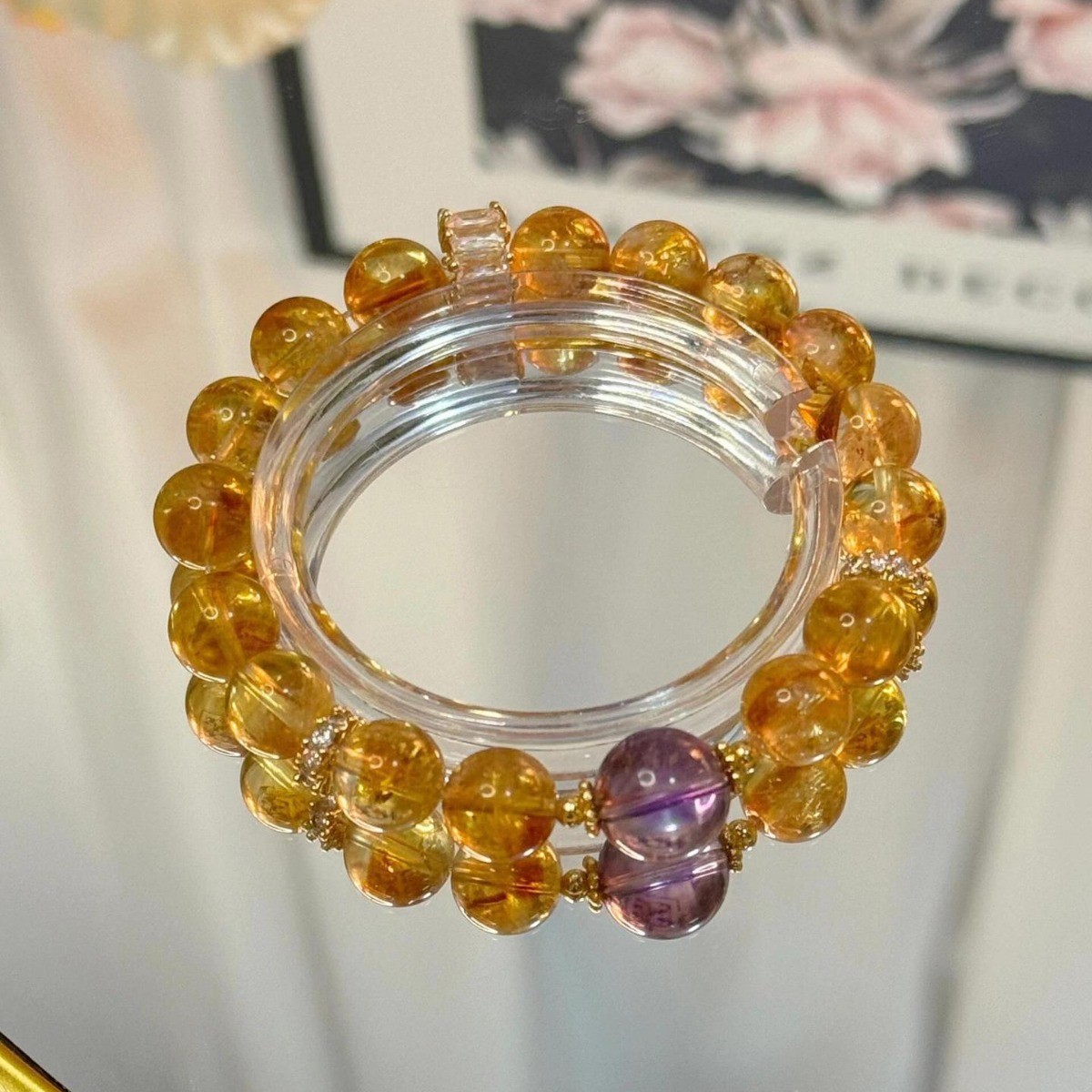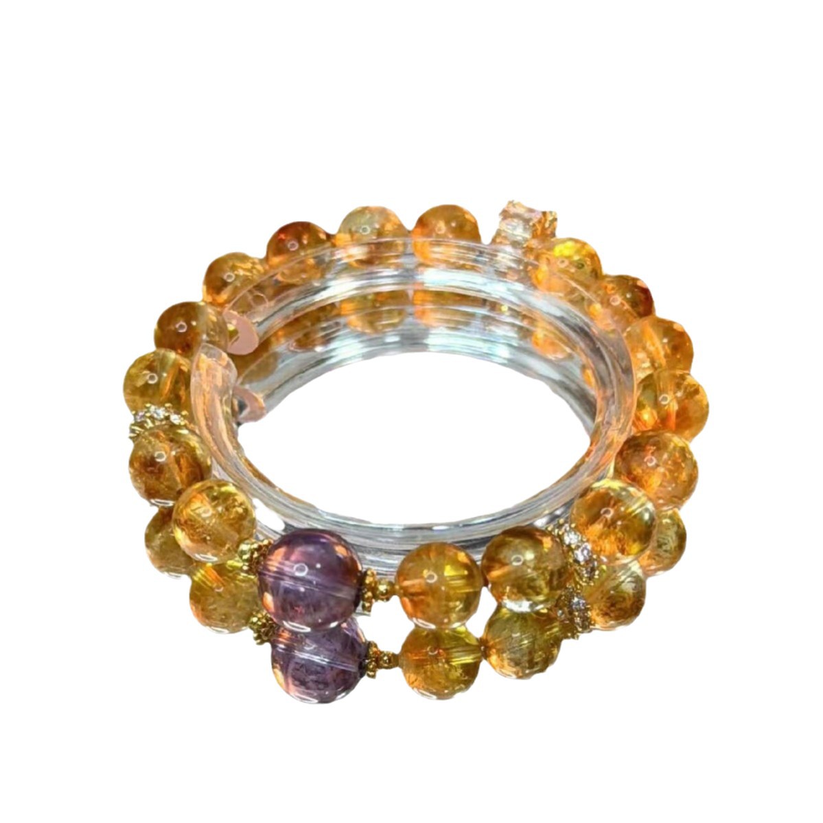 天然10mm黄水晶黄塔晶珠子搭配紫水晶配珠女款闺蜜生日礼物手链