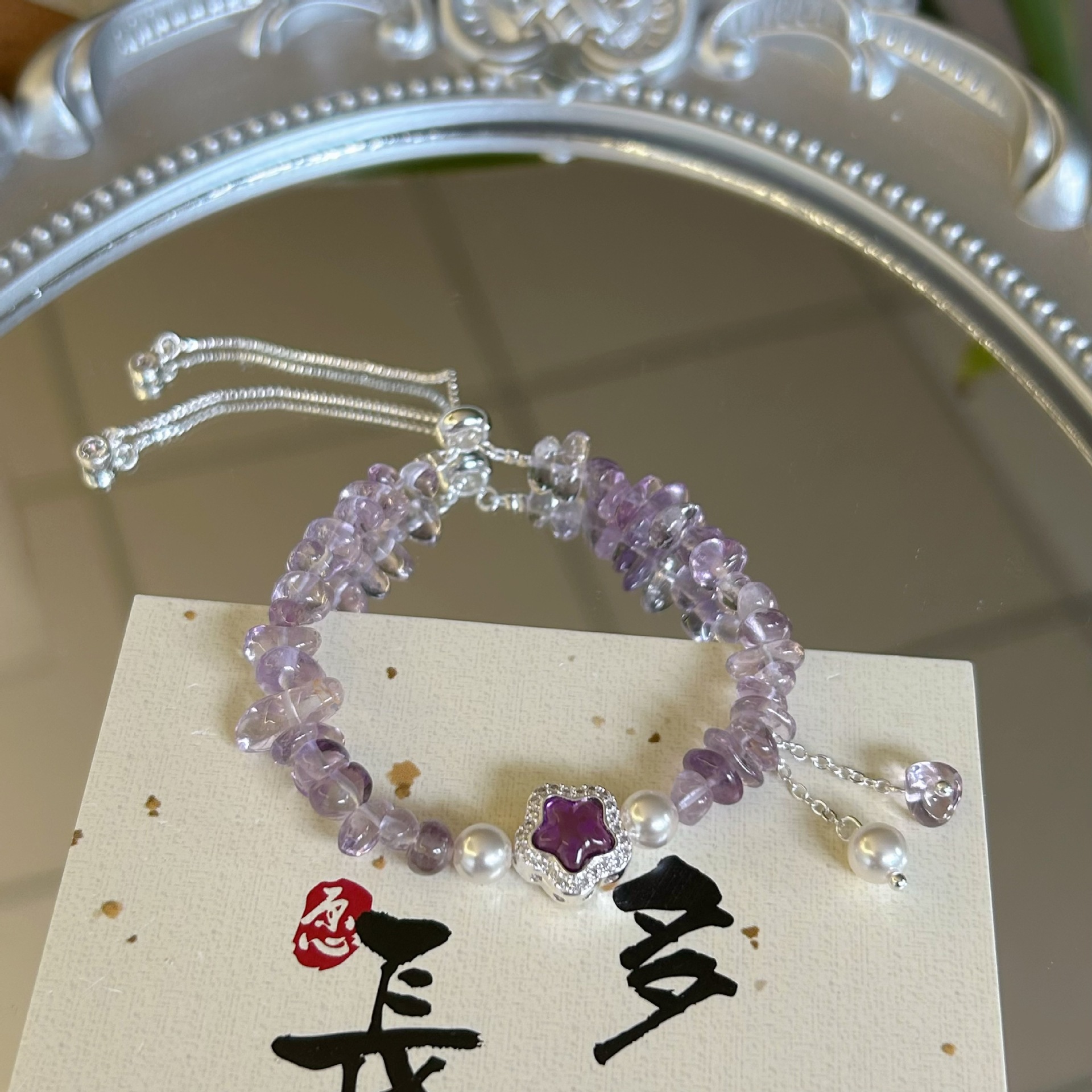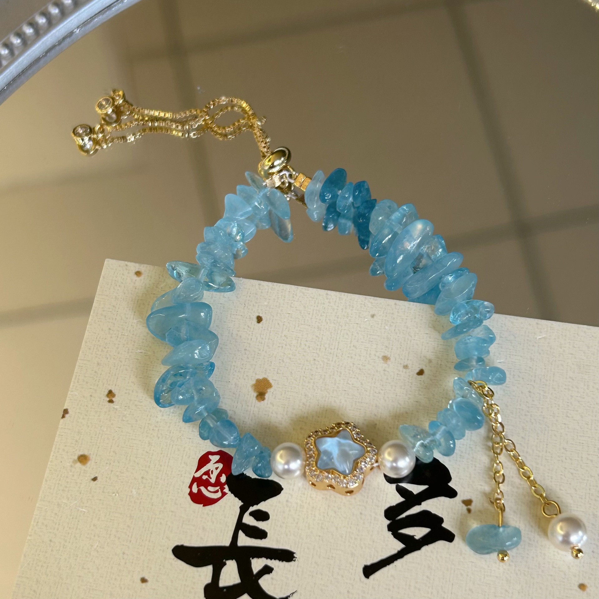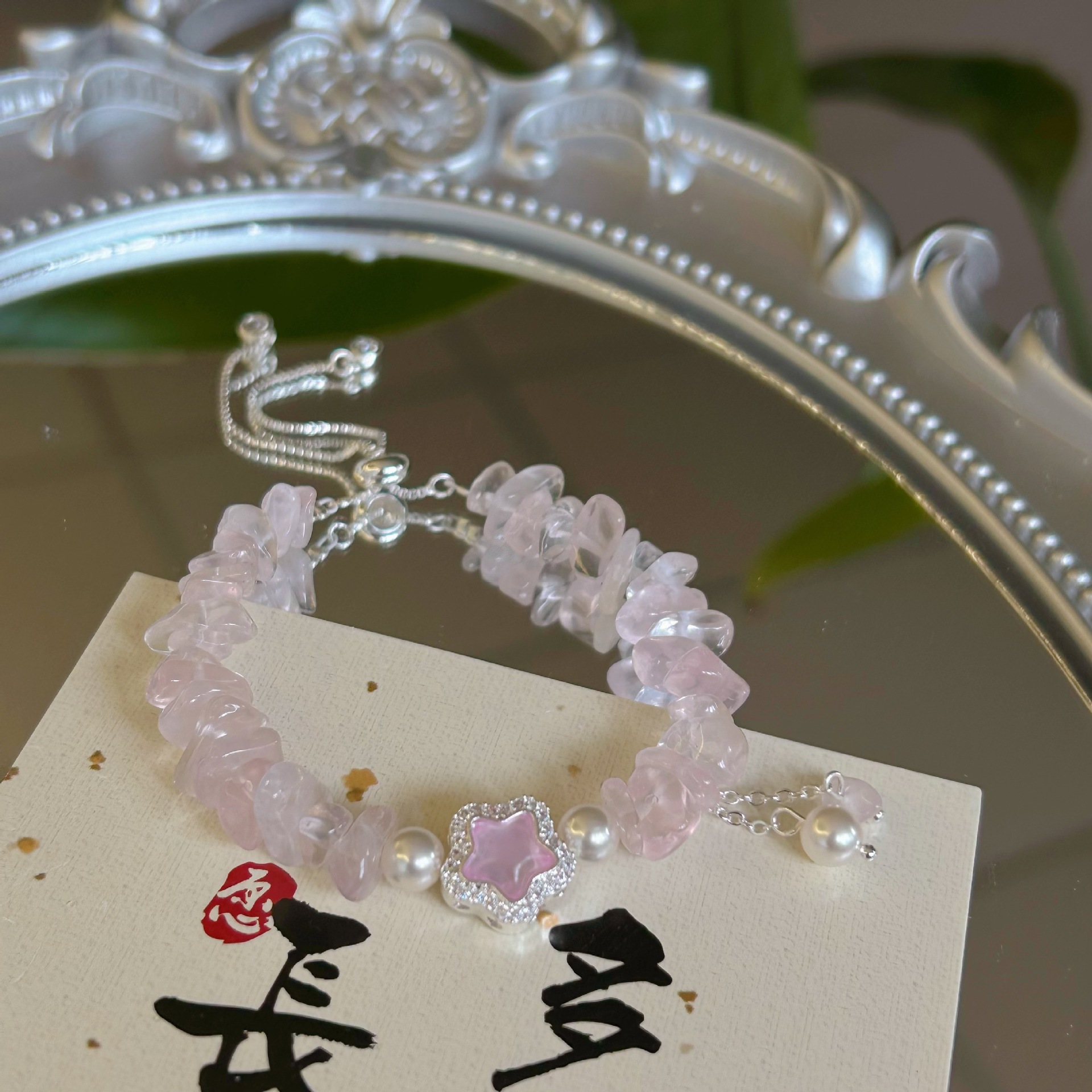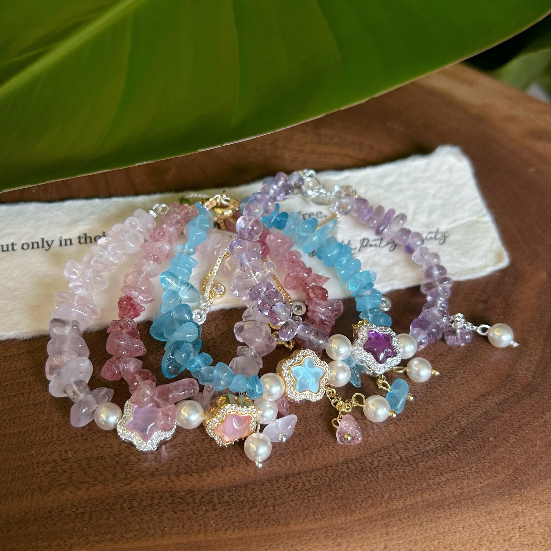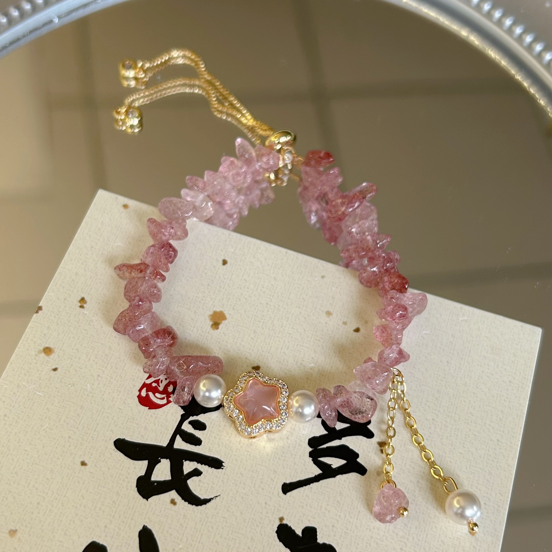 天然水晶碎石款手链小清新甜美天然石草莓晶手链可爱星星款送闺蜜