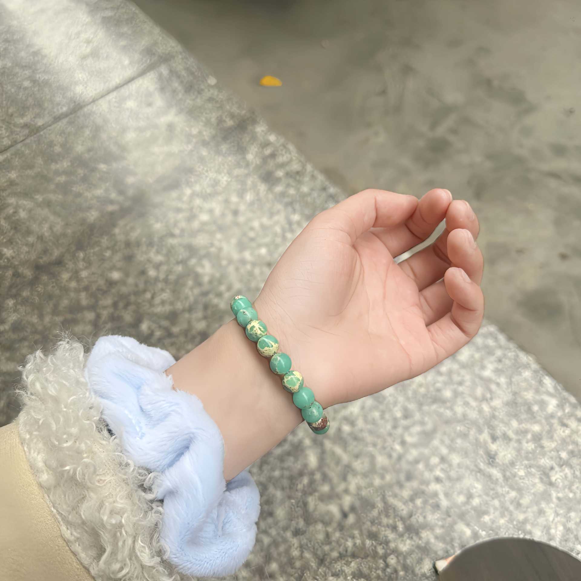 temu希音TK跨境爆款手链果绿色寿山石绿色帝皇松手链男女适宜批发