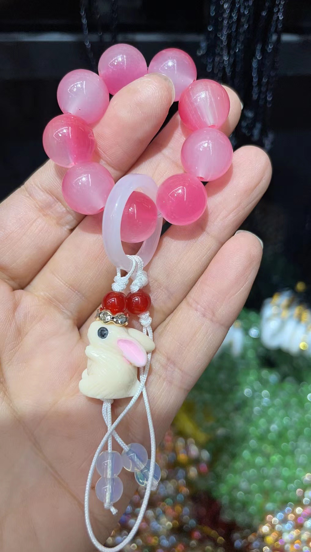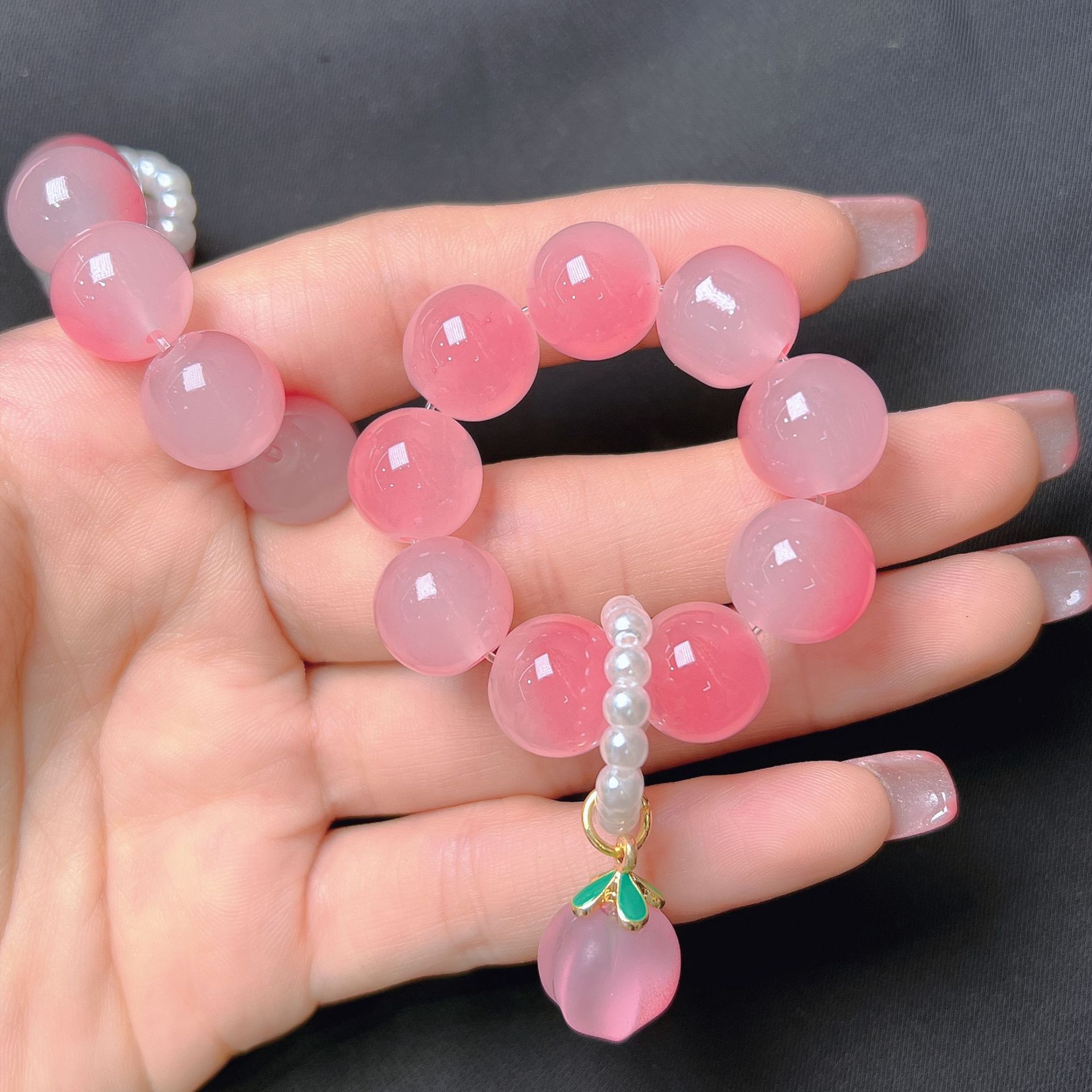 水蜜桃粉晶绕指柔手链学生念珠小红书同款手持手捻闺蜜礼物批发