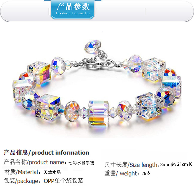 蒂莲尼 亚马逊热销 8MM奥地利方糖水晶手链女 七彩水晶手链 批发