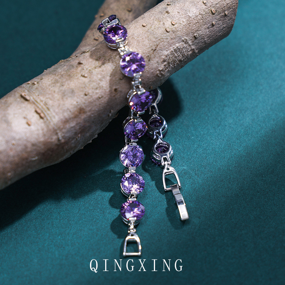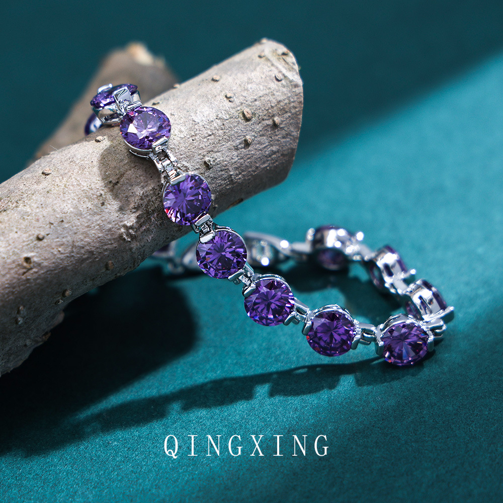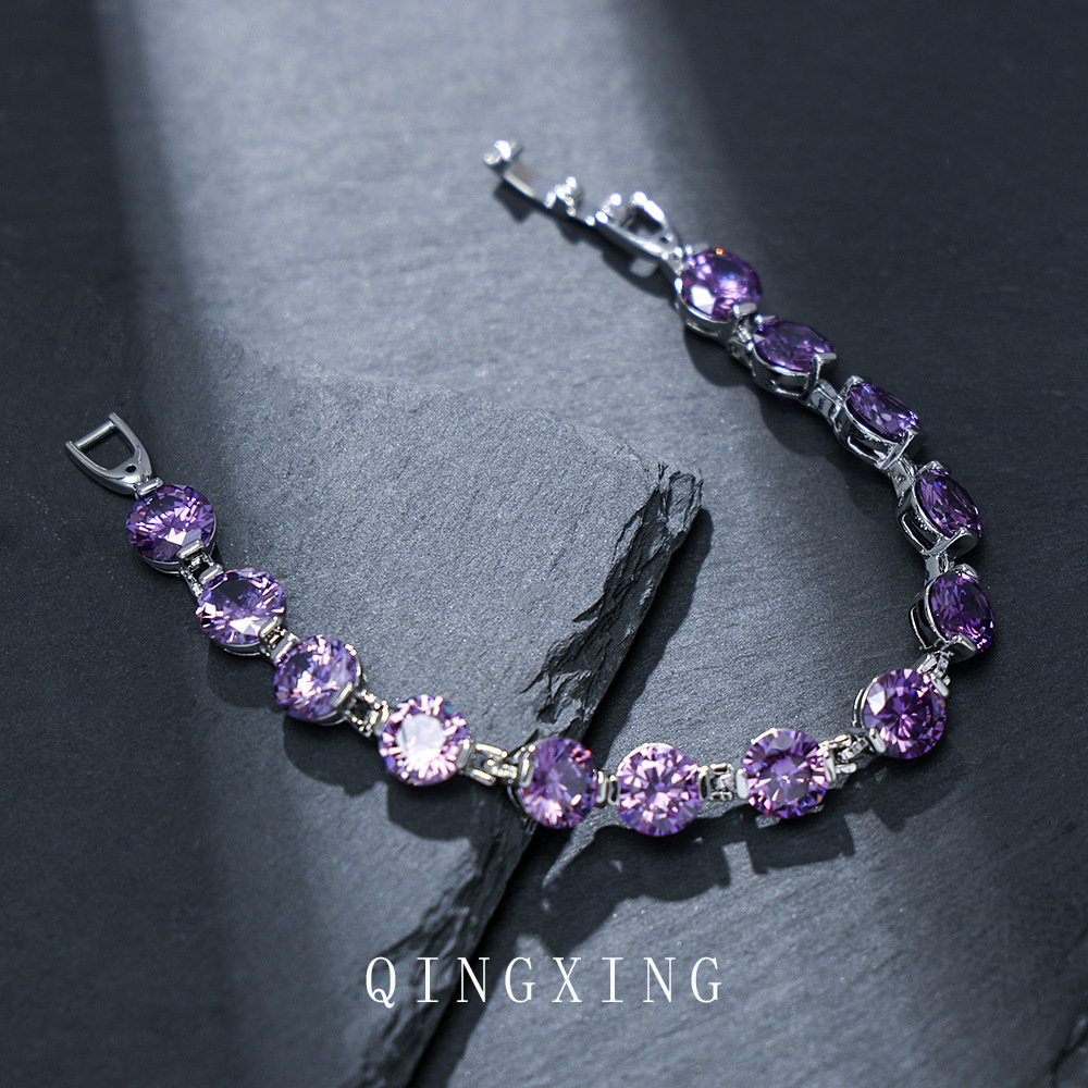 新款欧美时尚高级感圆形紫色锆石手链抖音直播爆款热卖潮流饰品女