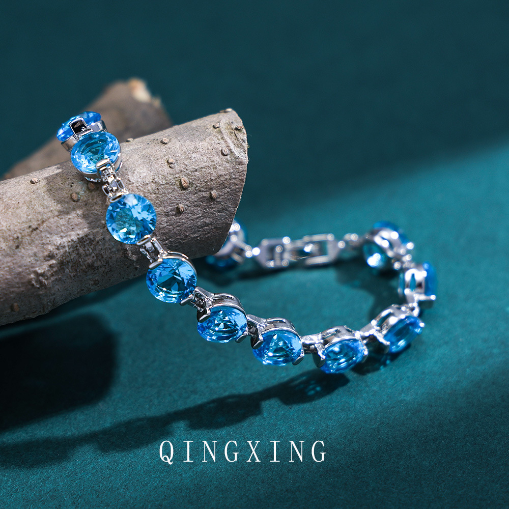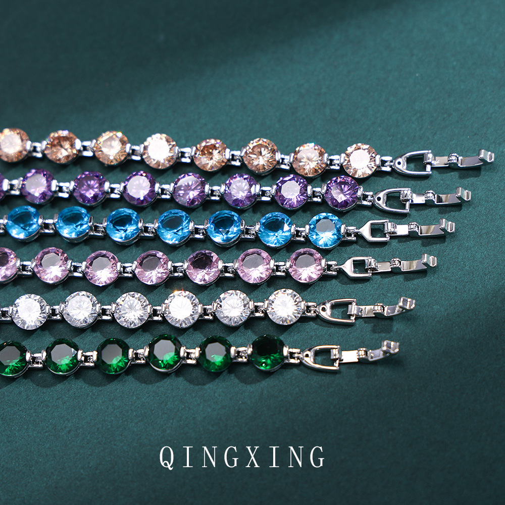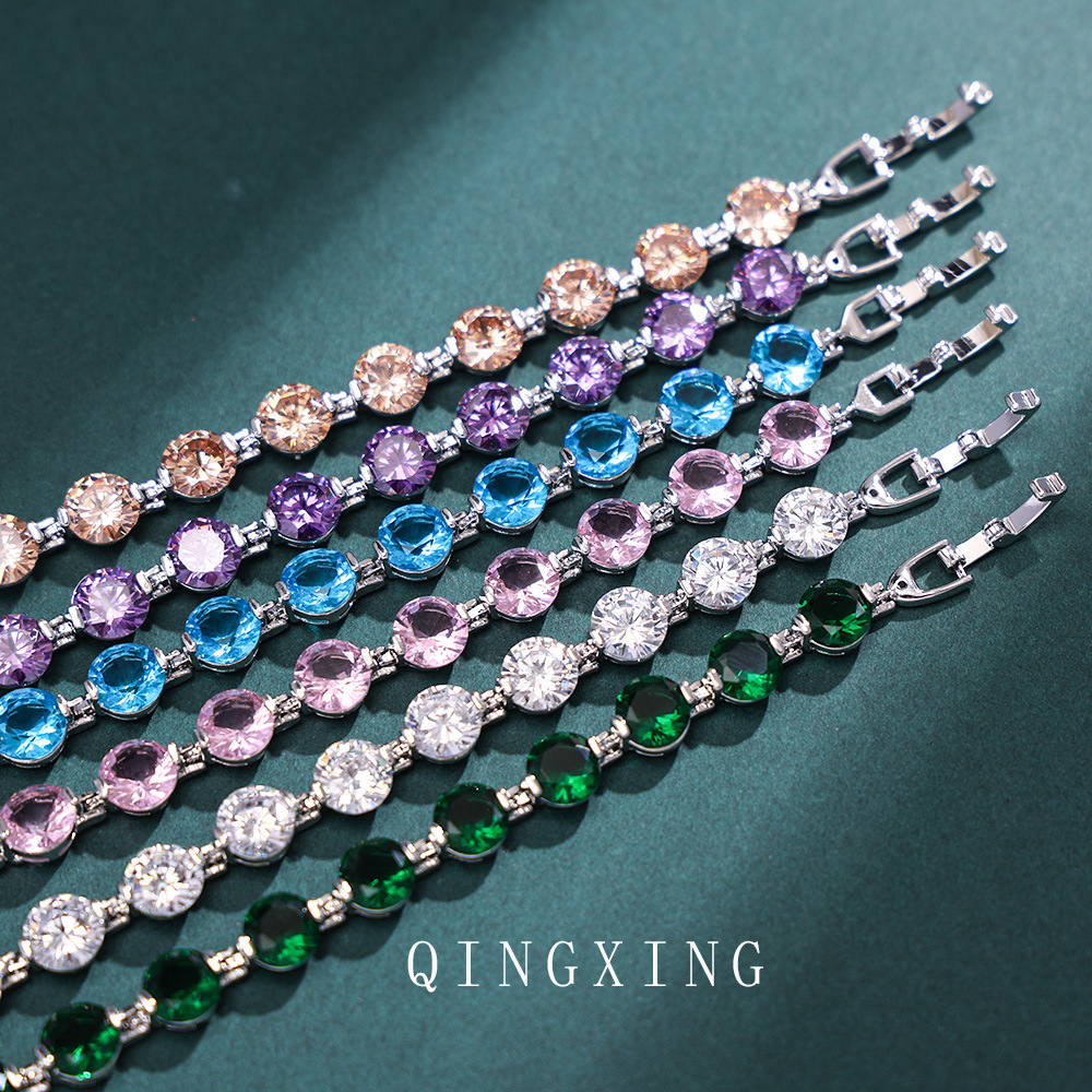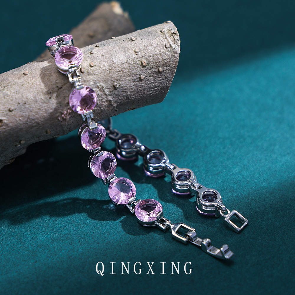 新款欧美时尚高级感圆形紫色锆石手链抖音直播爆款热卖潮流饰品女