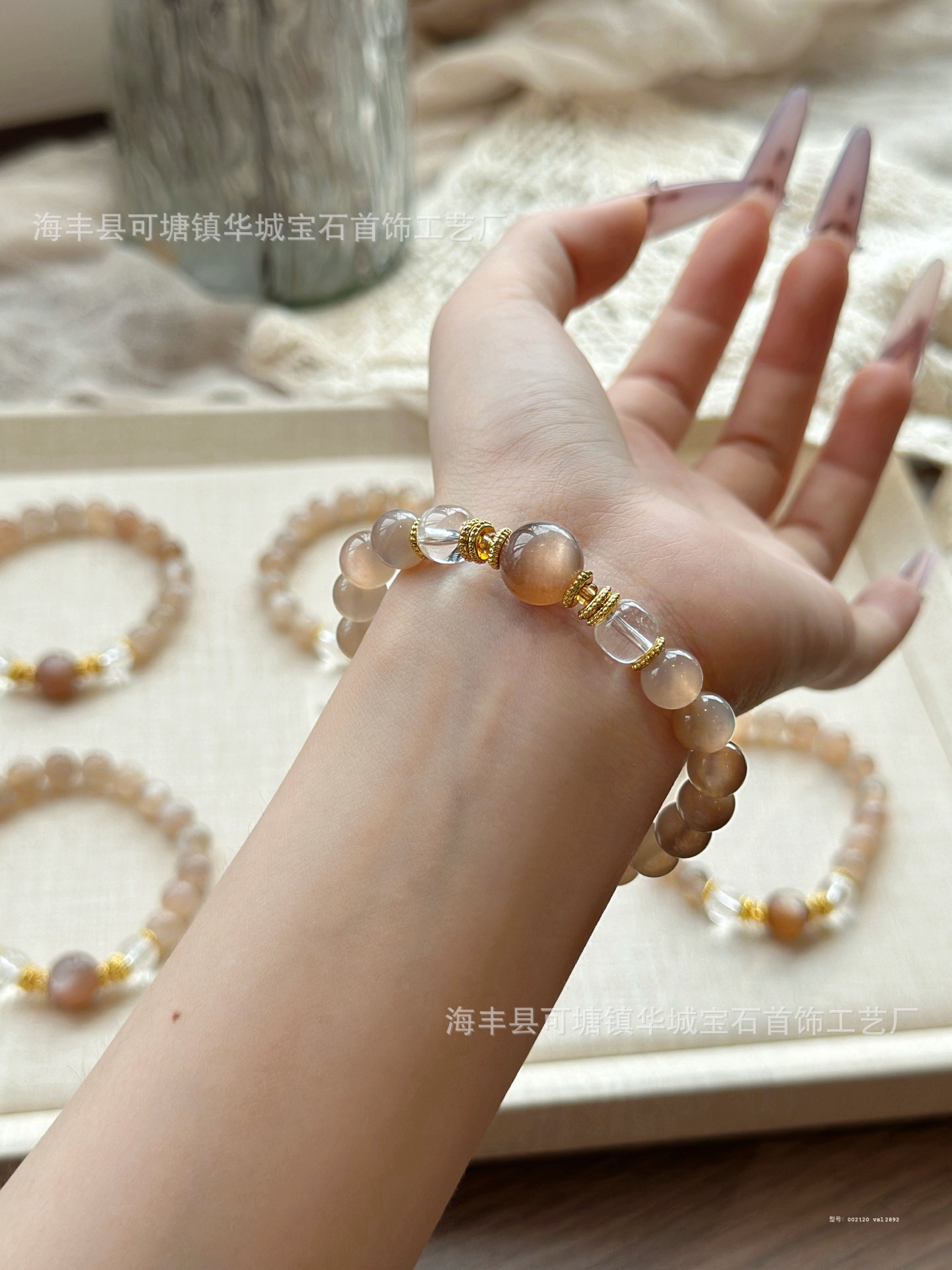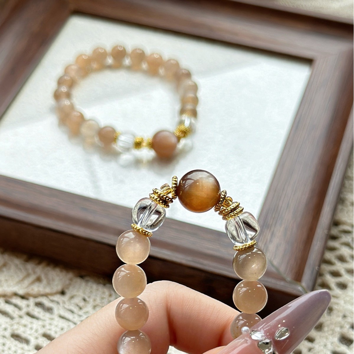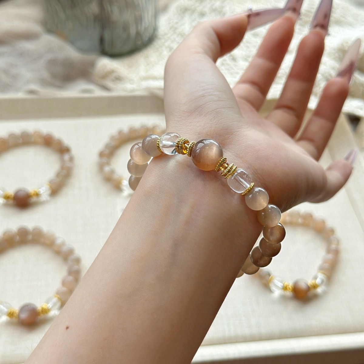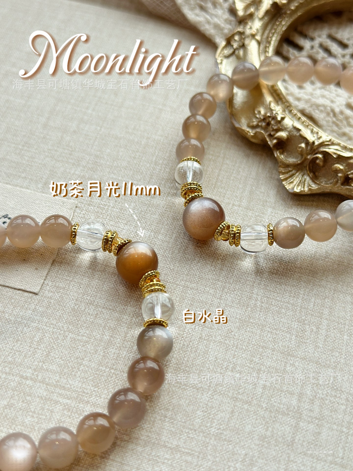 巧恩珠宝天然奶茶月光石搭配白水晶单圈手链diy珠宝礼物