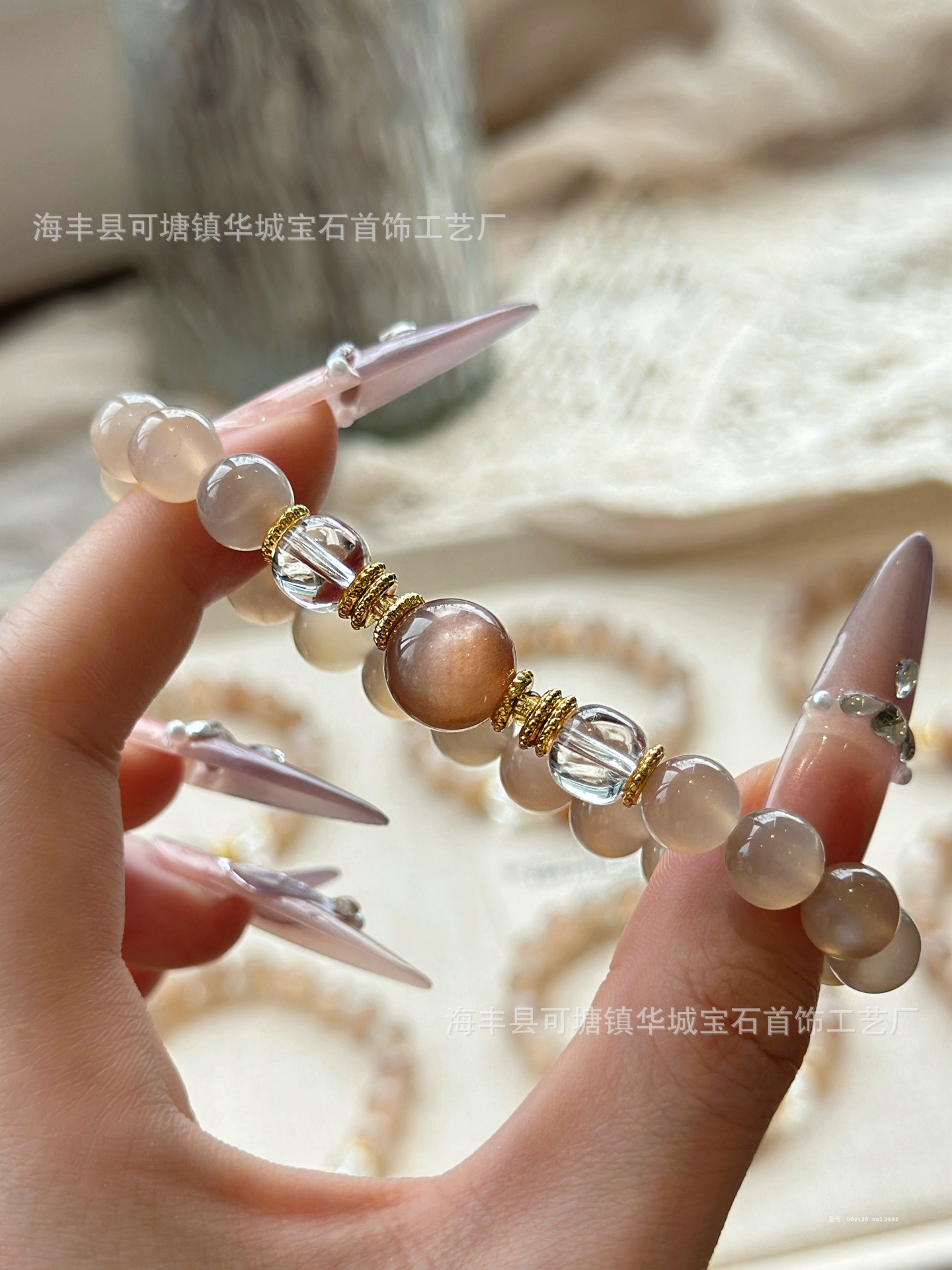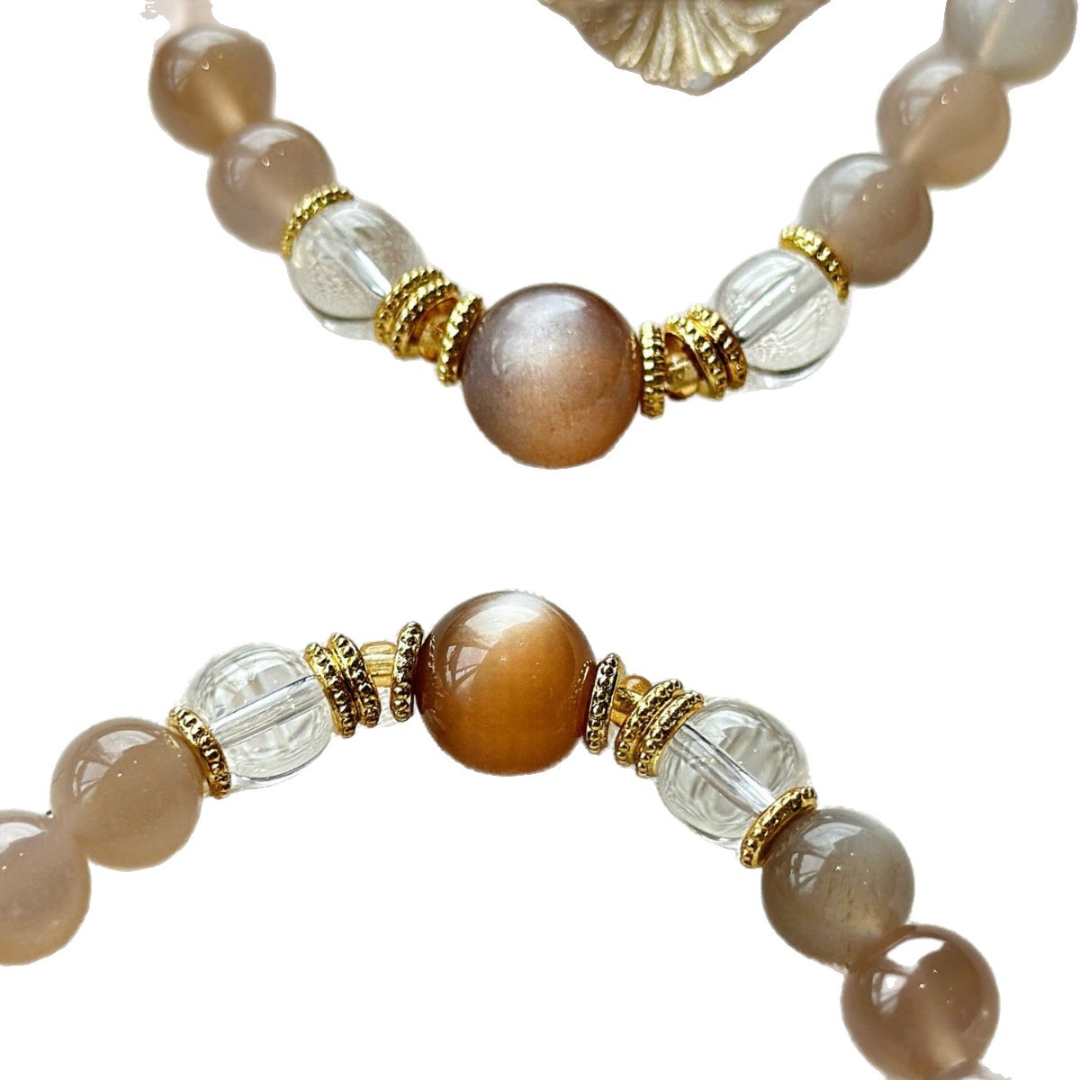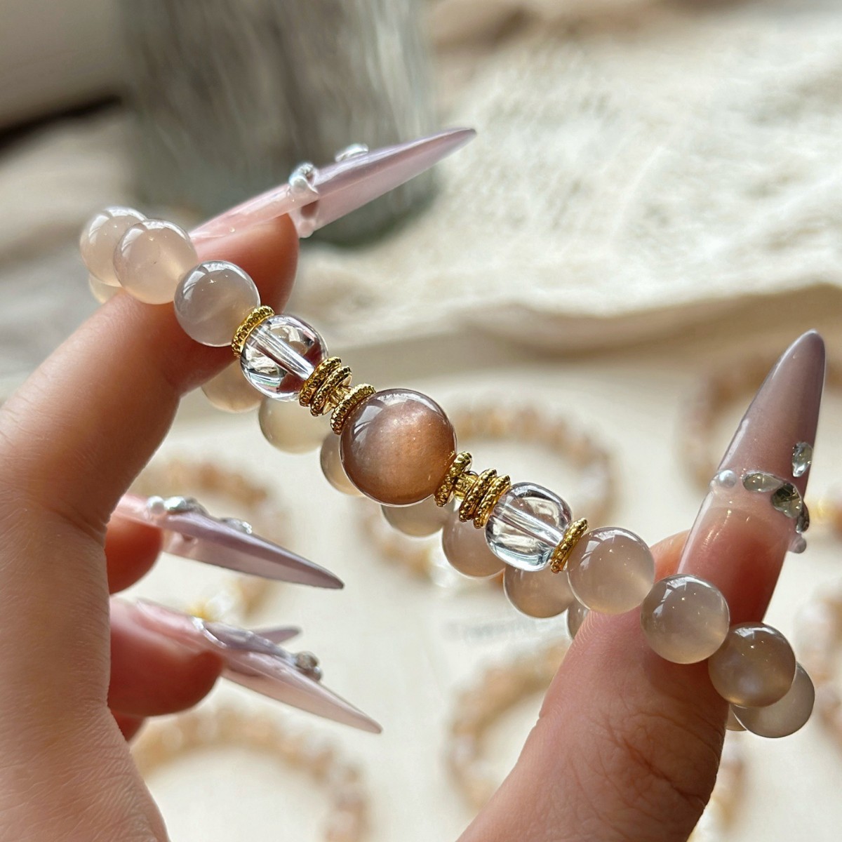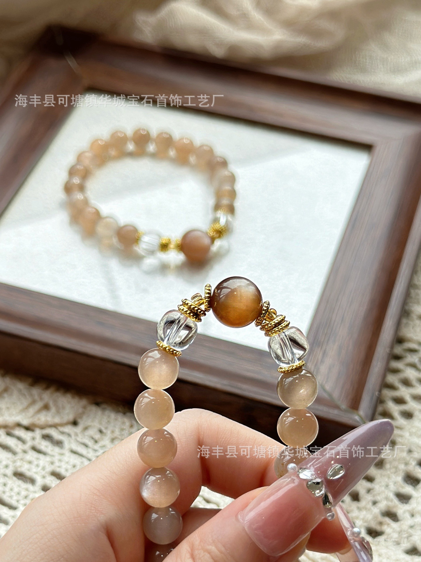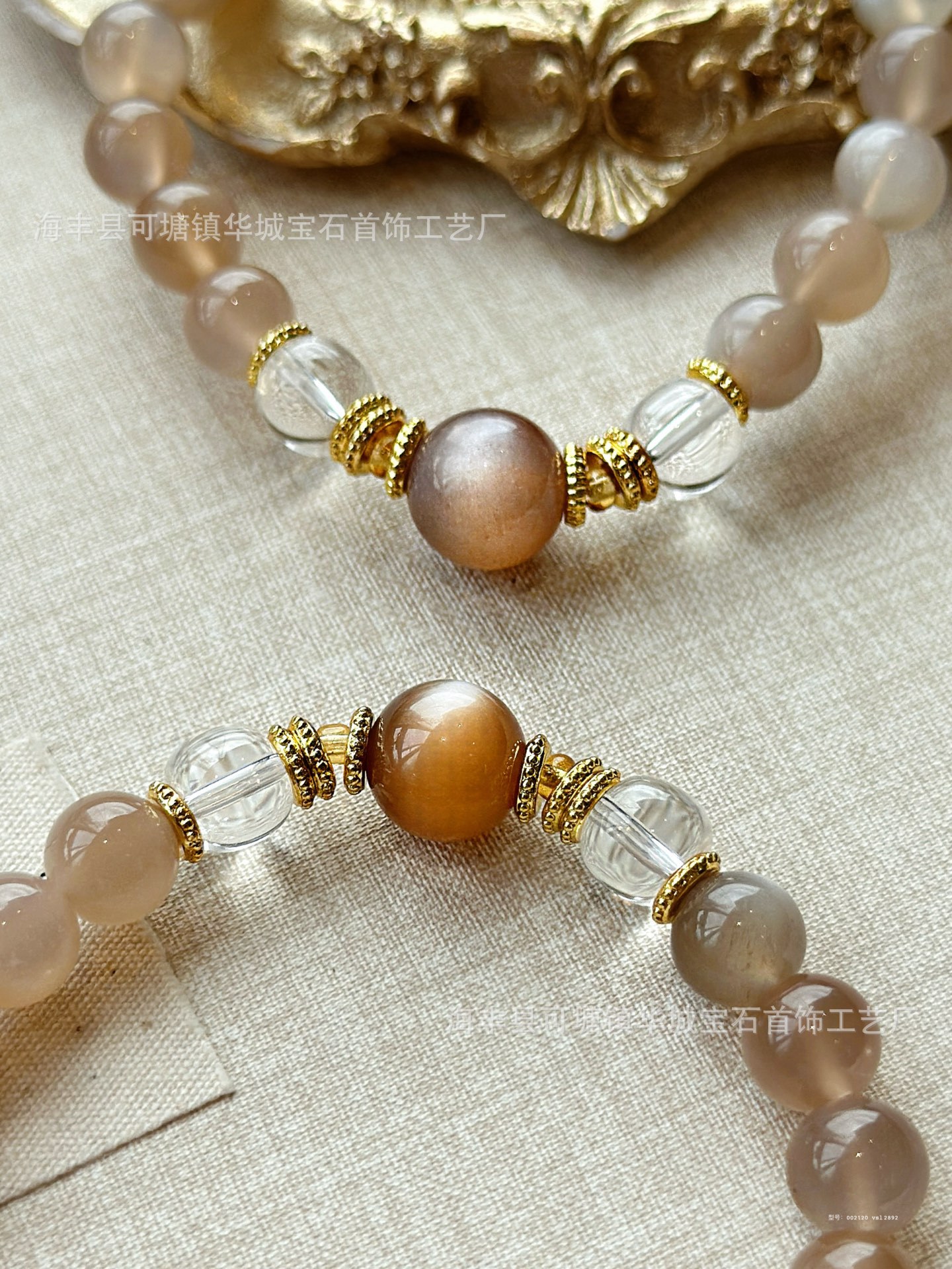巧恩珠宝天然奶茶月光石搭配白水晶单圈手链diy珠宝礼物