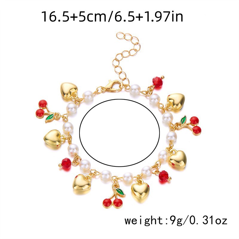 跨境新款法式轻奢款樱桃爱心草莓珍珠水晶手链简约时尚百搭款手饰