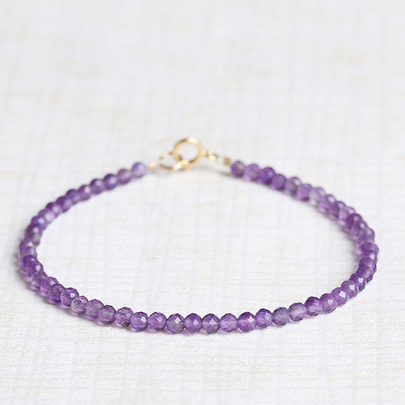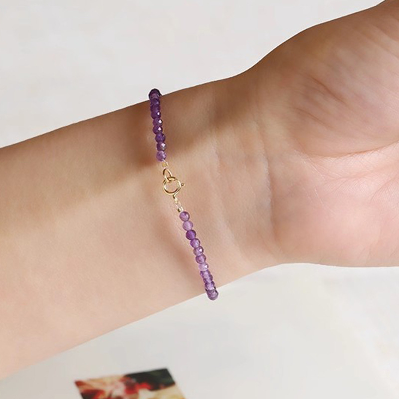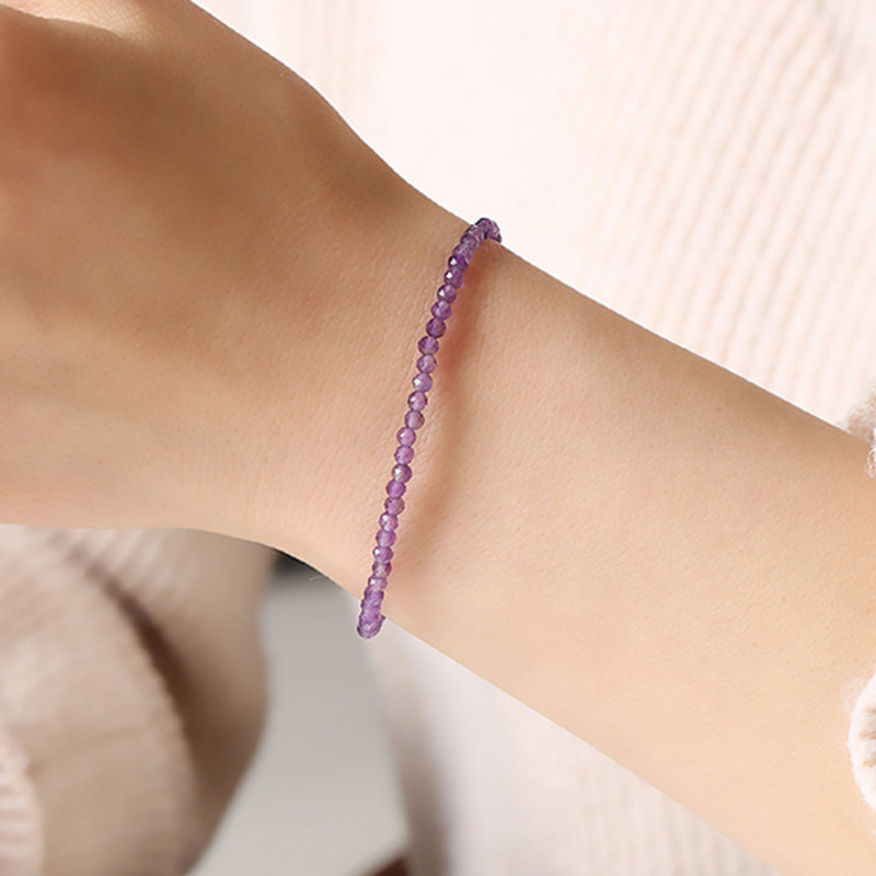 蓉尚天然乌拉圭紫水晶手链女 极细3mm紫气东来手饰 跨境饰品