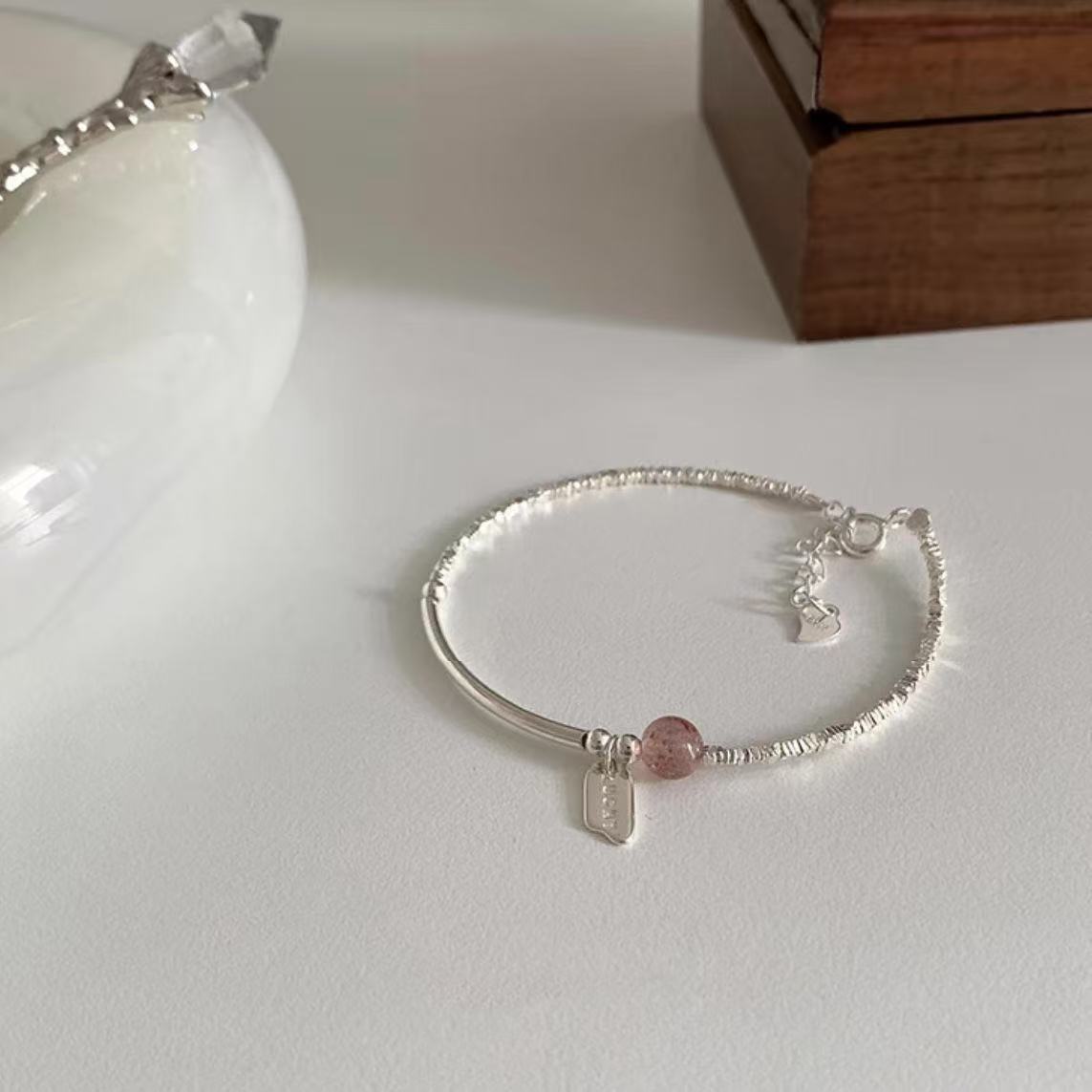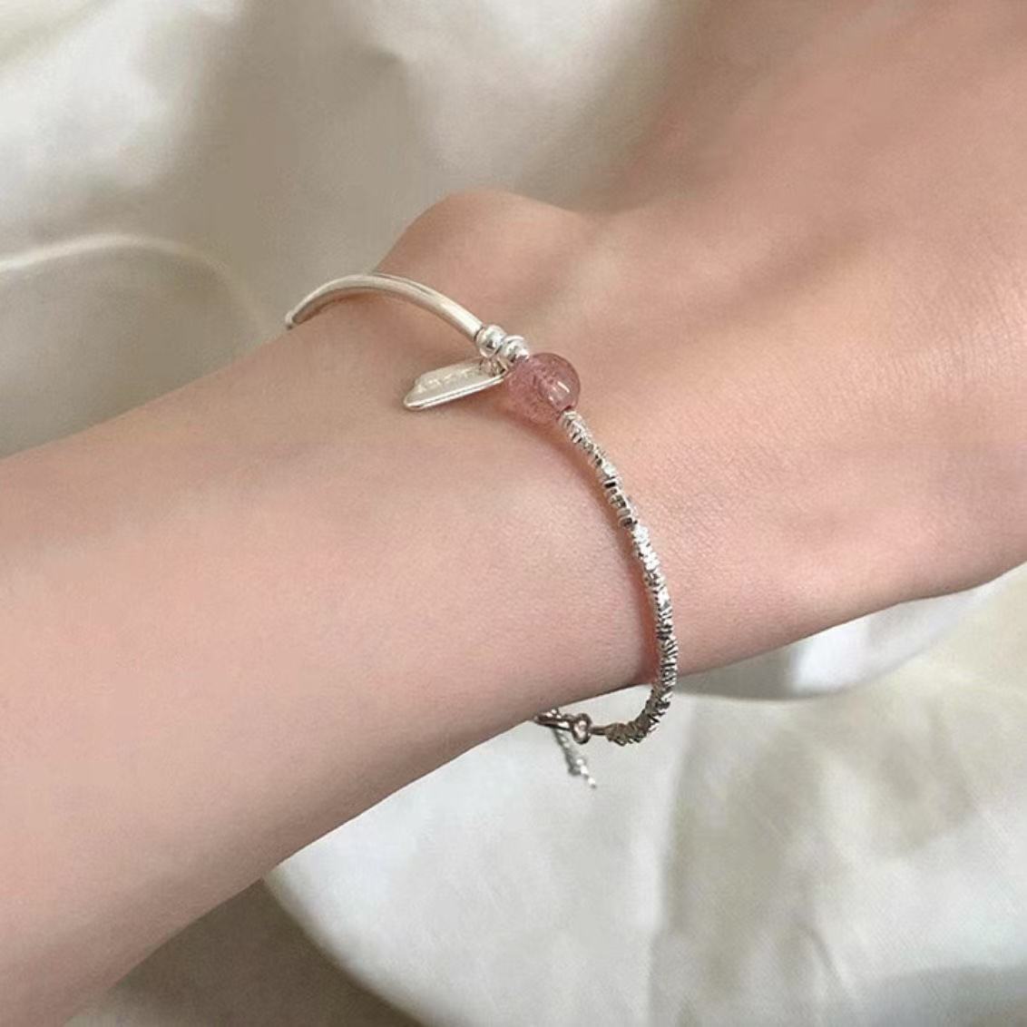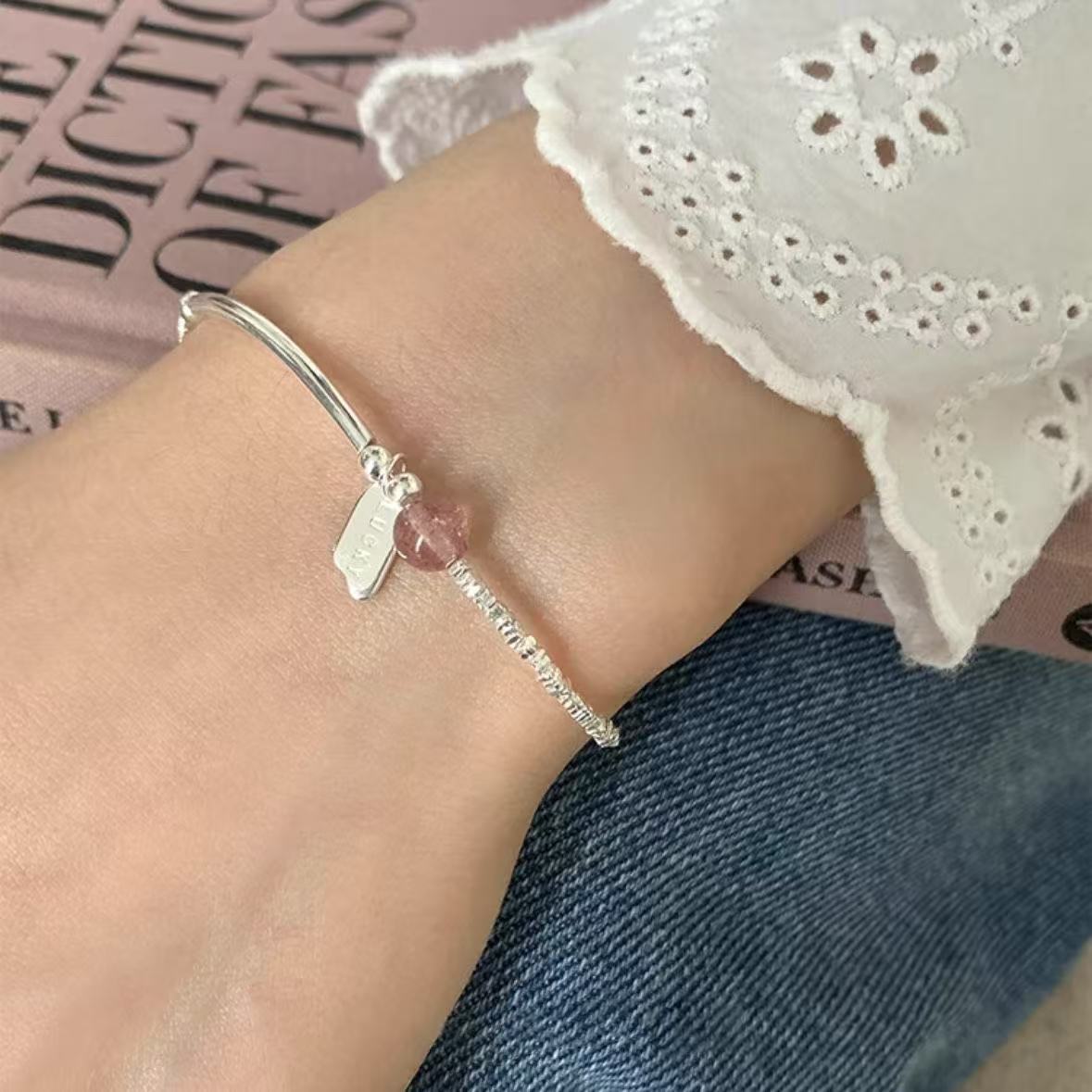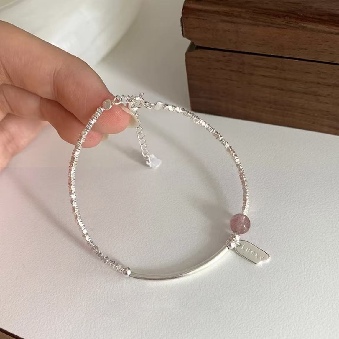 925纯银草莓晶碎银手链女轻奢小众设计高级甜美百搭简约手饰礼