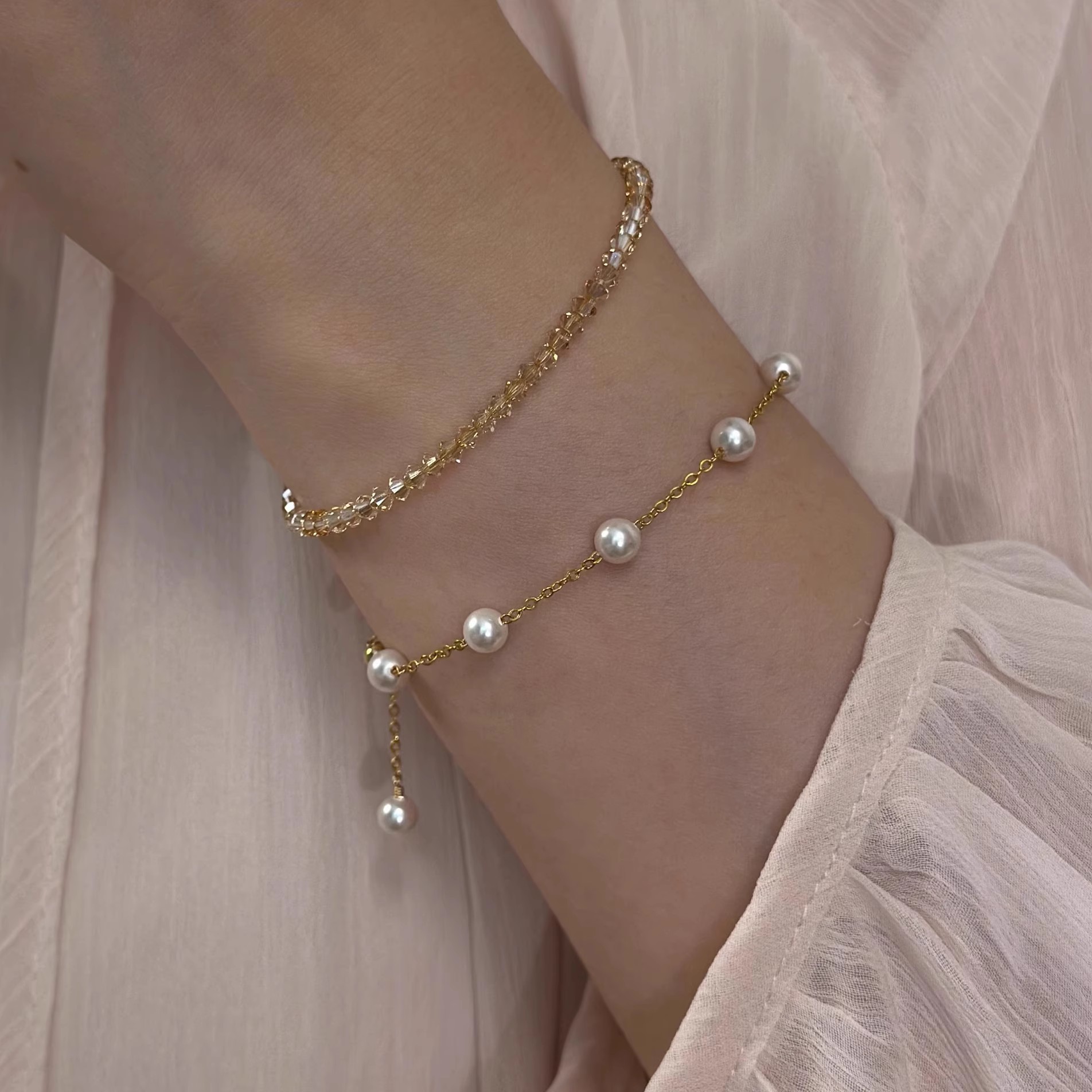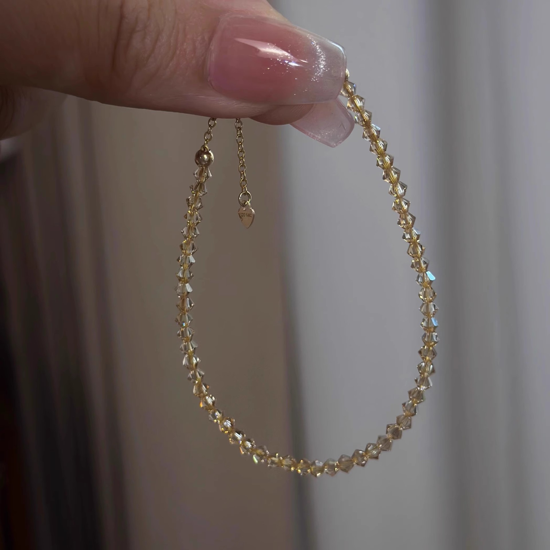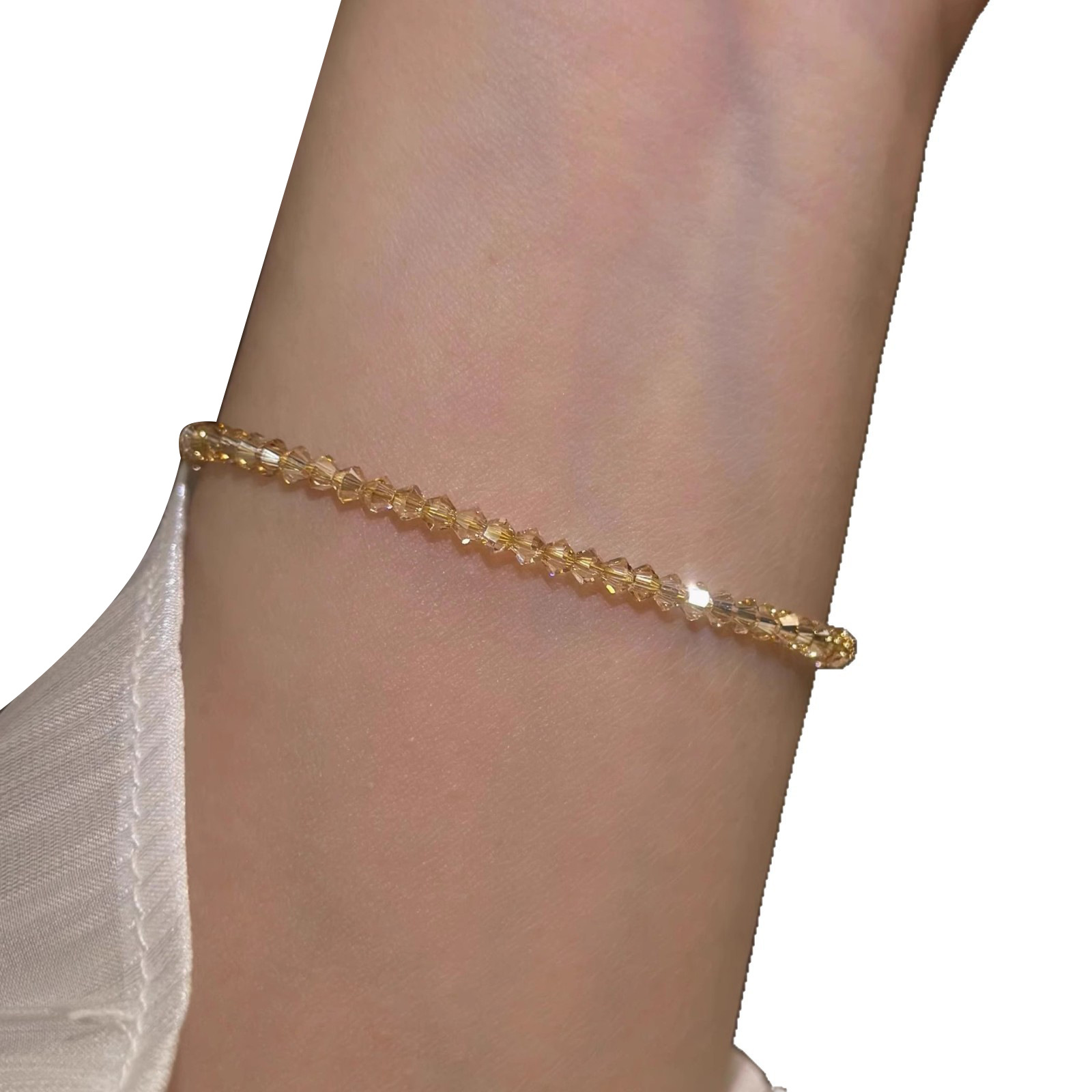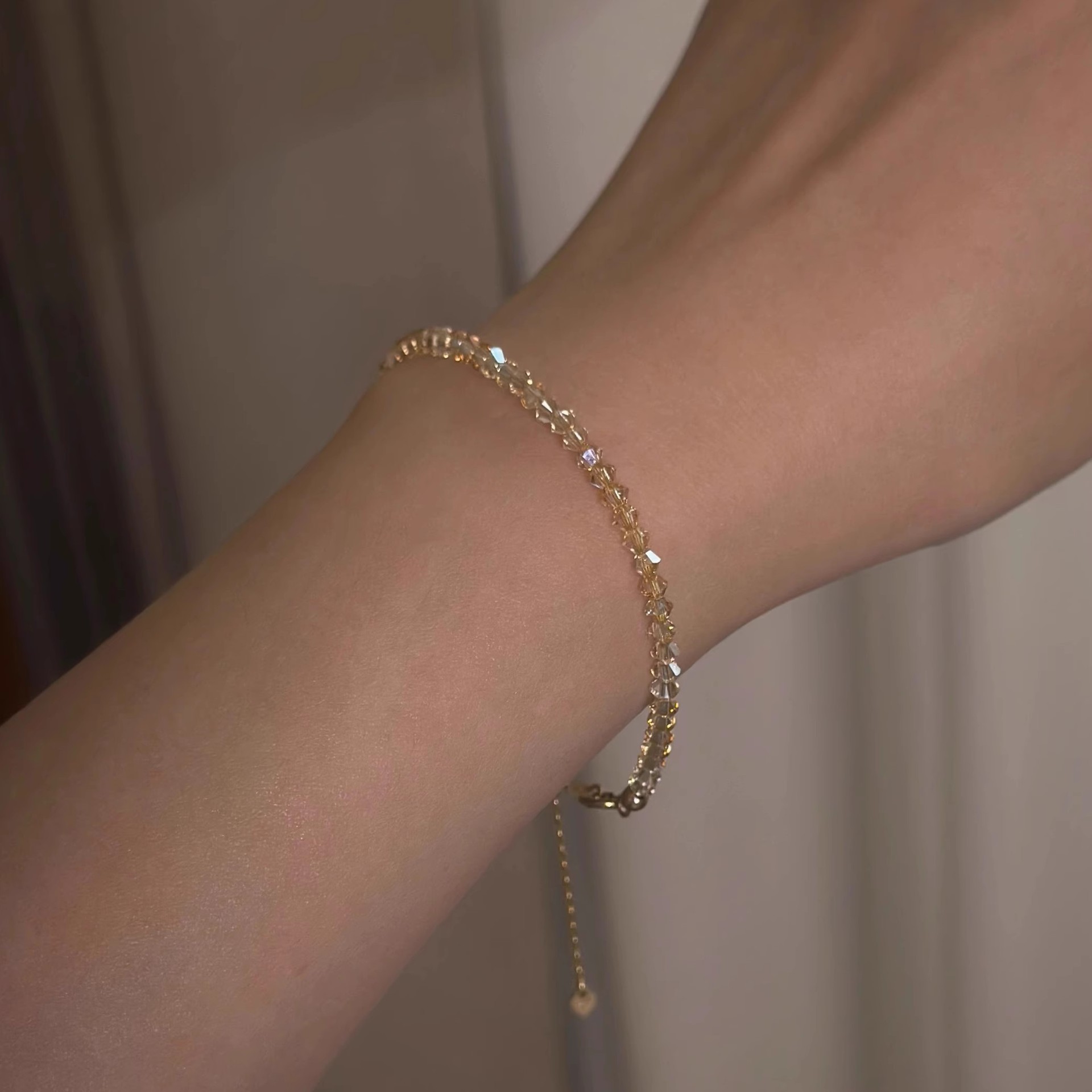 S925纯银奥地利爆闪施家水晶香槟金极细手链女ins轻奢感小众气质