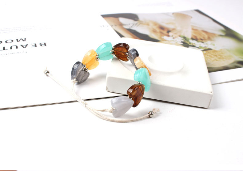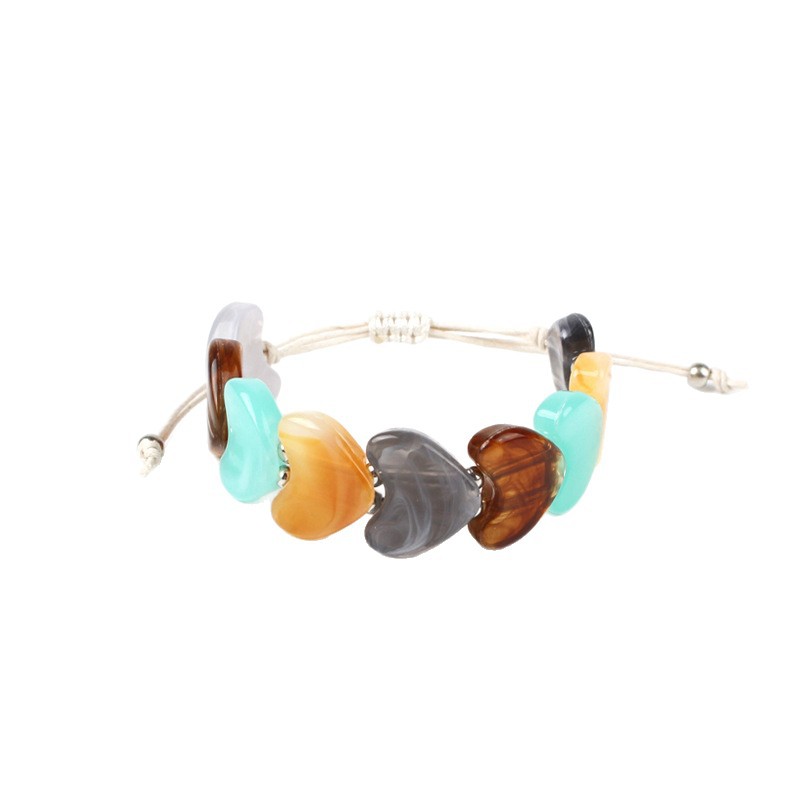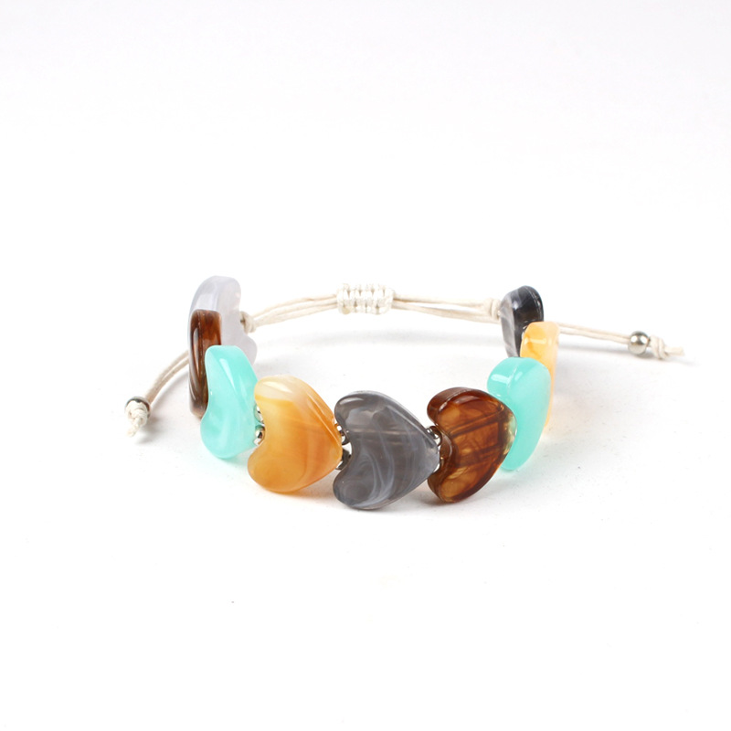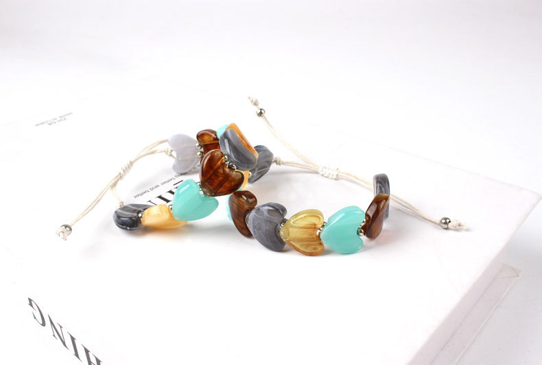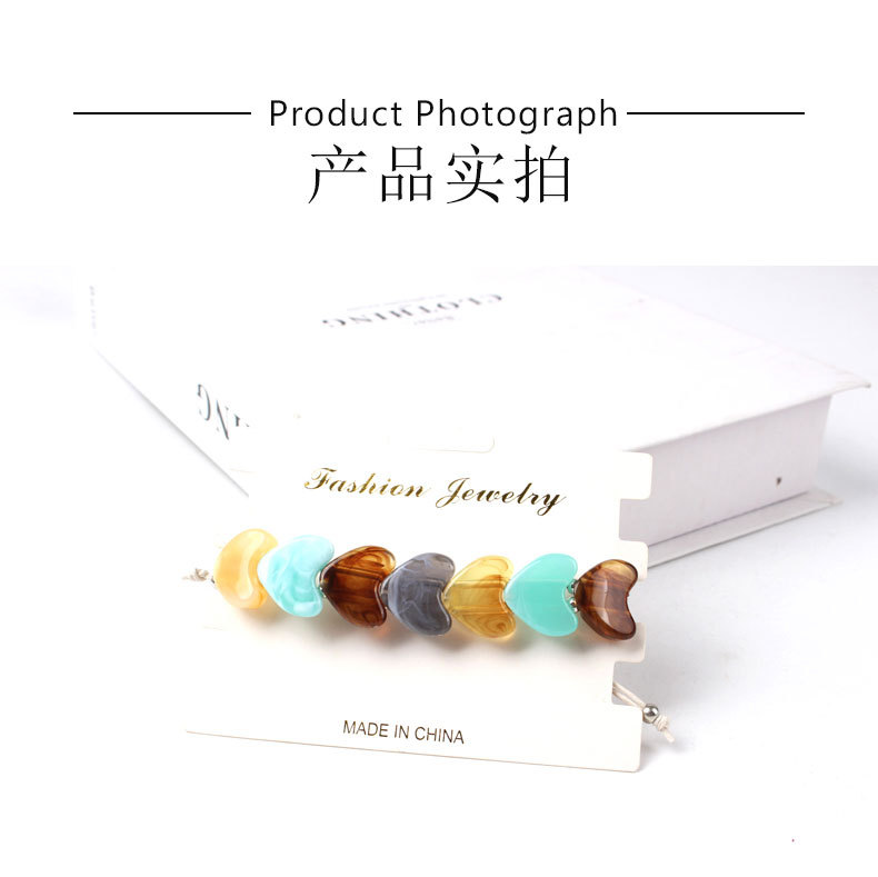 欧美跨境新品批发天然爱心水晶七彩石编织手链个性小众复古手链