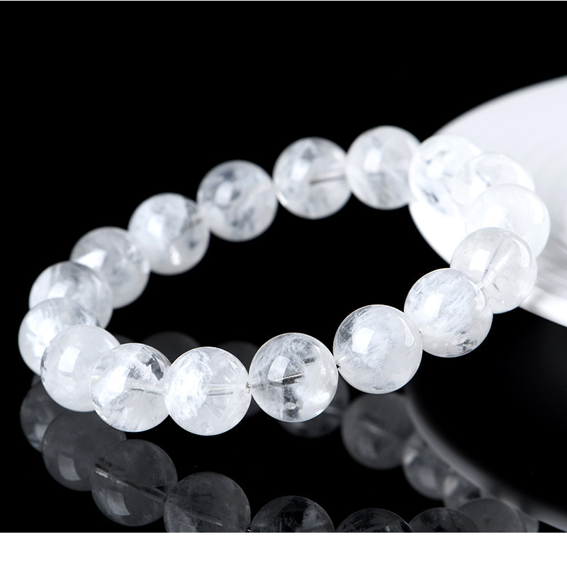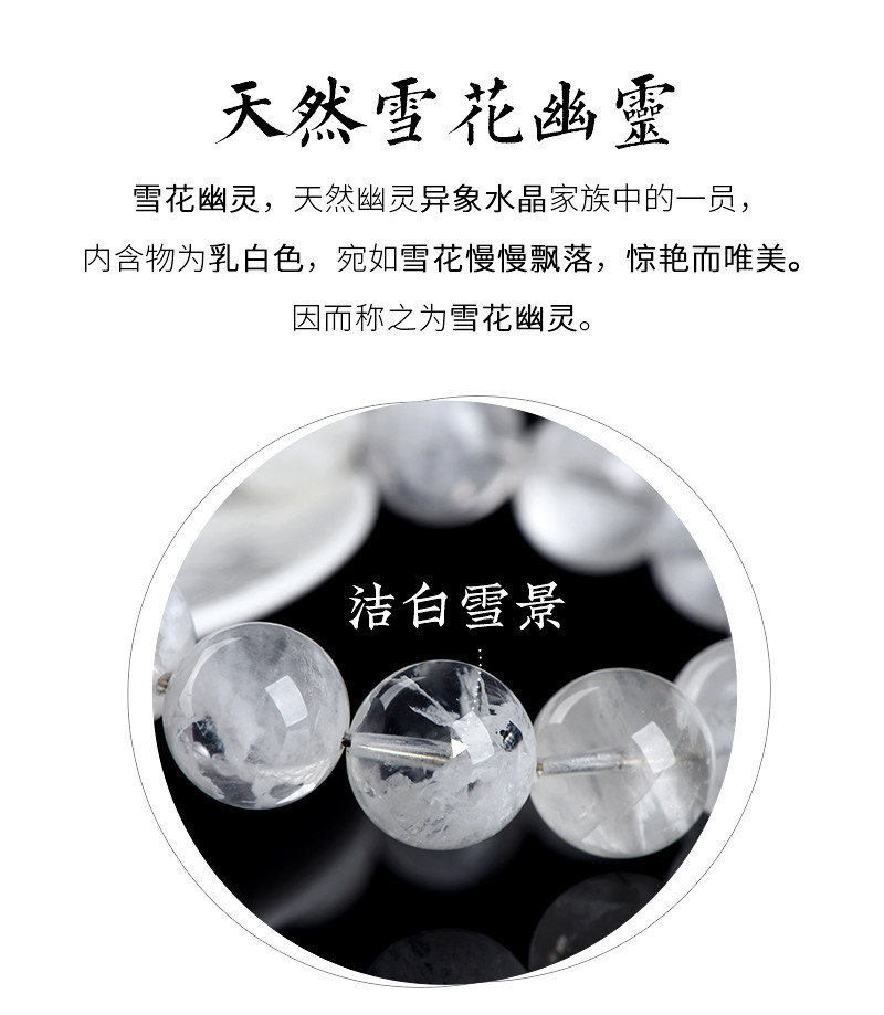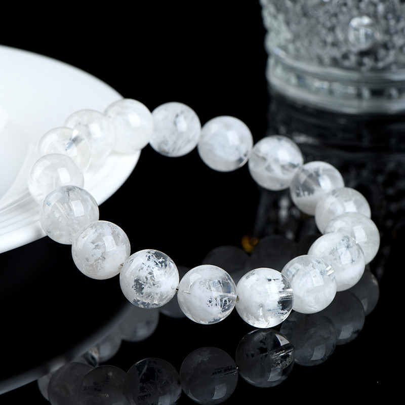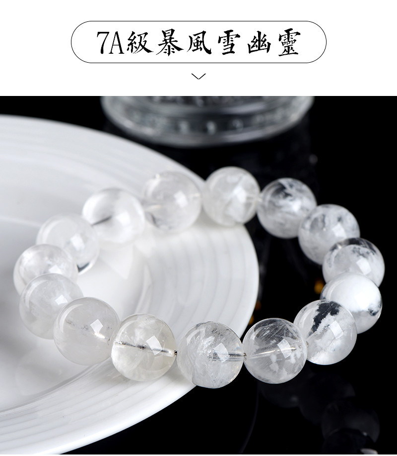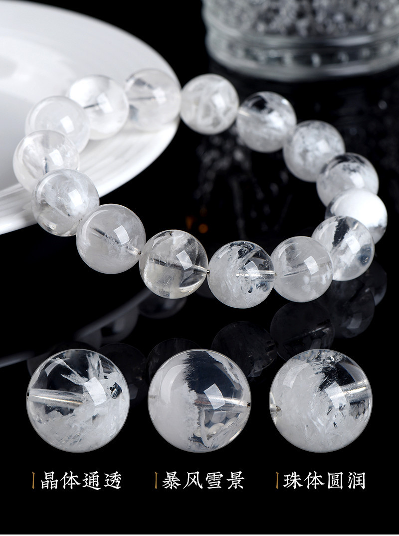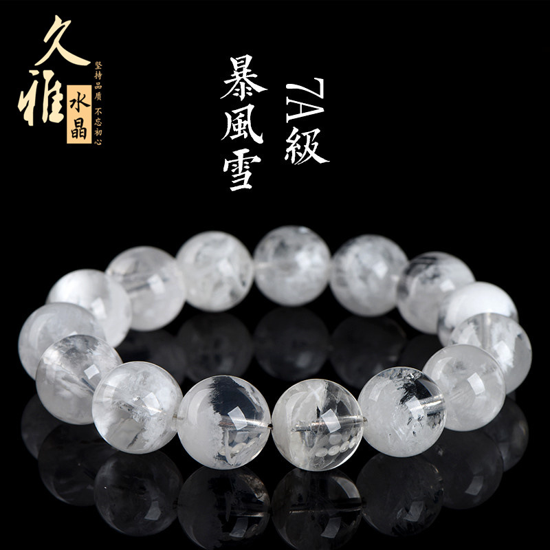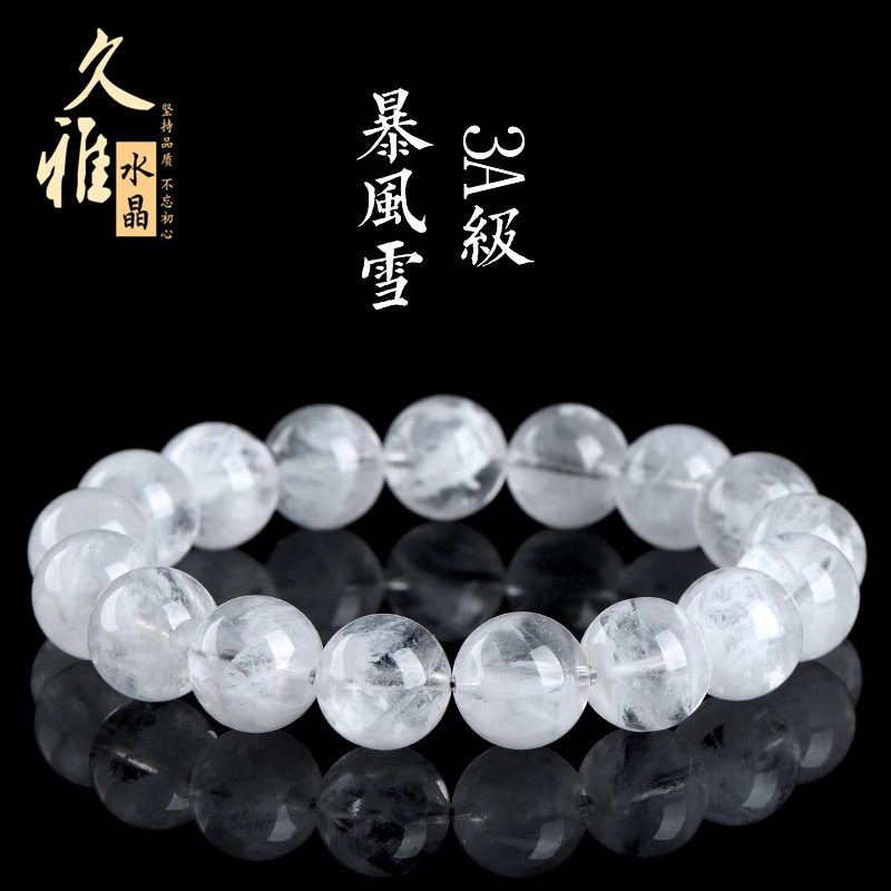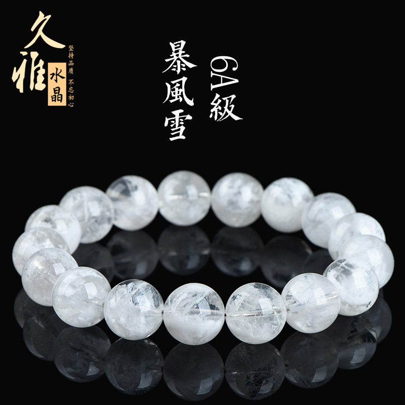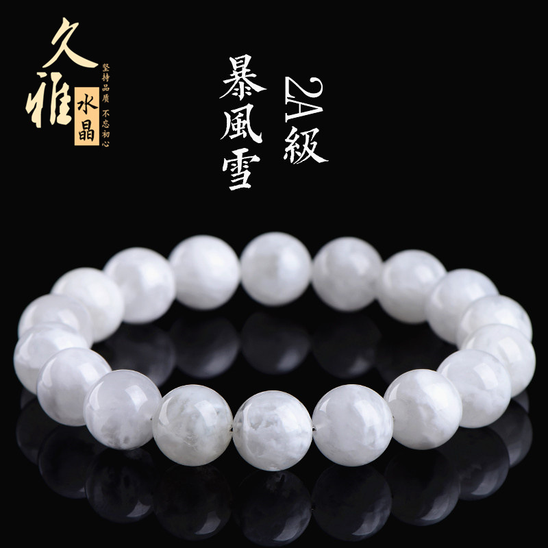 久雅水晶 天然暴风雪雪花圆珠手链 白色幽灵散珠手串 厂家直销