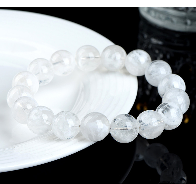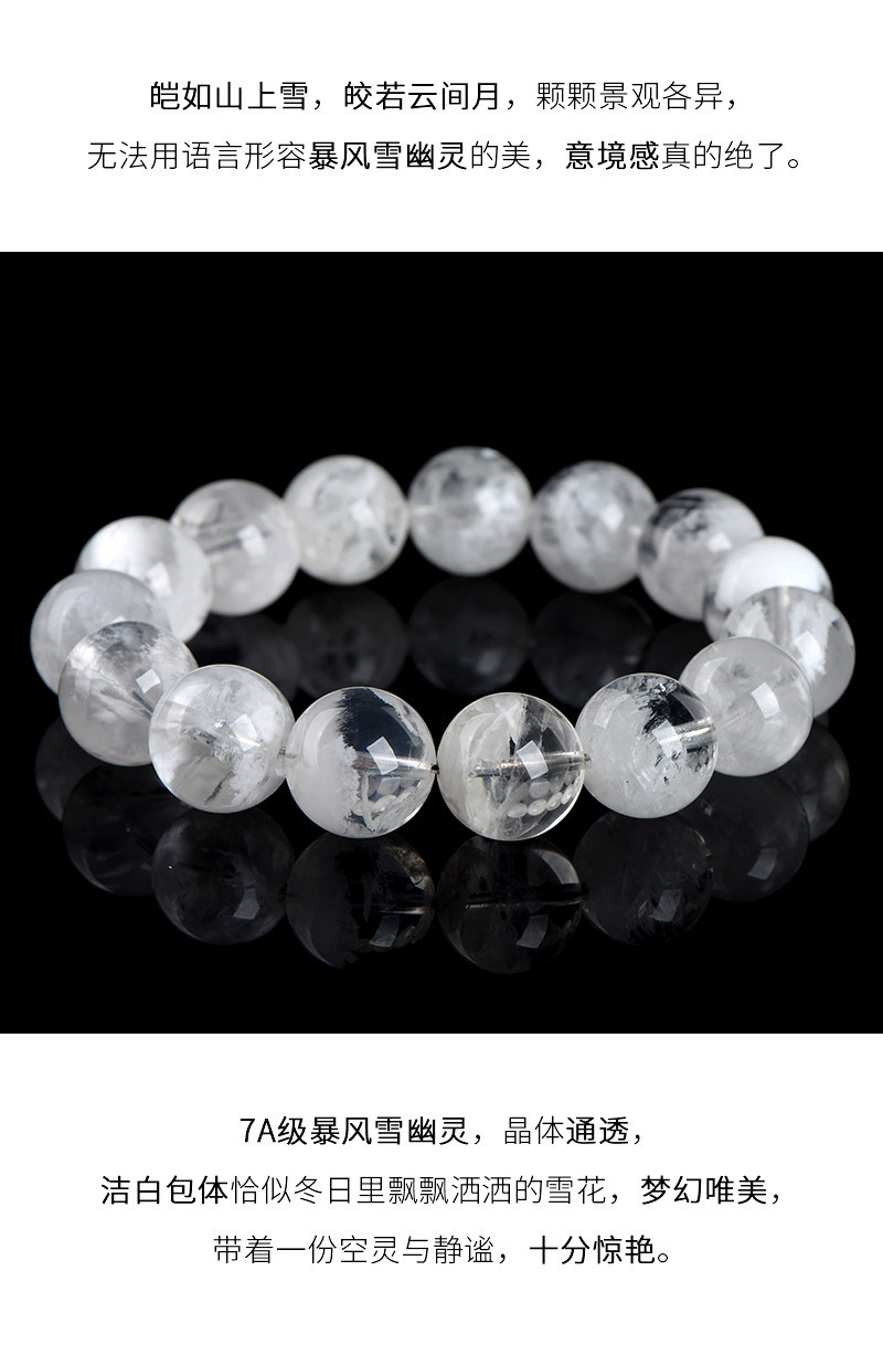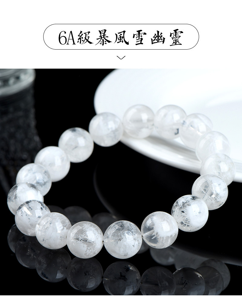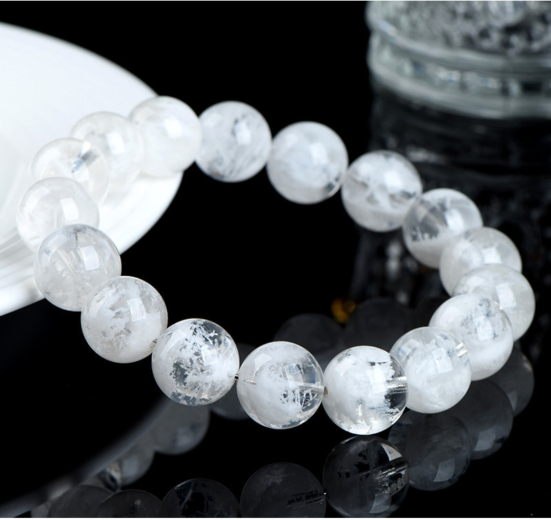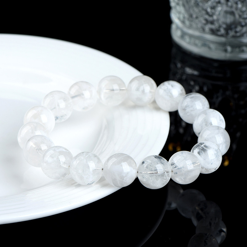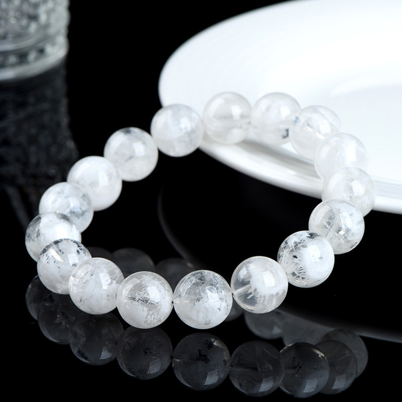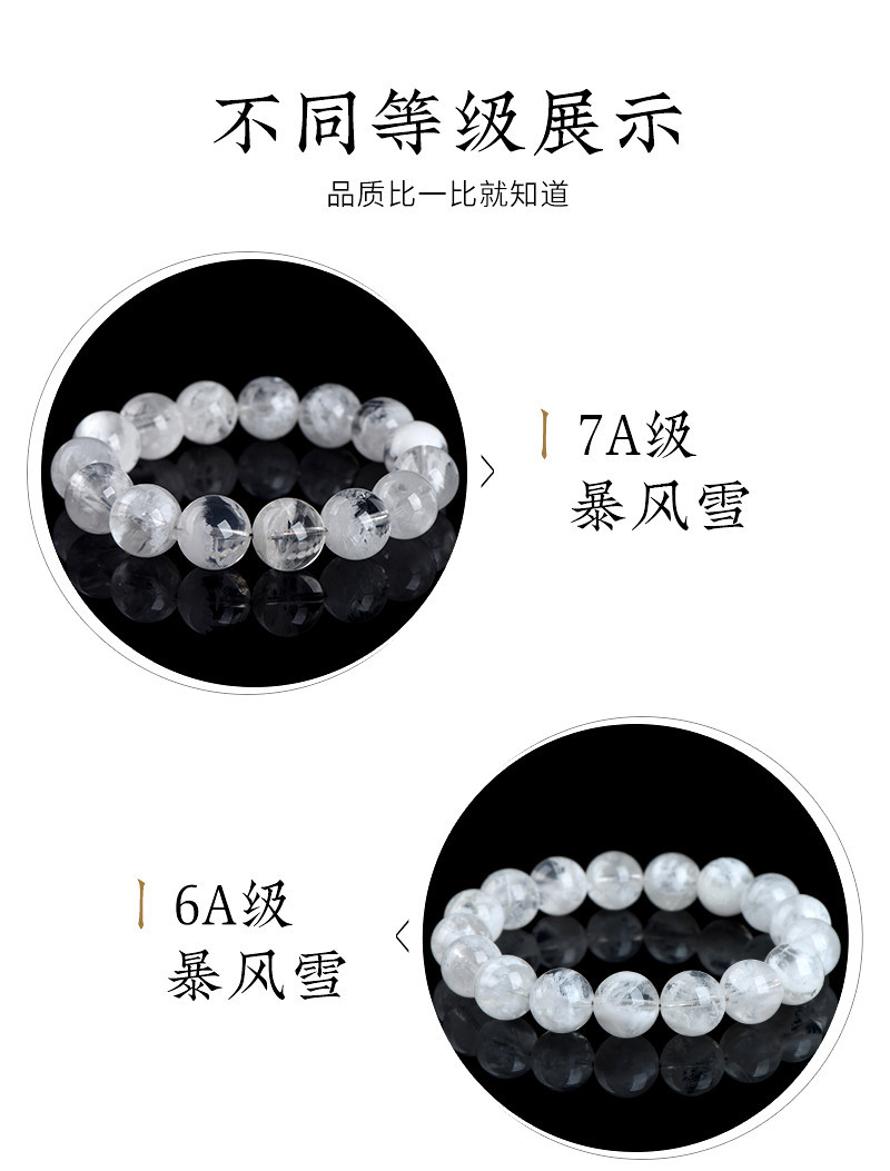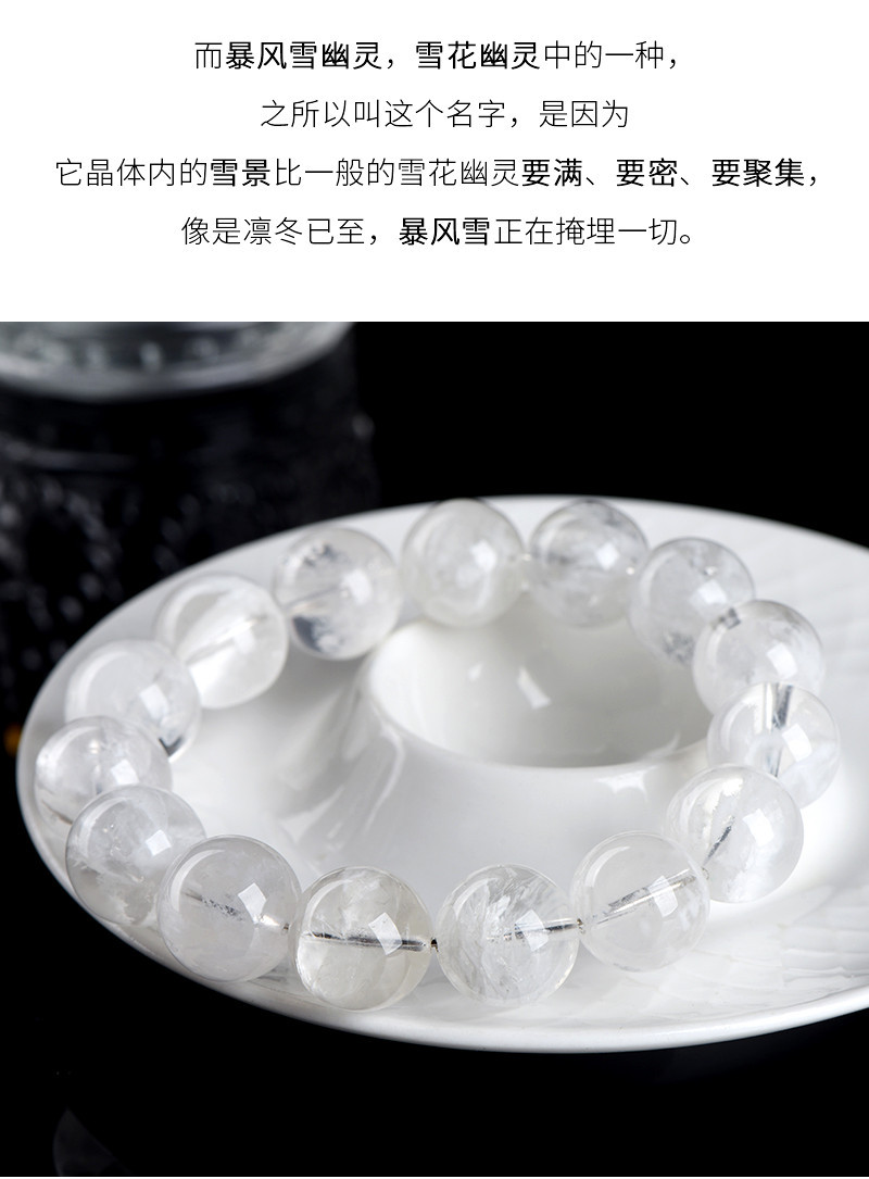 久雅水晶 天然暴风雪雪花圆珠手链 白色幽灵散珠手串 厂家直销