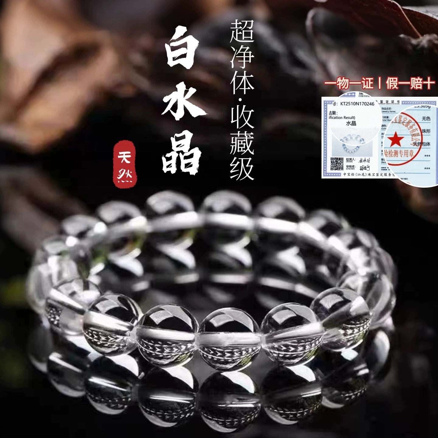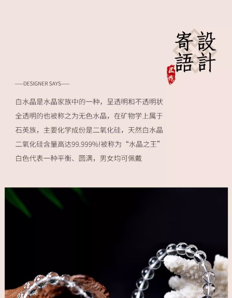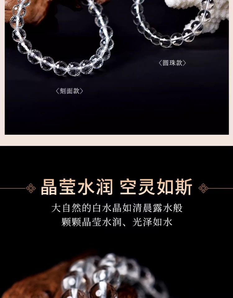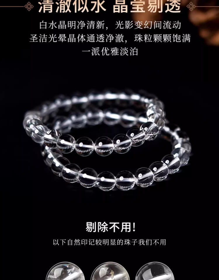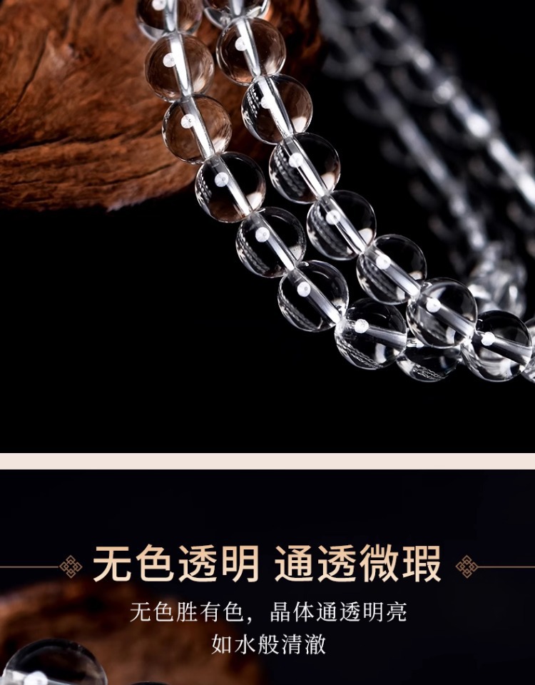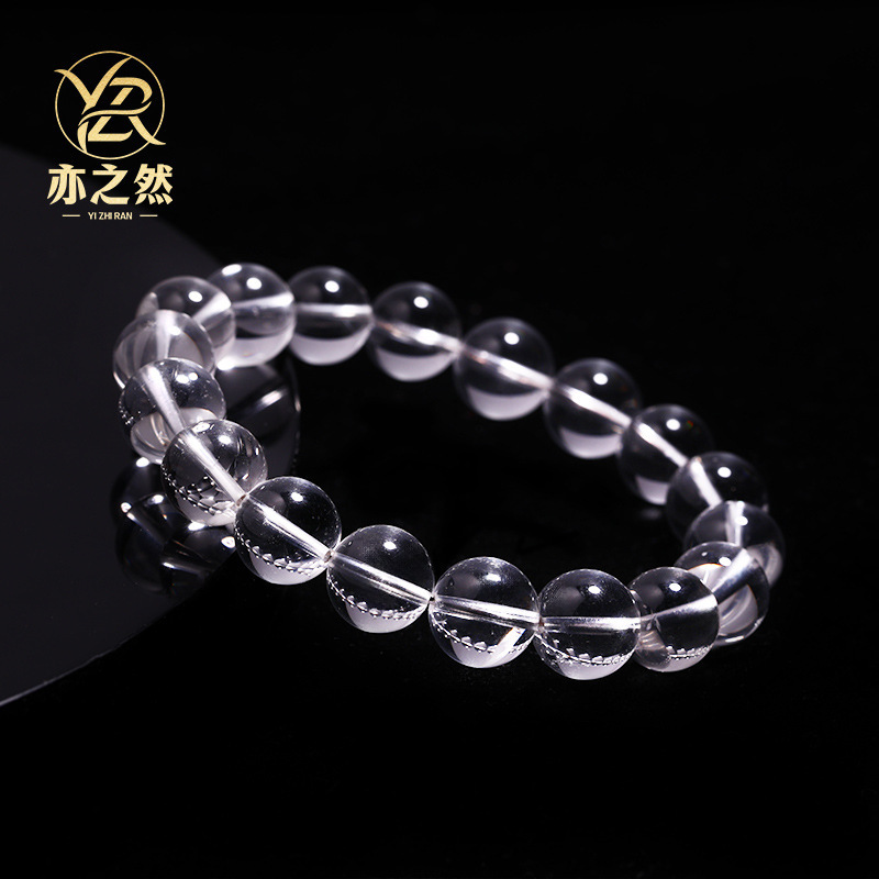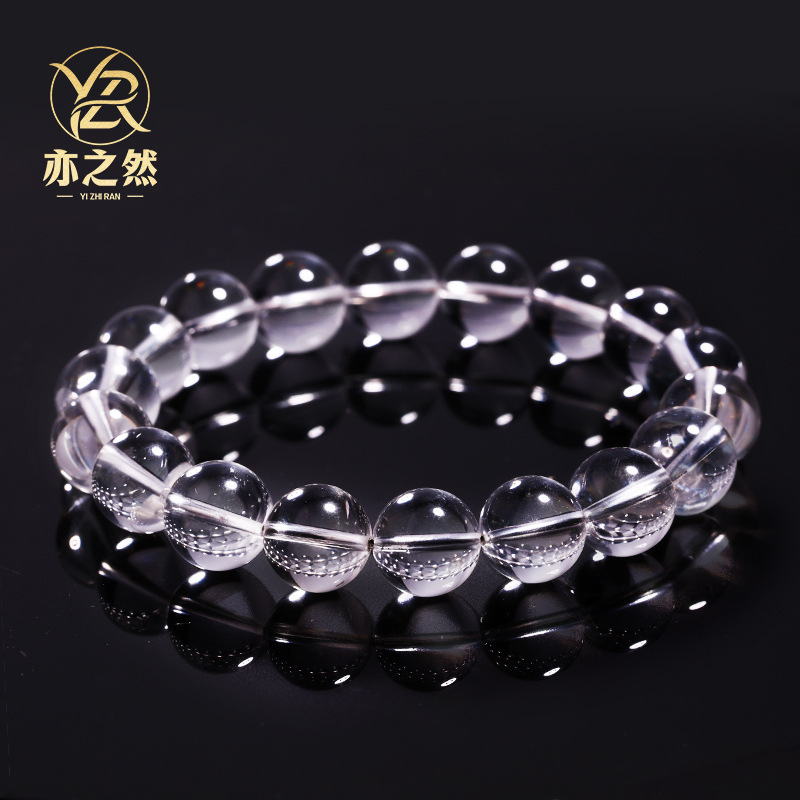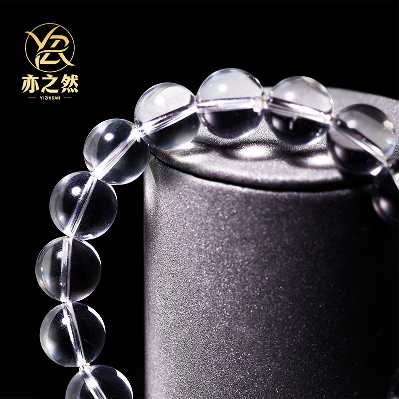 亦之然水晶 天然东海老料圆珠白水晶手链 老矿白水晶手串散珠批发