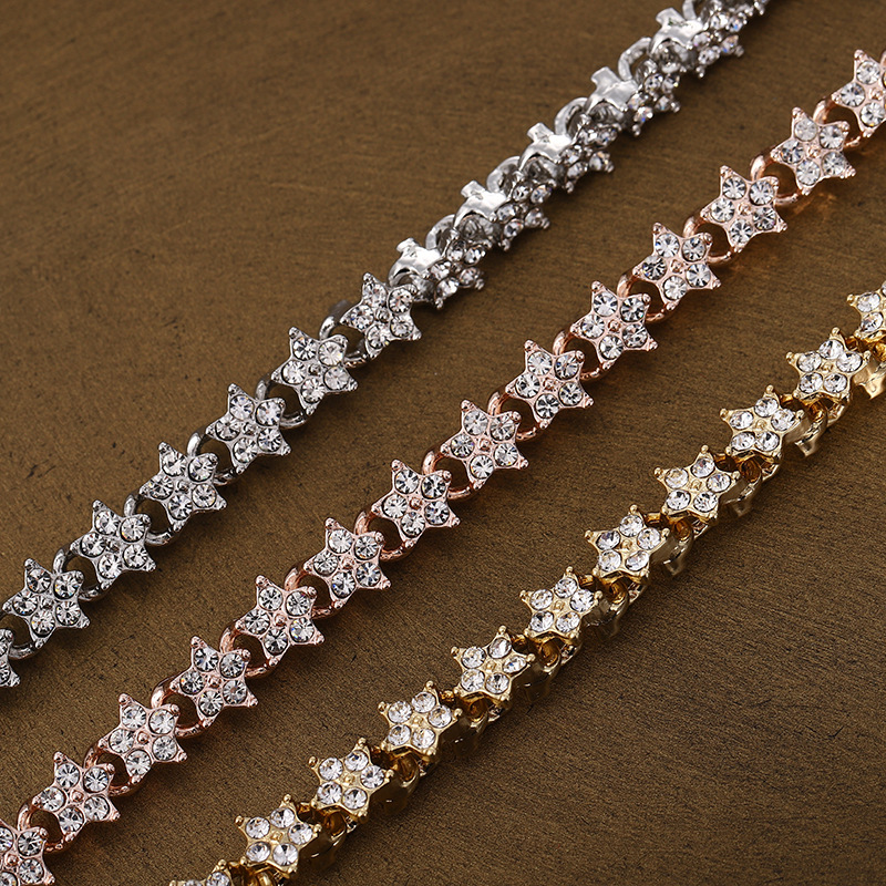 欧美新款简约罗马水晶手链五角星镶钻满钻手链民族风饰品珠宝首饰
