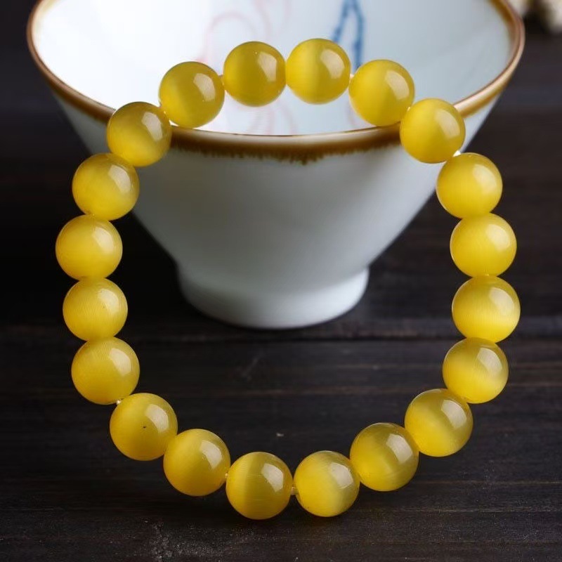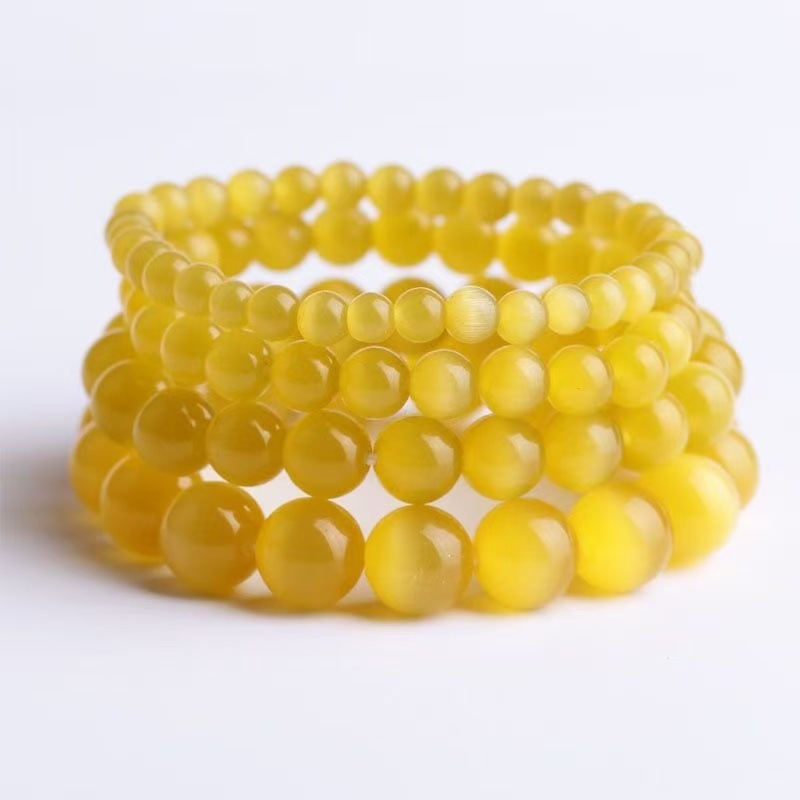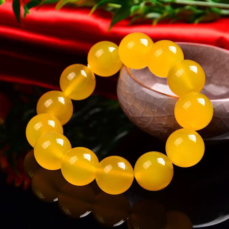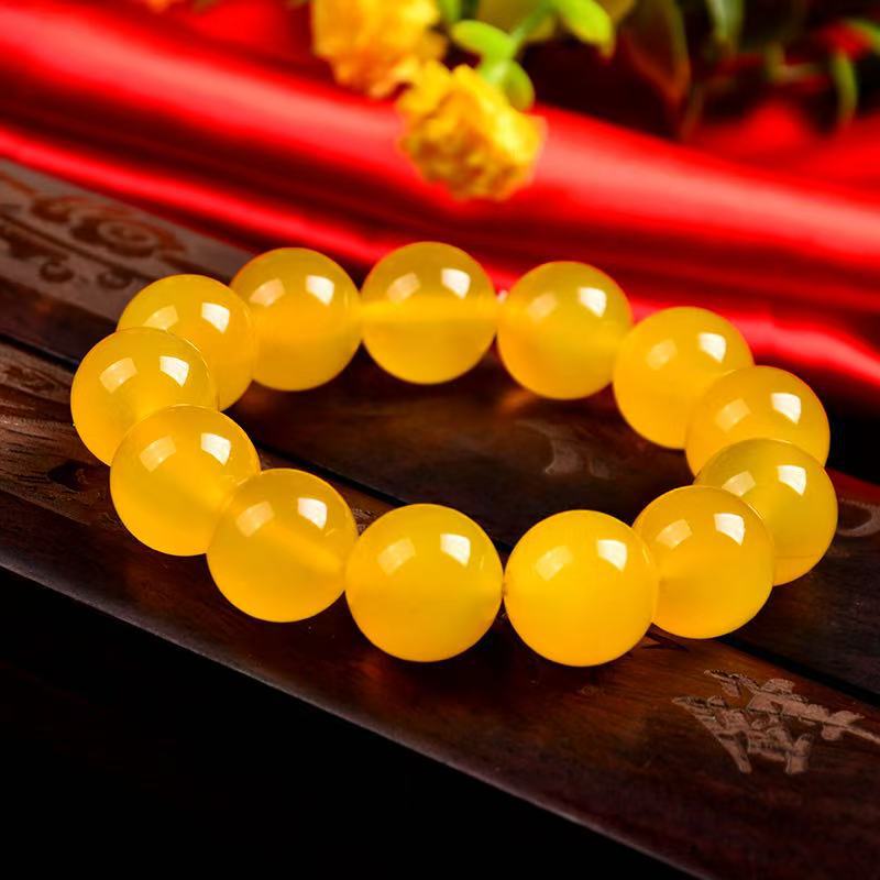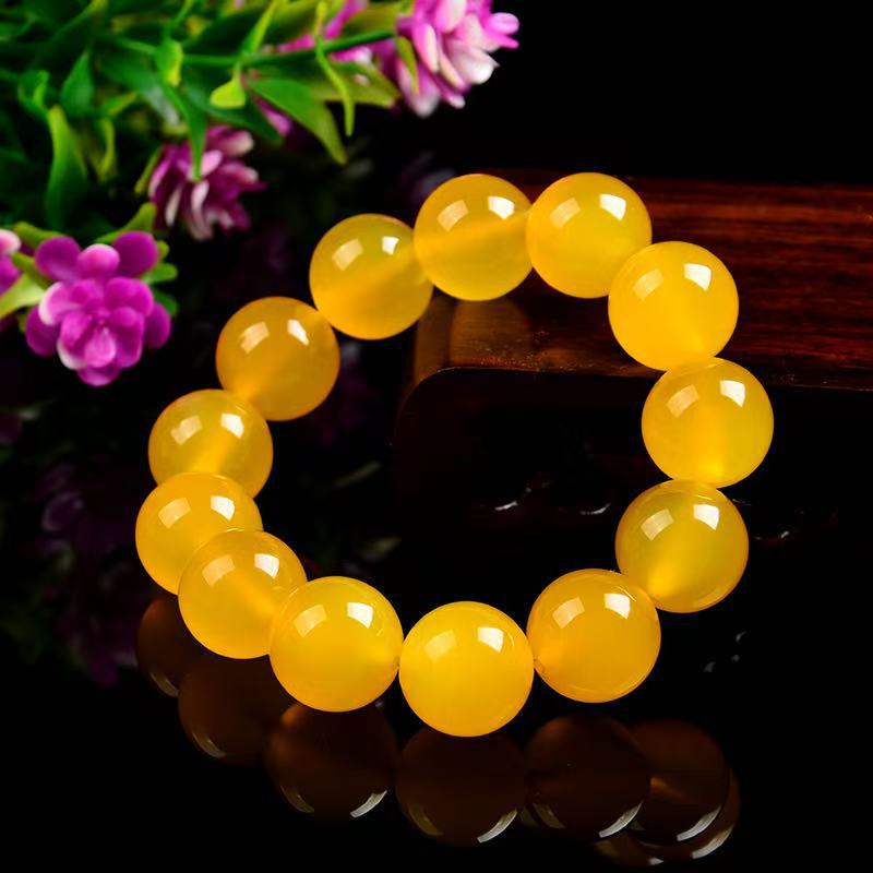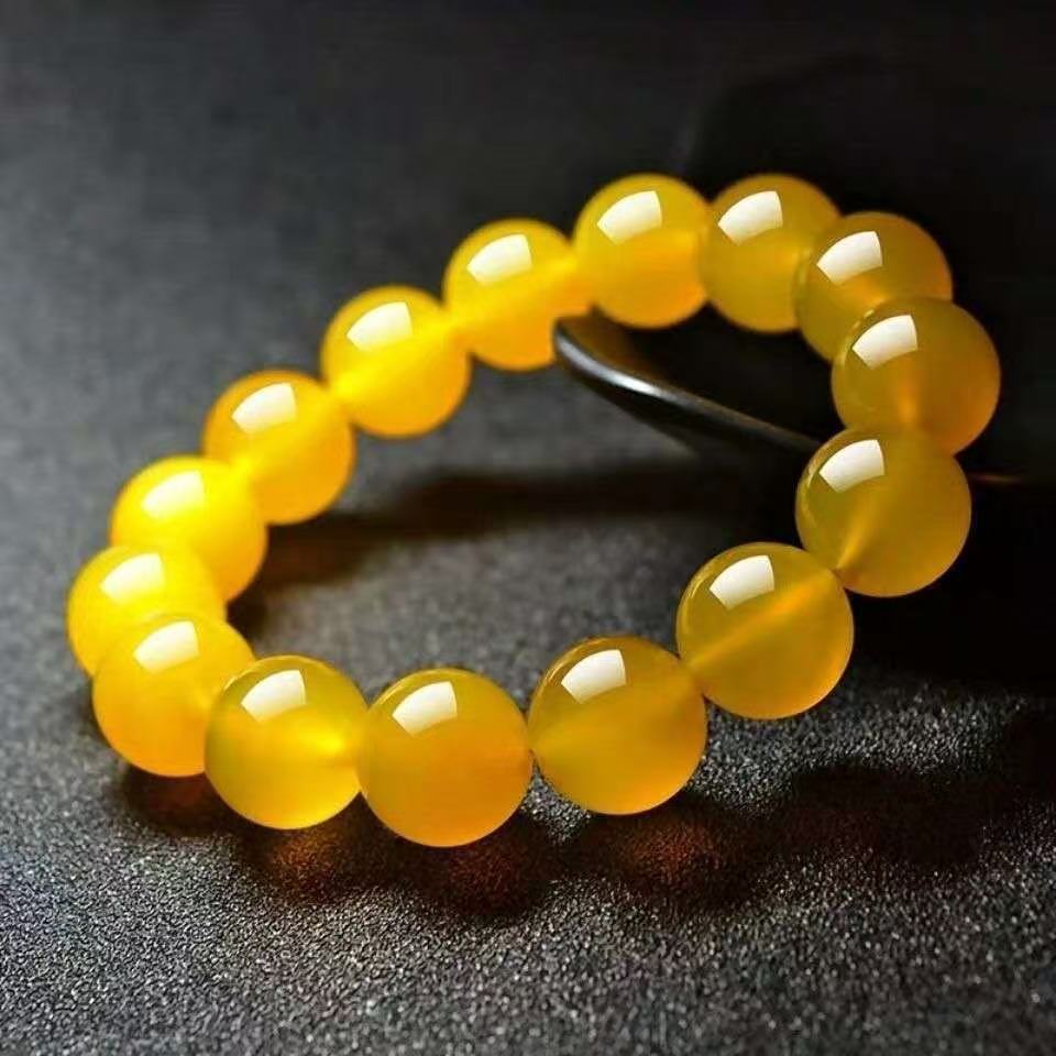 高品质天然黄玛瑙手链男女款手串黄水晶佛珠蛇年本命年妈妈情侣礼