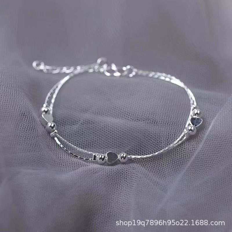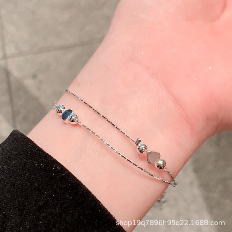 爱心圆珠手链女学生ins小众设计双层手饰源头厂家批发水晶串珠