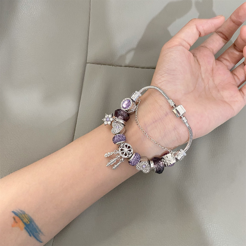 潘家风格紫色水晶手链女ins小众设计轻奢高级感捕梦网吊坠diy手镯