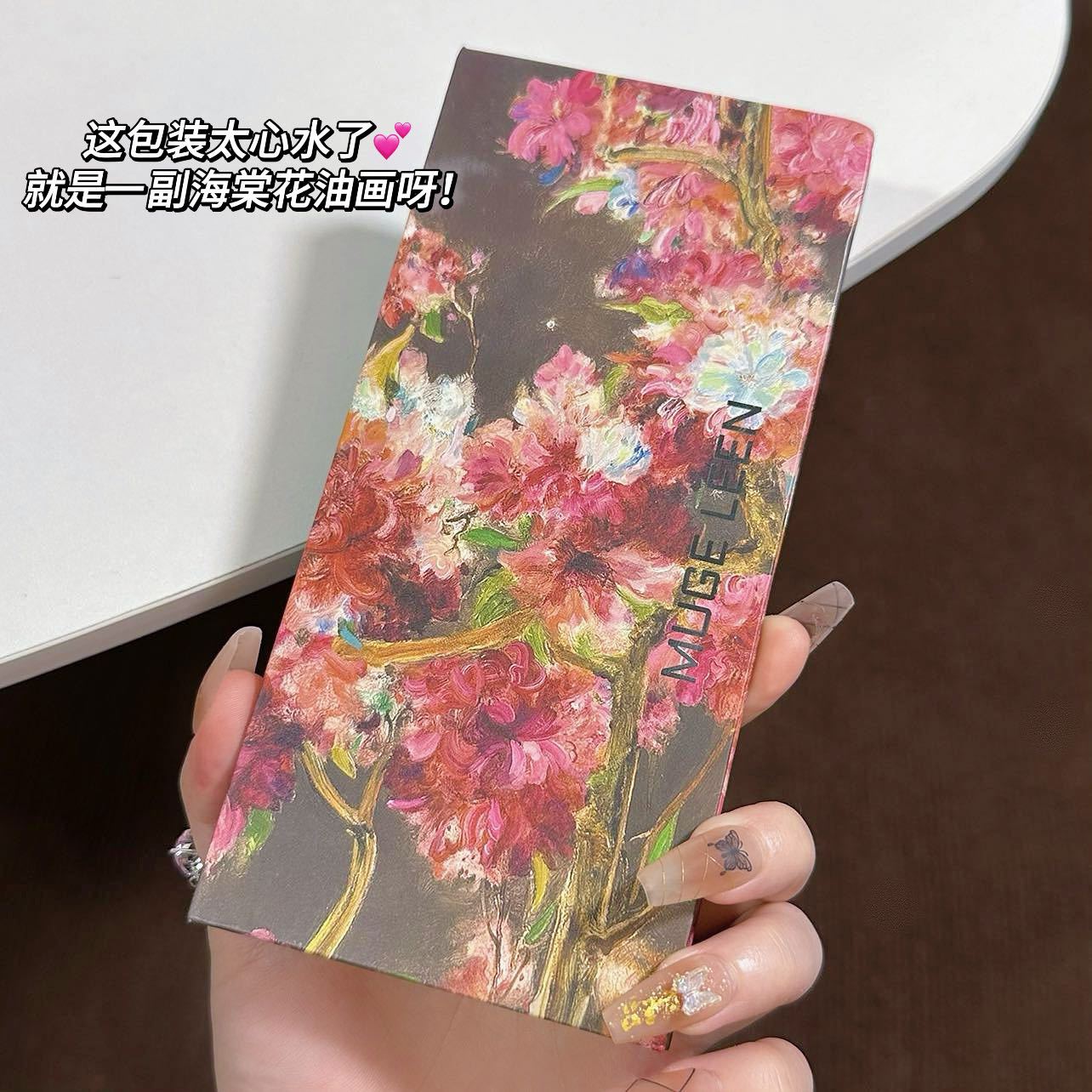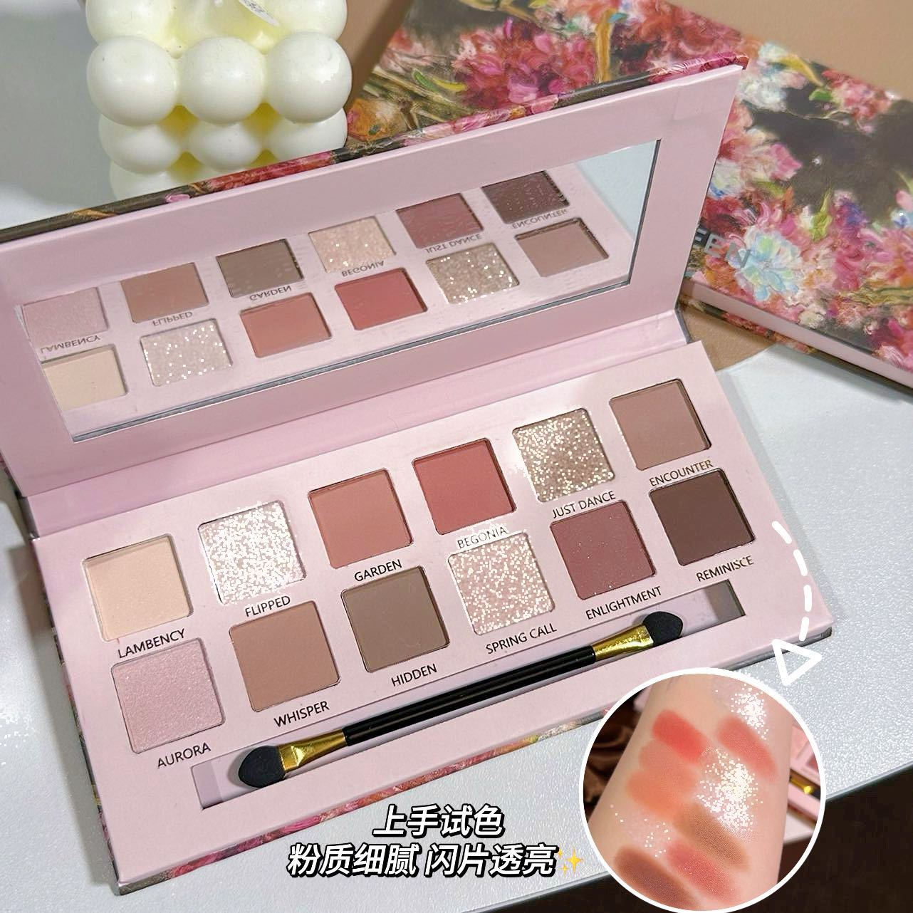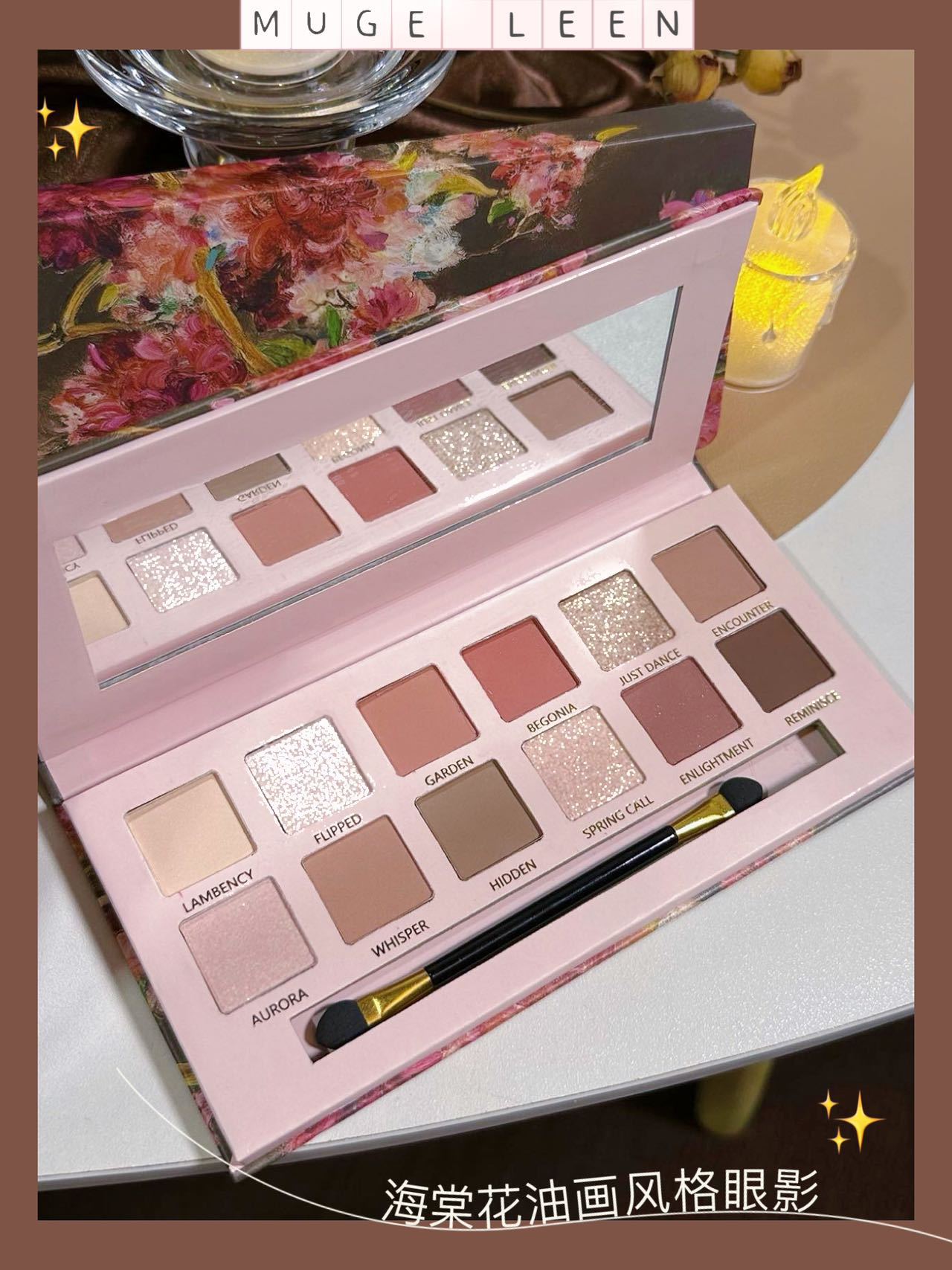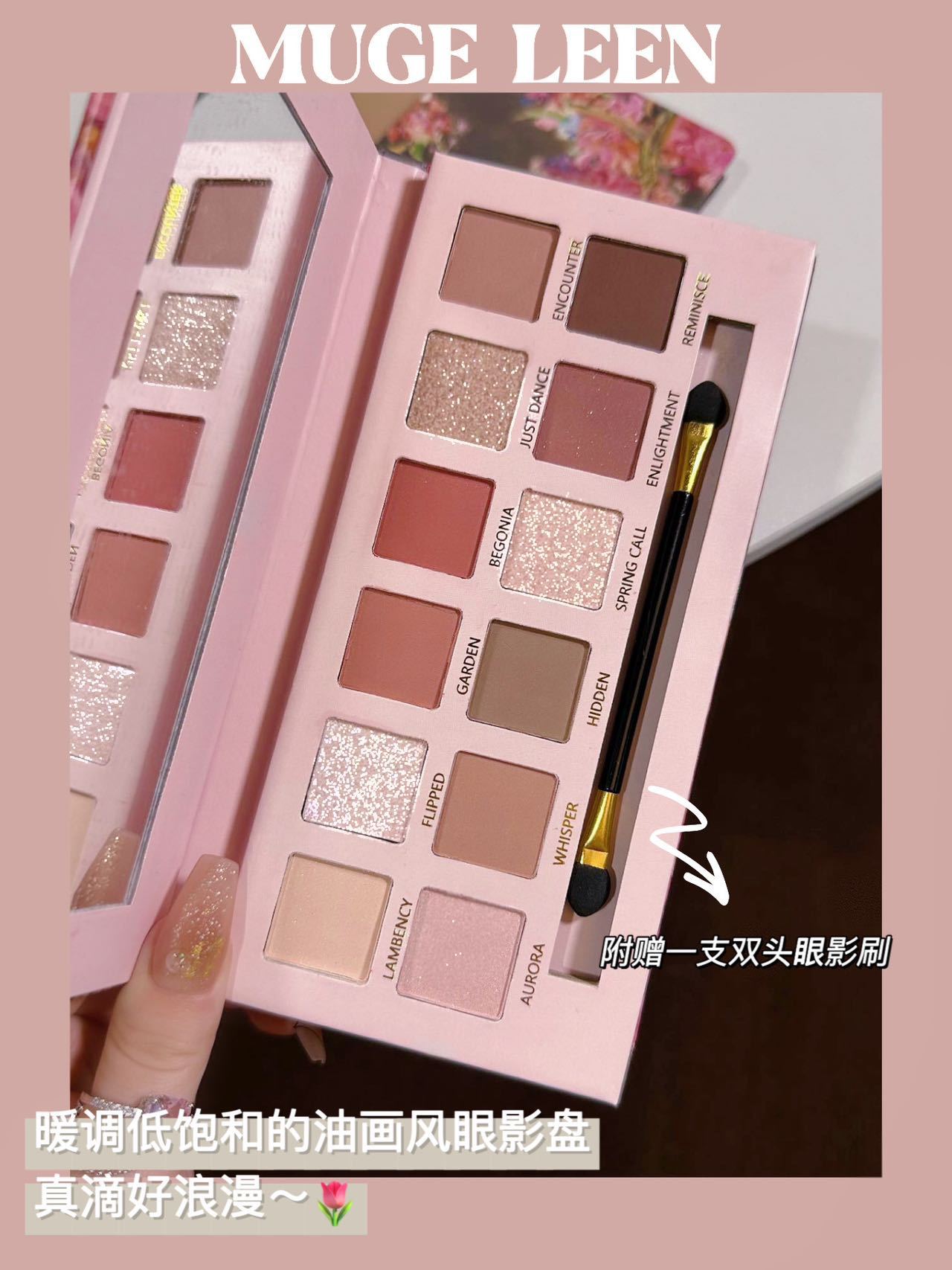 彩妆MUGE LEEN海棠花油画风12色眼影盘珠光哑光低饱和粉棕盘眼影