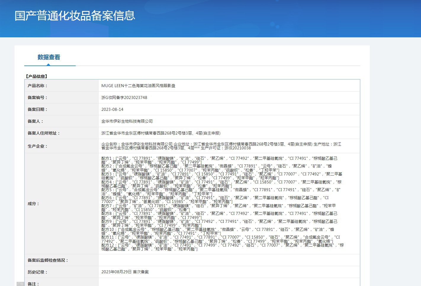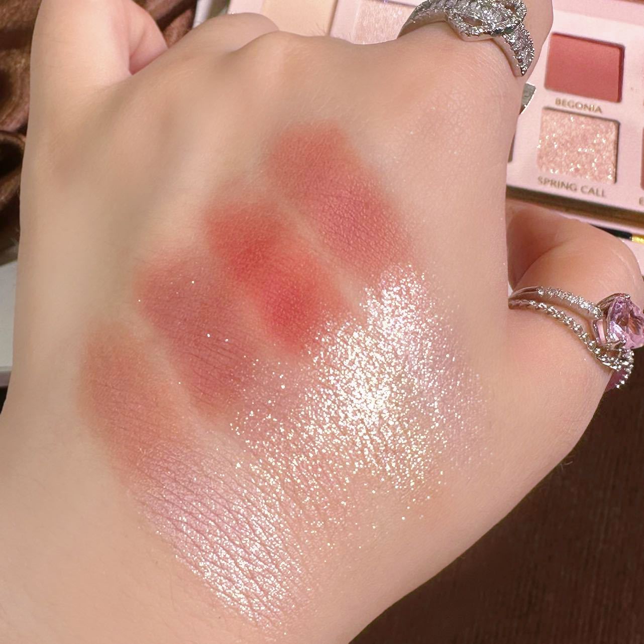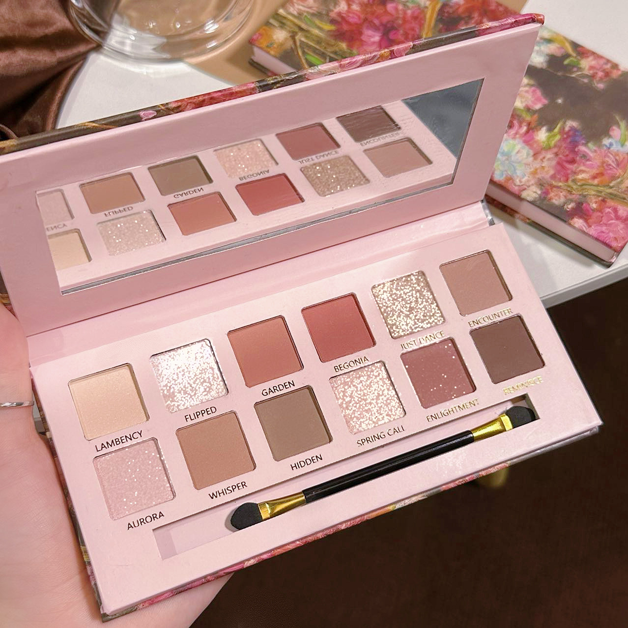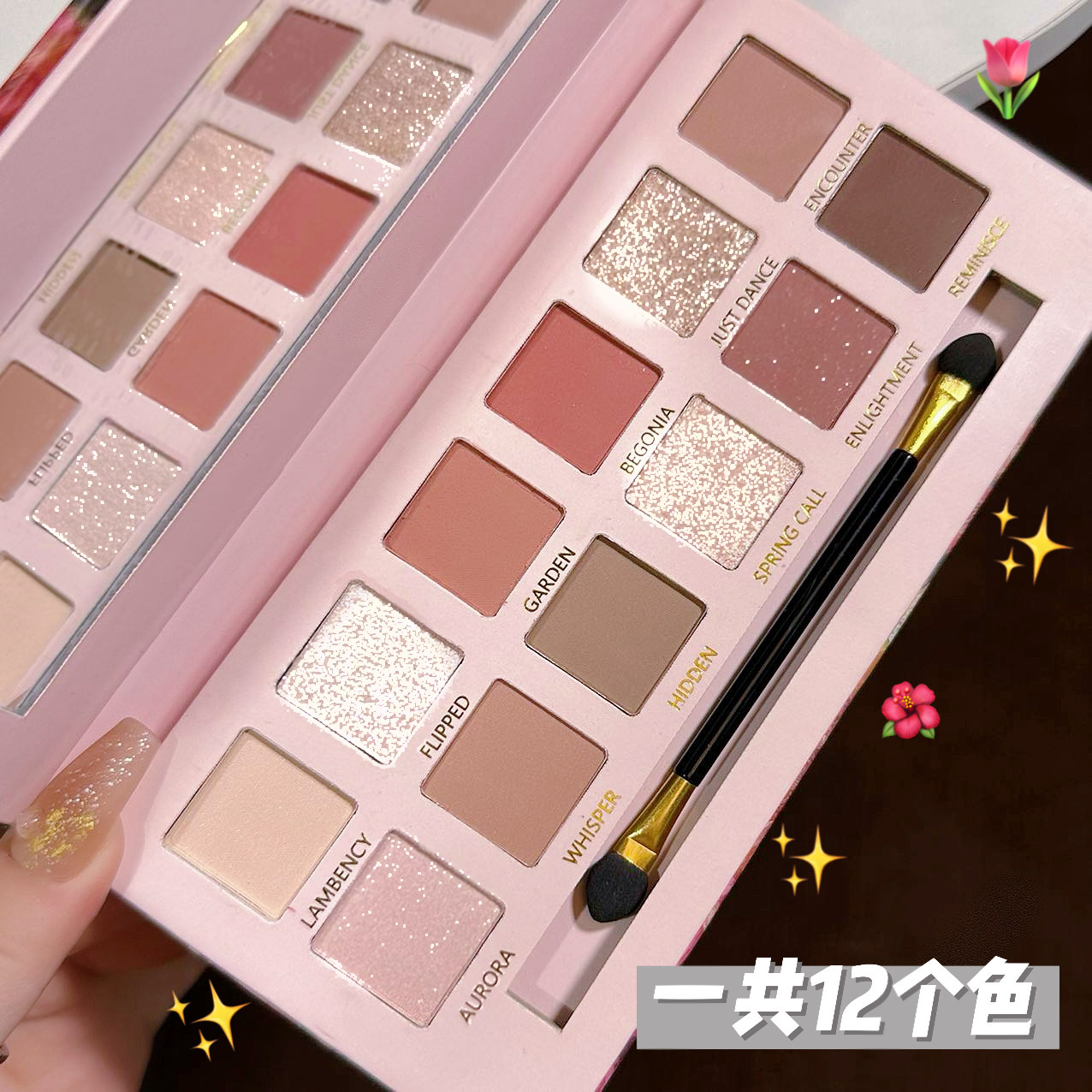 彩妆MUGE LEEN海棠花油画风12色眼影盘珠光哑光低饱和粉棕盘眼影