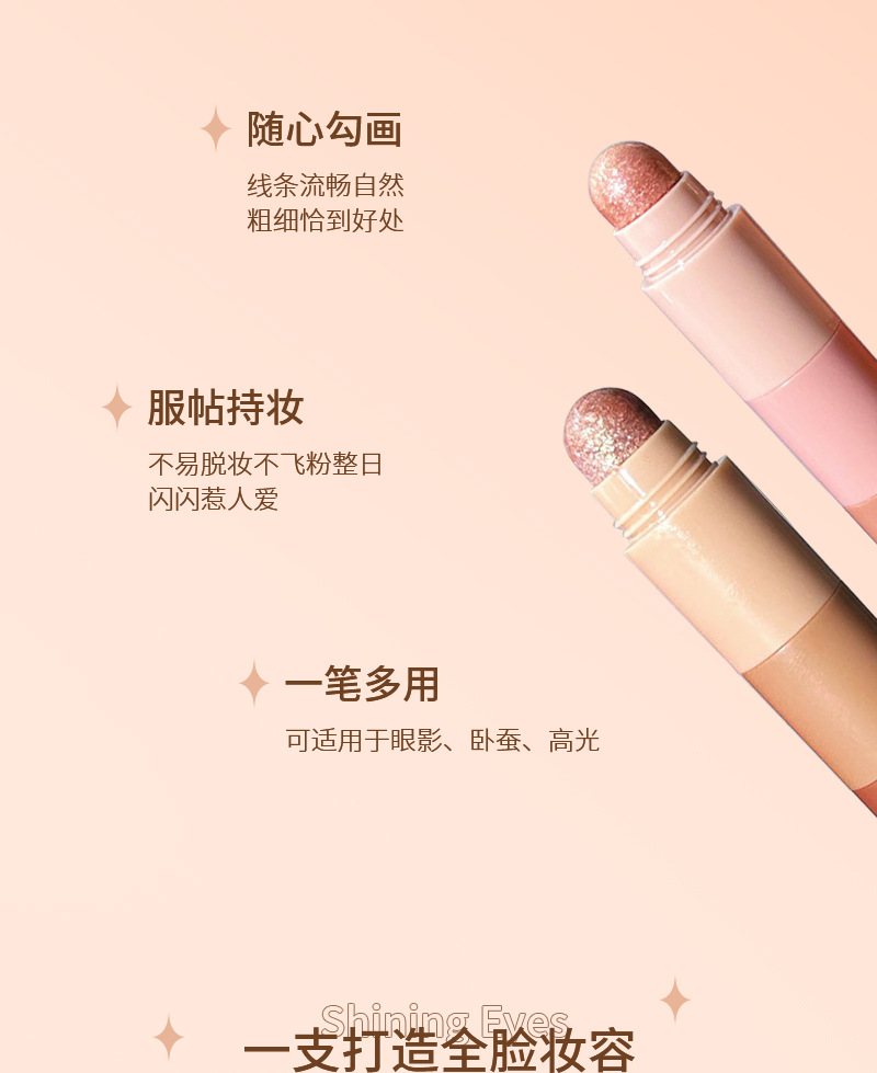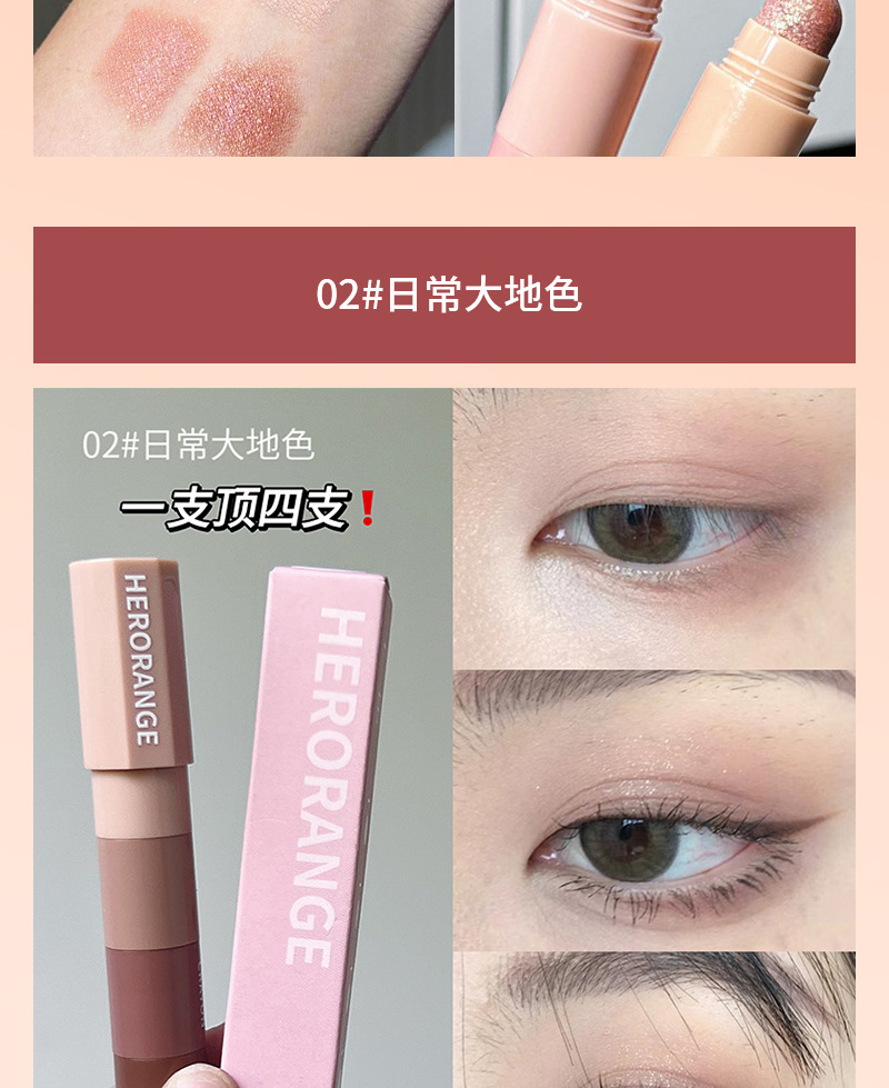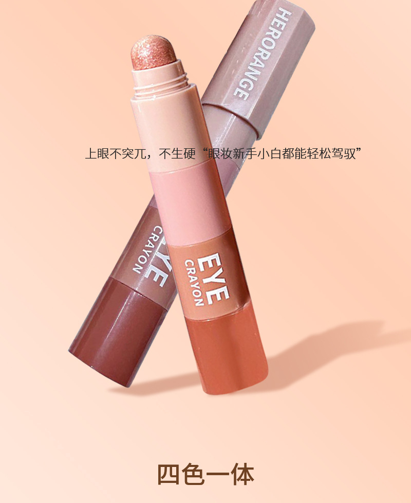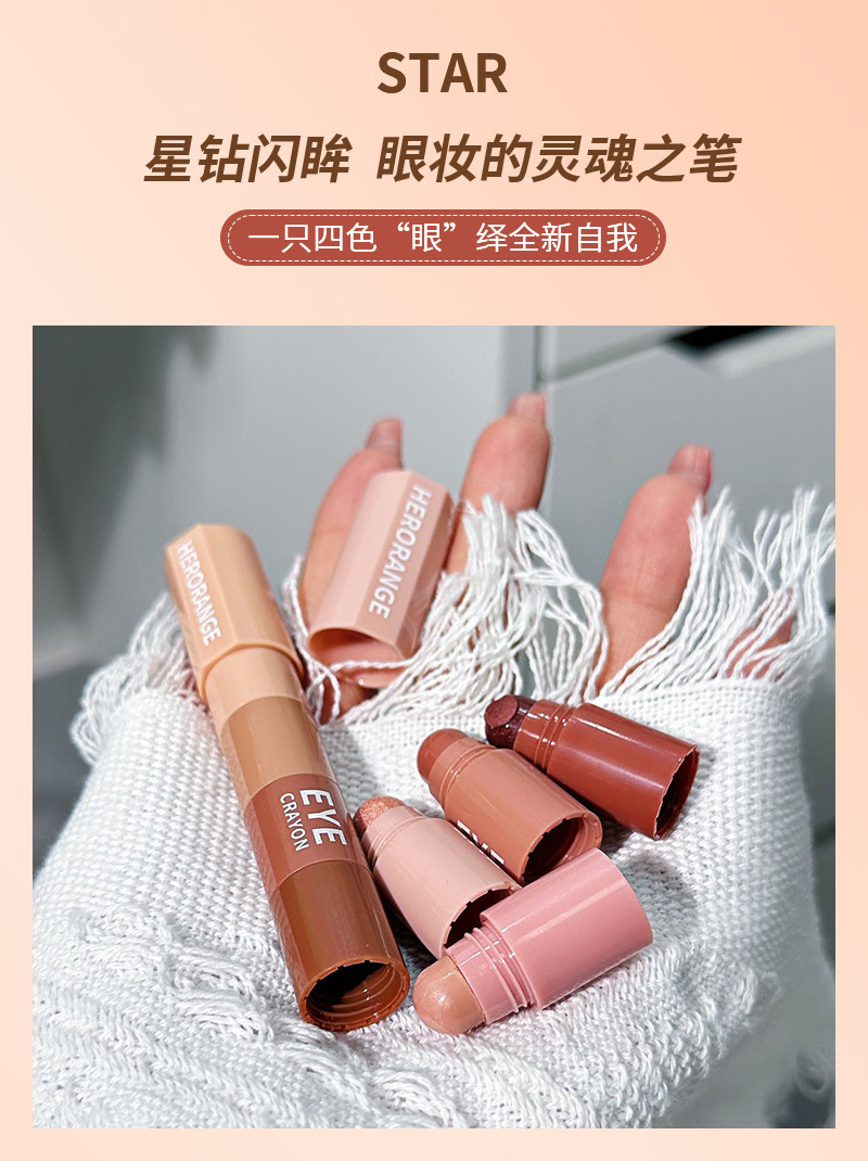 HERORANGE~四色眼影笔卧蚕高光一抹成型大地色珠光细闪懒人眼影棒