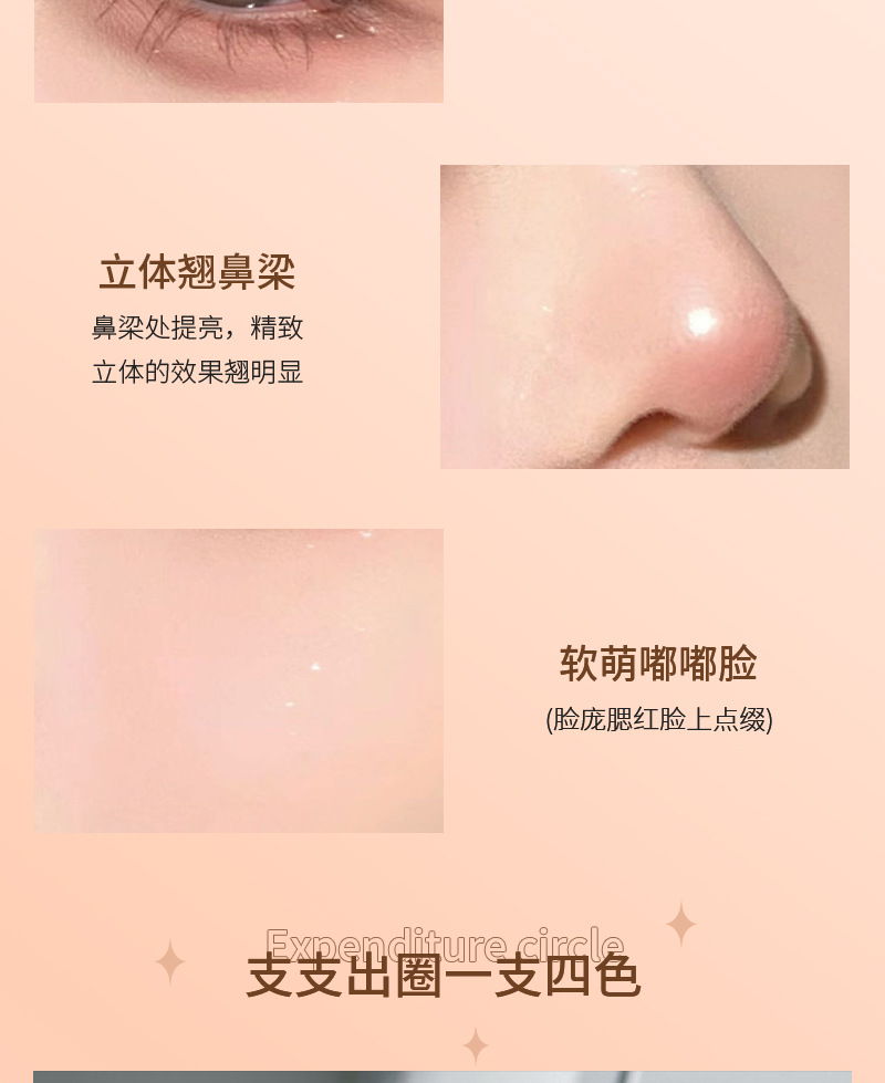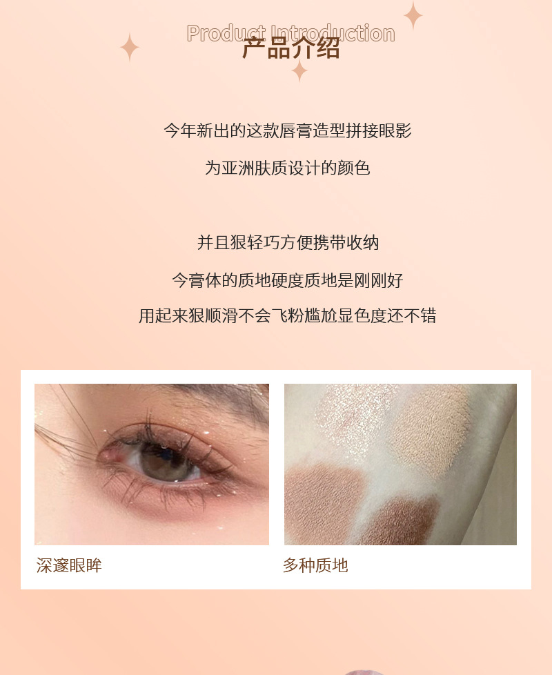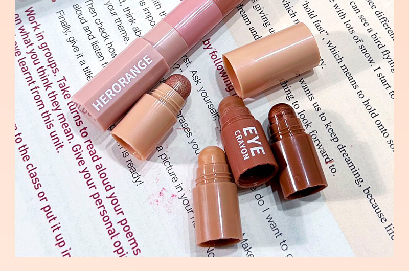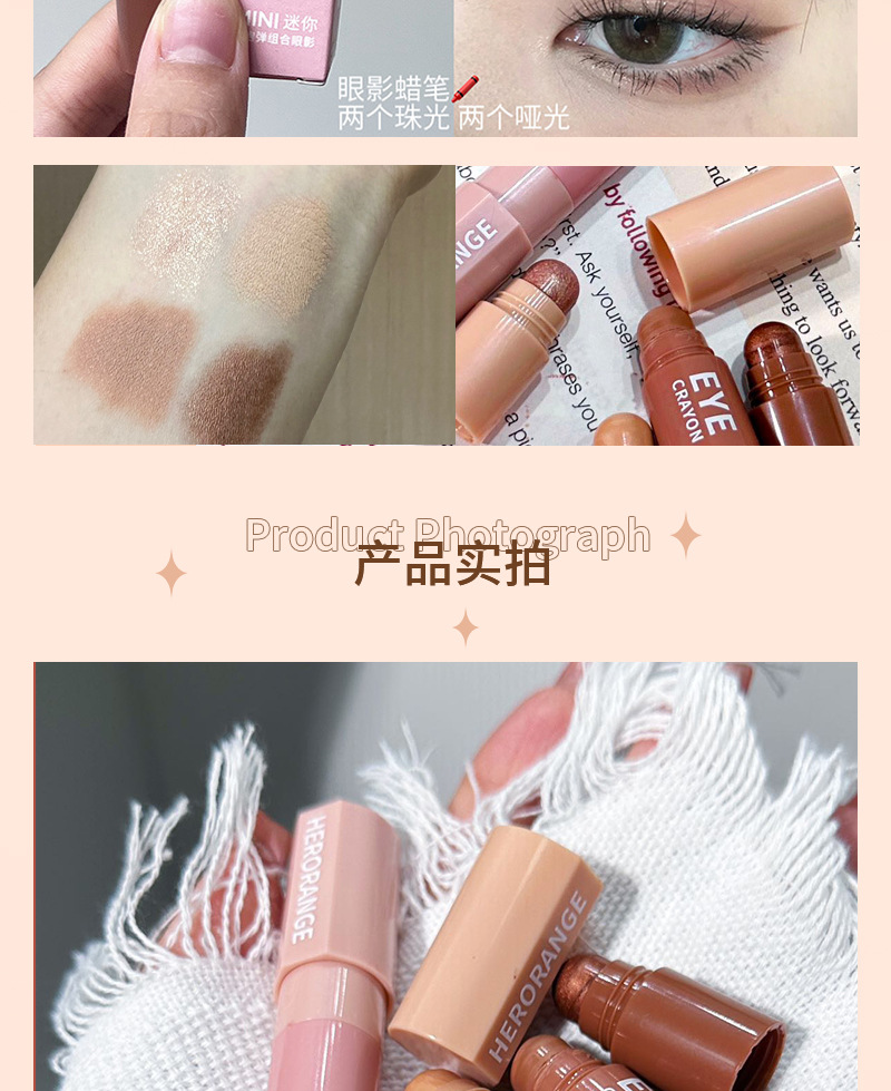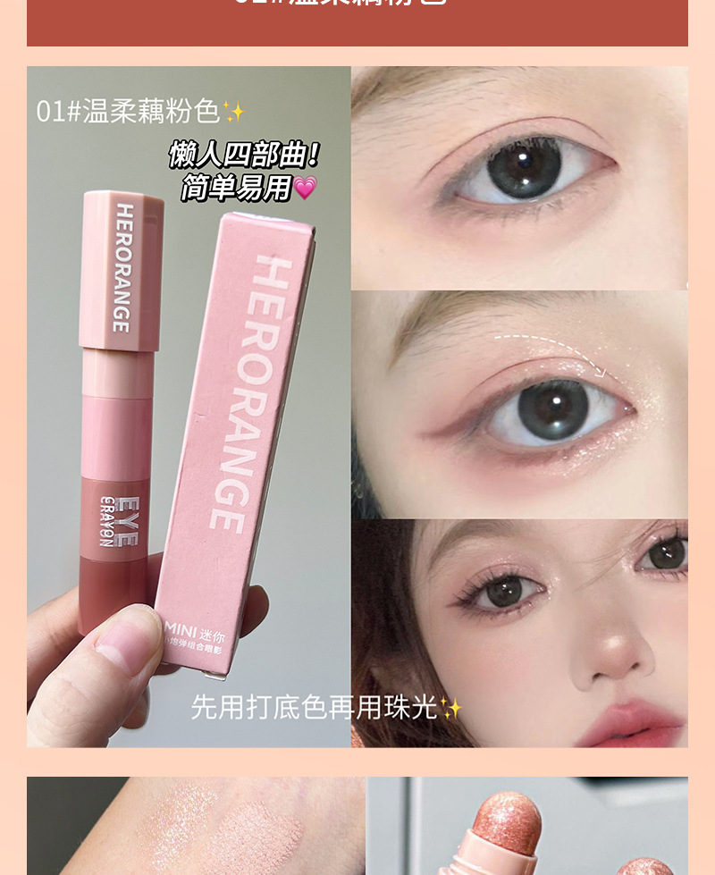 HERORANGE~四色眼影笔卧蚕高光一抹成型大地色珠光细闪懒人眼影棒