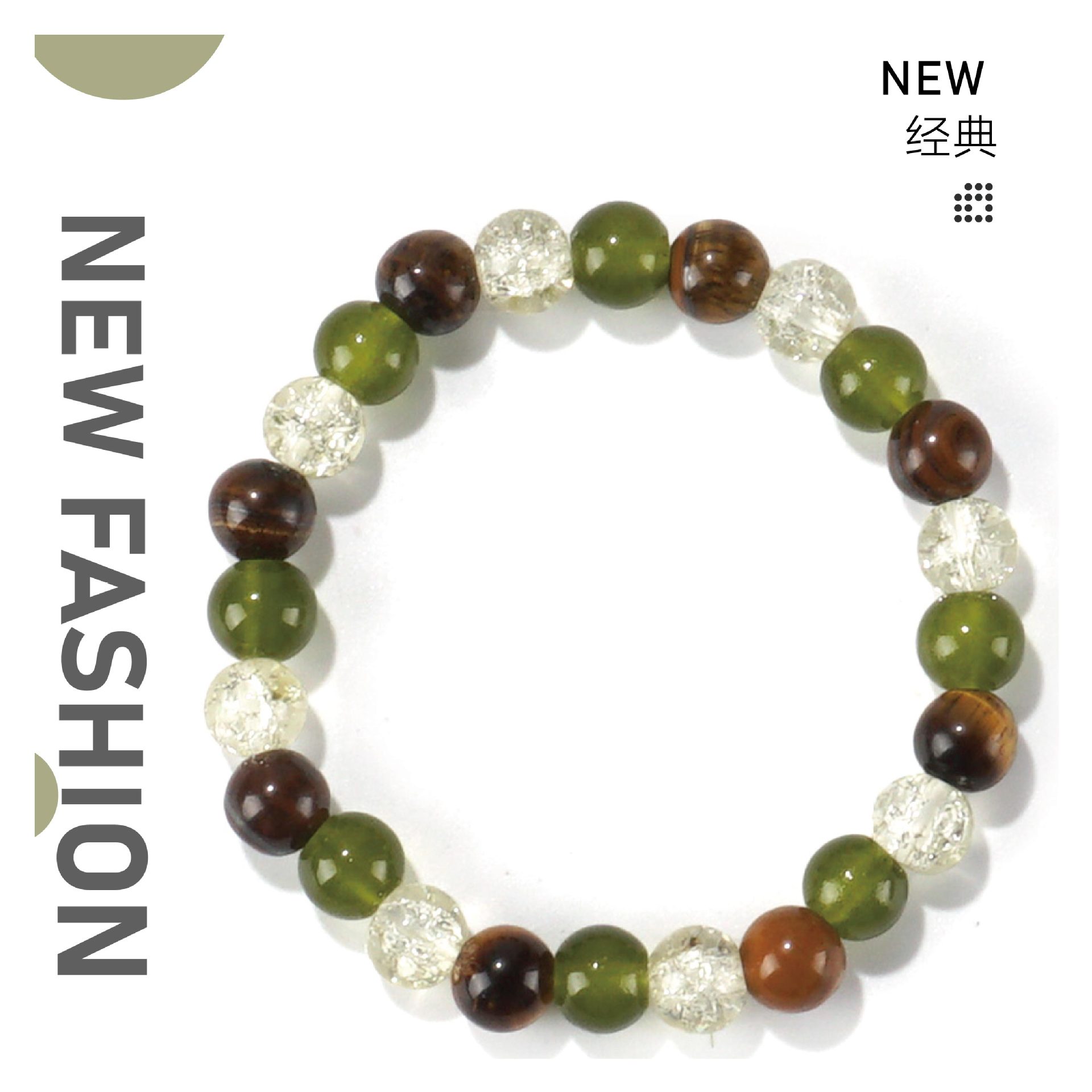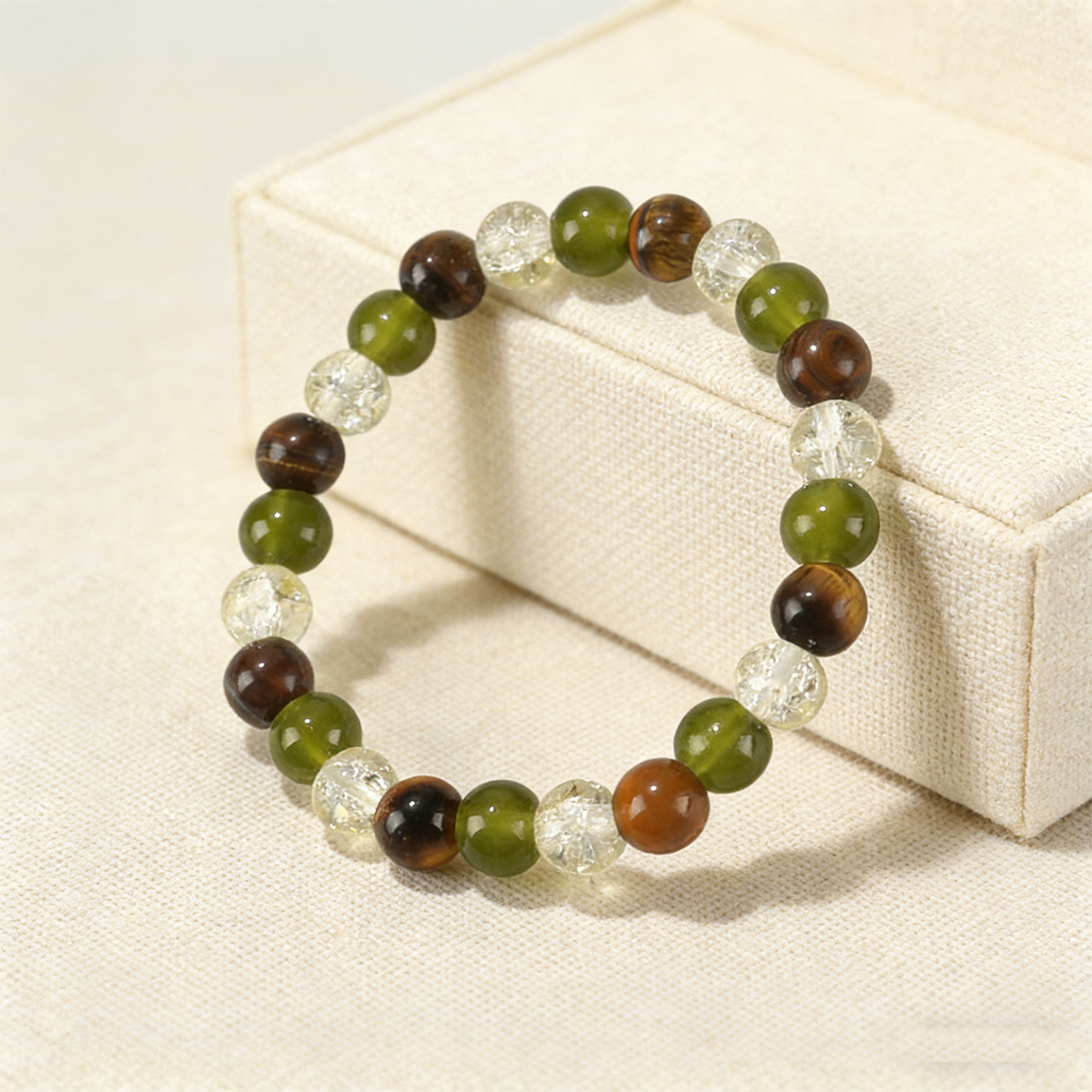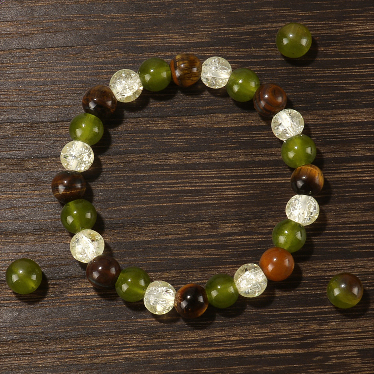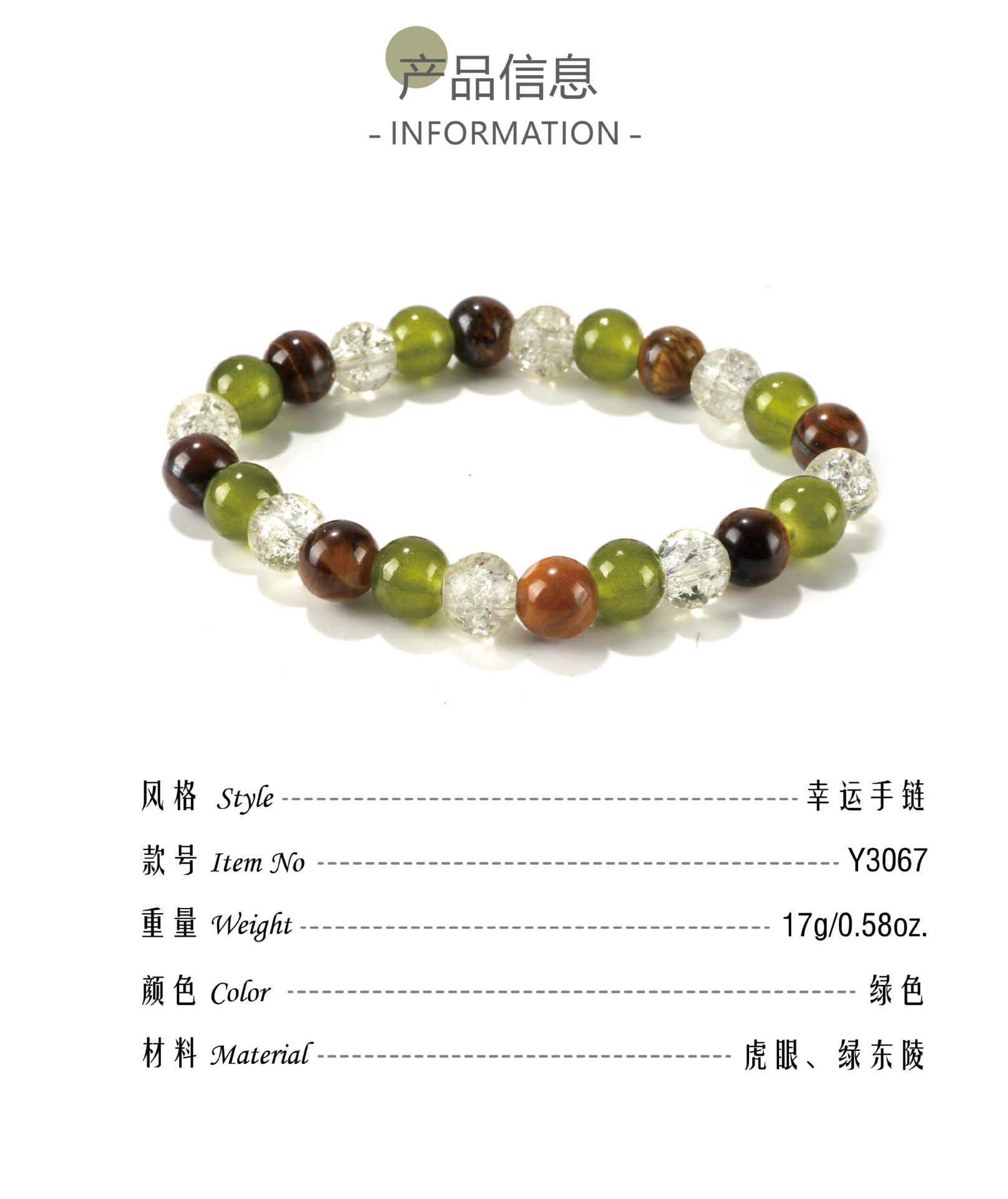 跨境亚马逊temu爆款8mm天然石虎眼石绿东陵串珠手链temuTK手链批