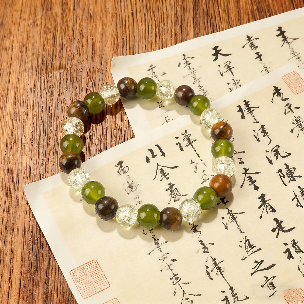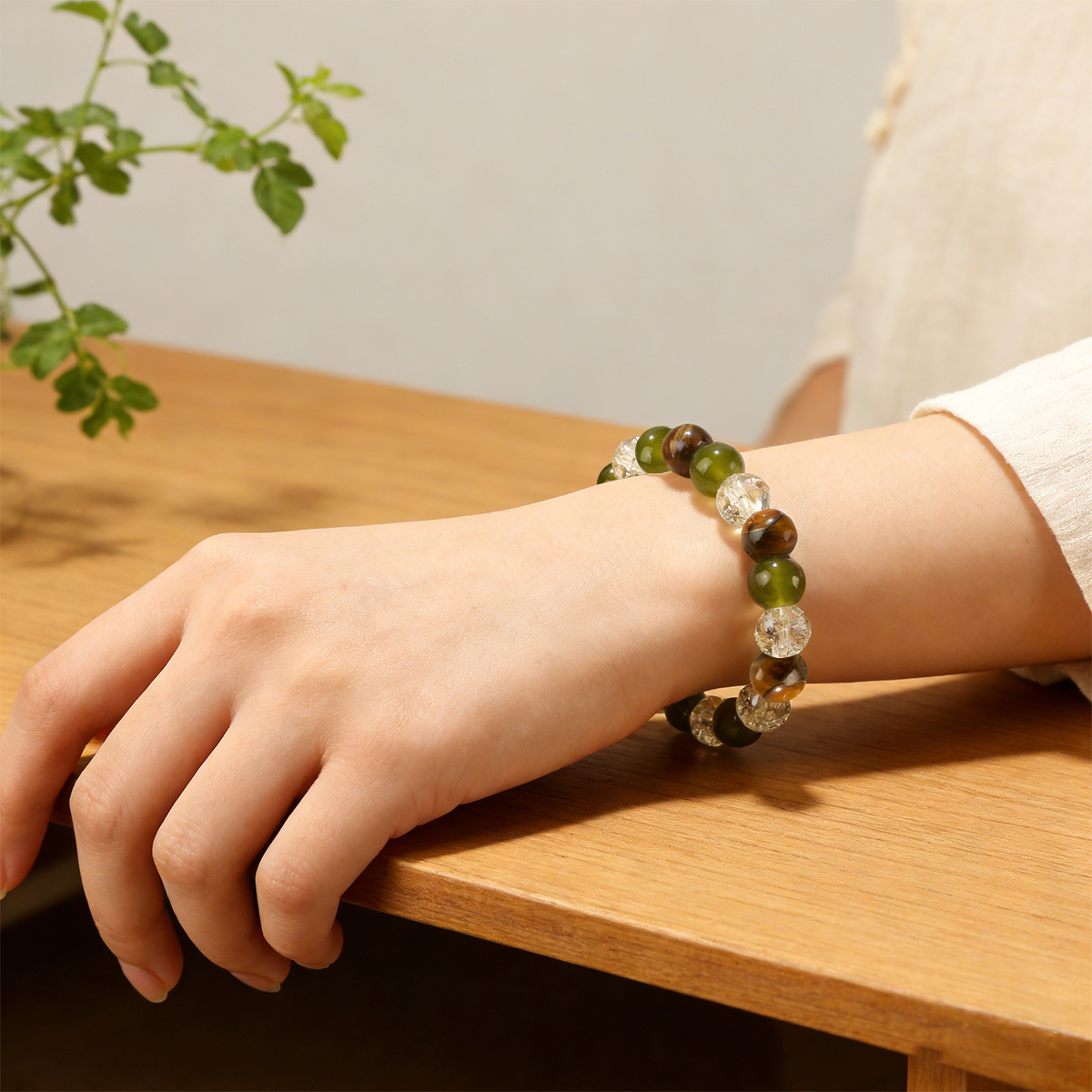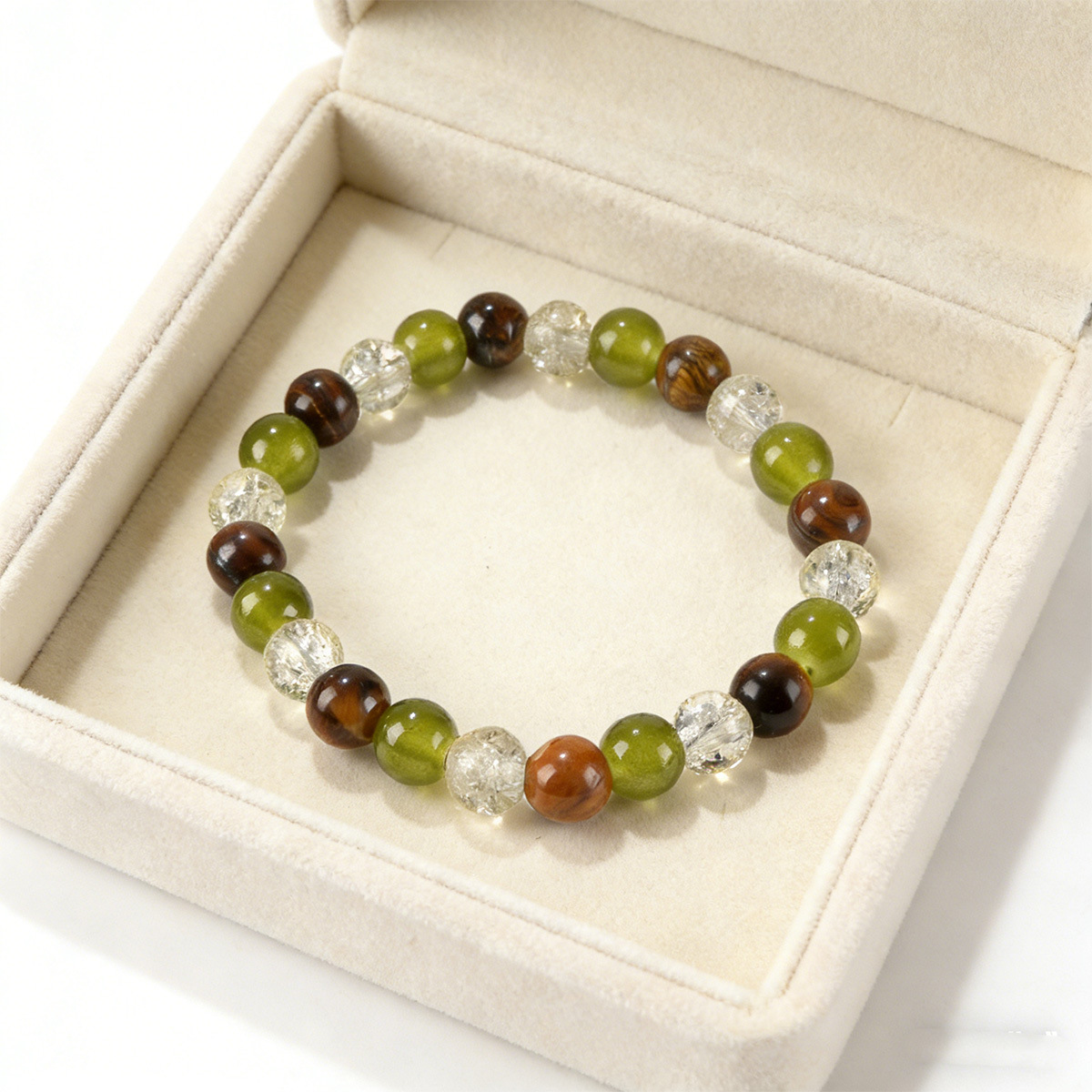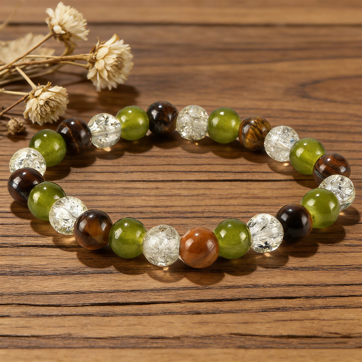 跨境亚马逊temu爆款8mm天然石虎眼石绿东陵串珠手链temuTK手链批