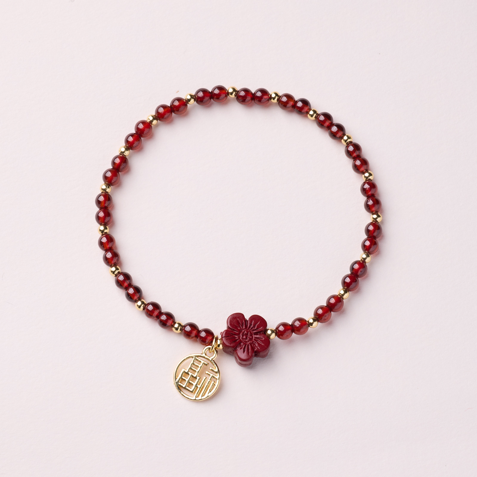 天然三圈石榴石手串女款水晶和田玉手链礼物轻奢小众简约百搭手饰