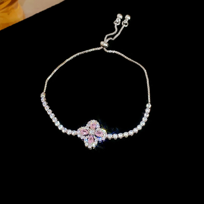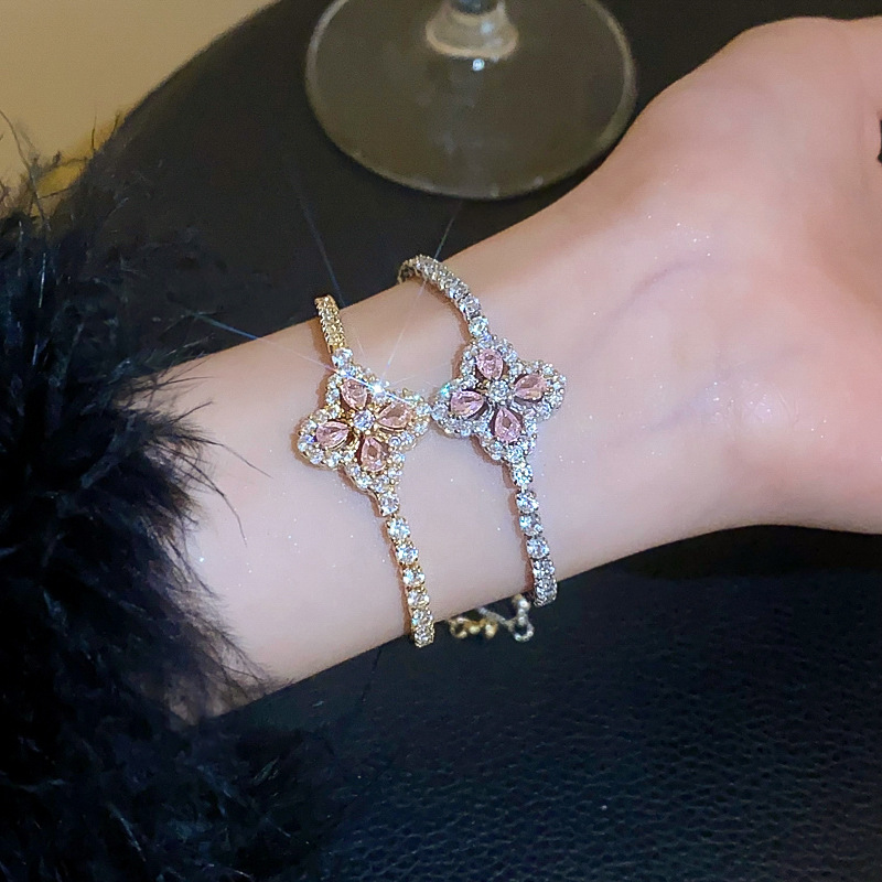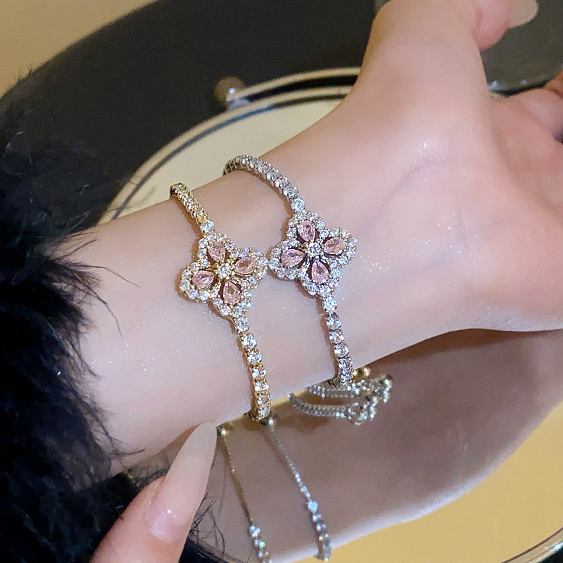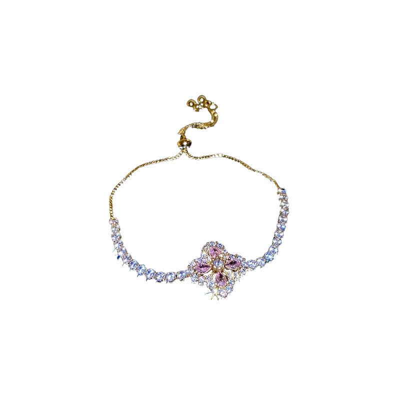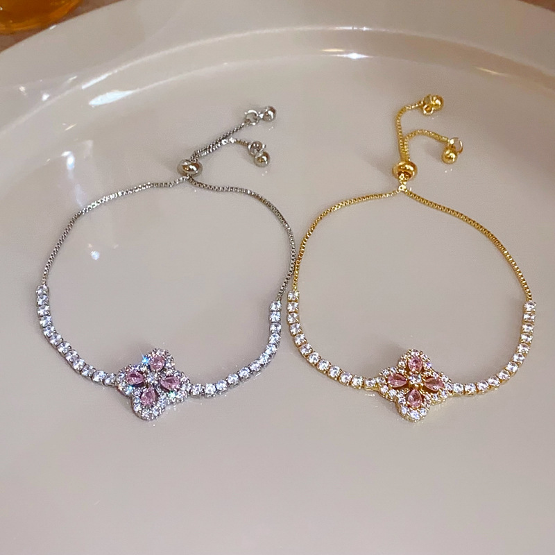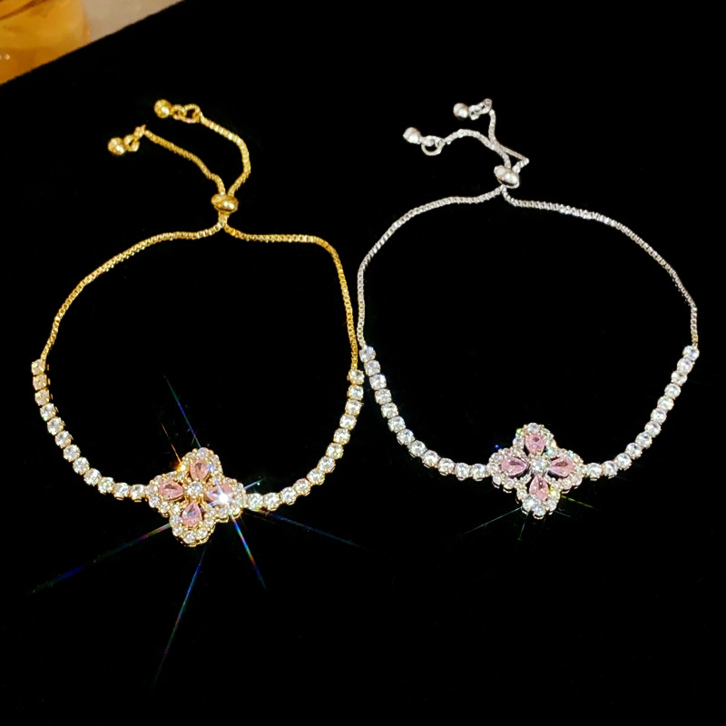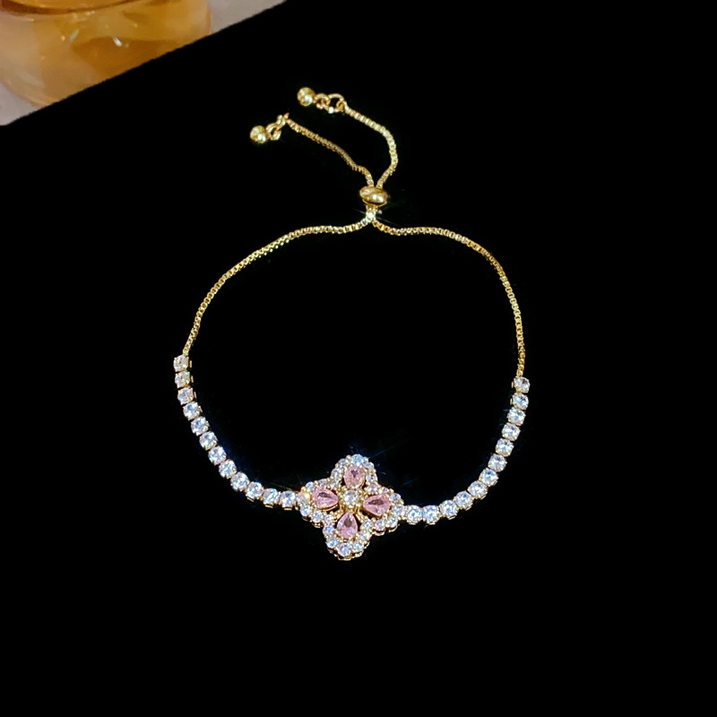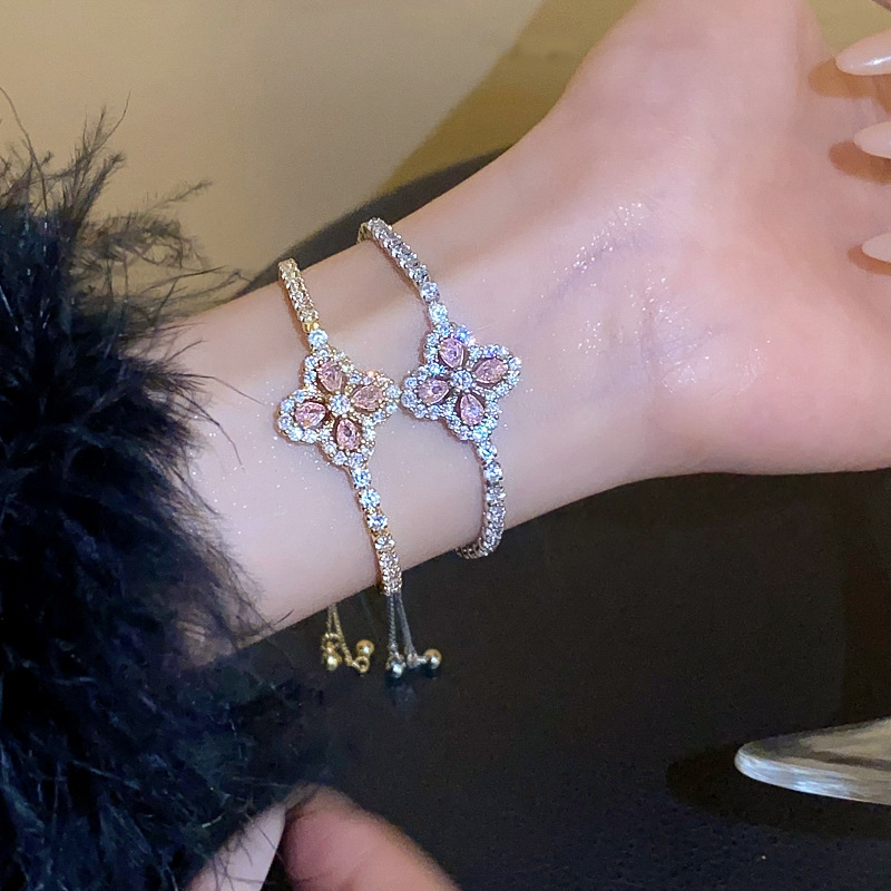 锆石水滴花朵可抽拉手链韩国小众气质百搭手环轻奢高级感新款手饰