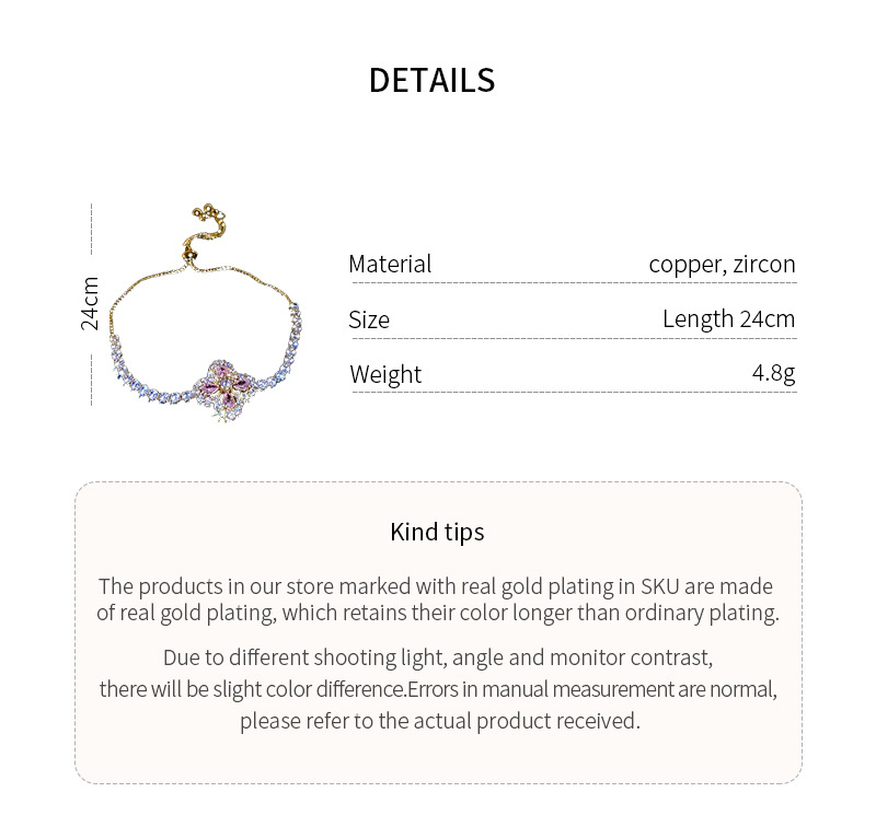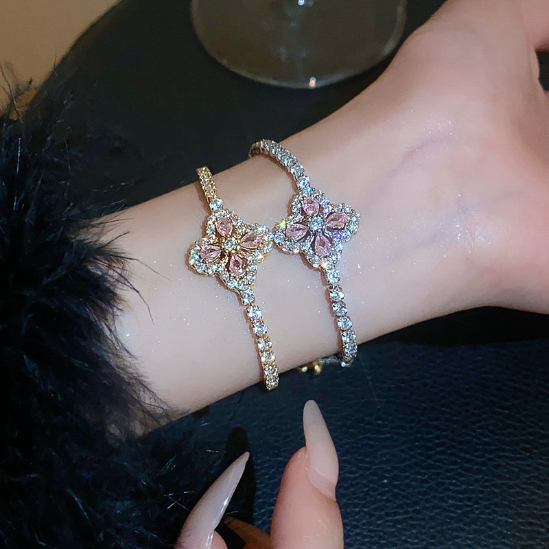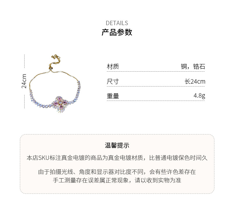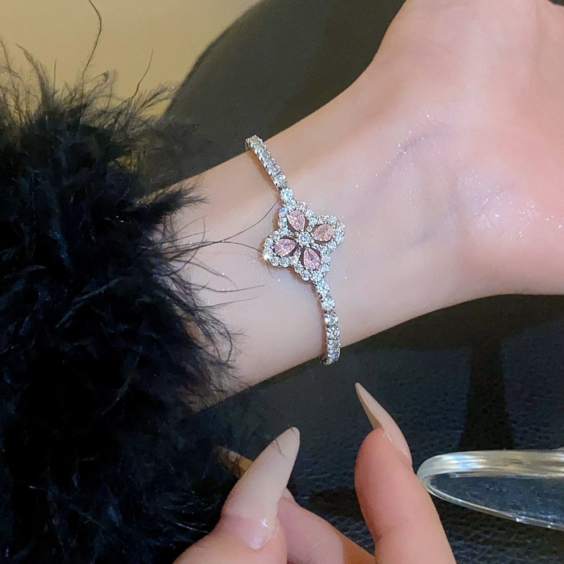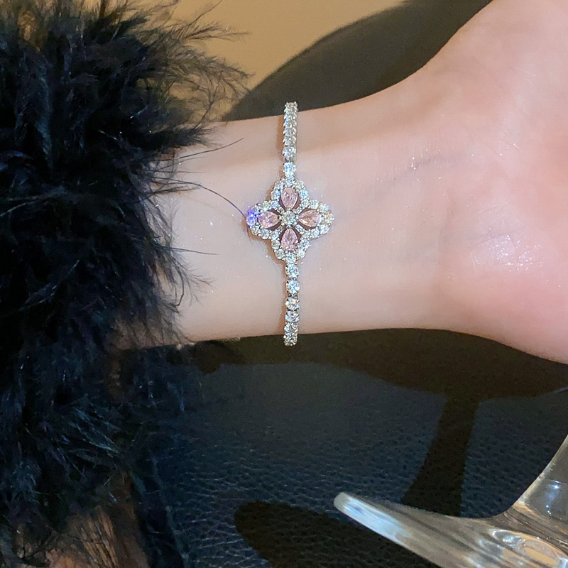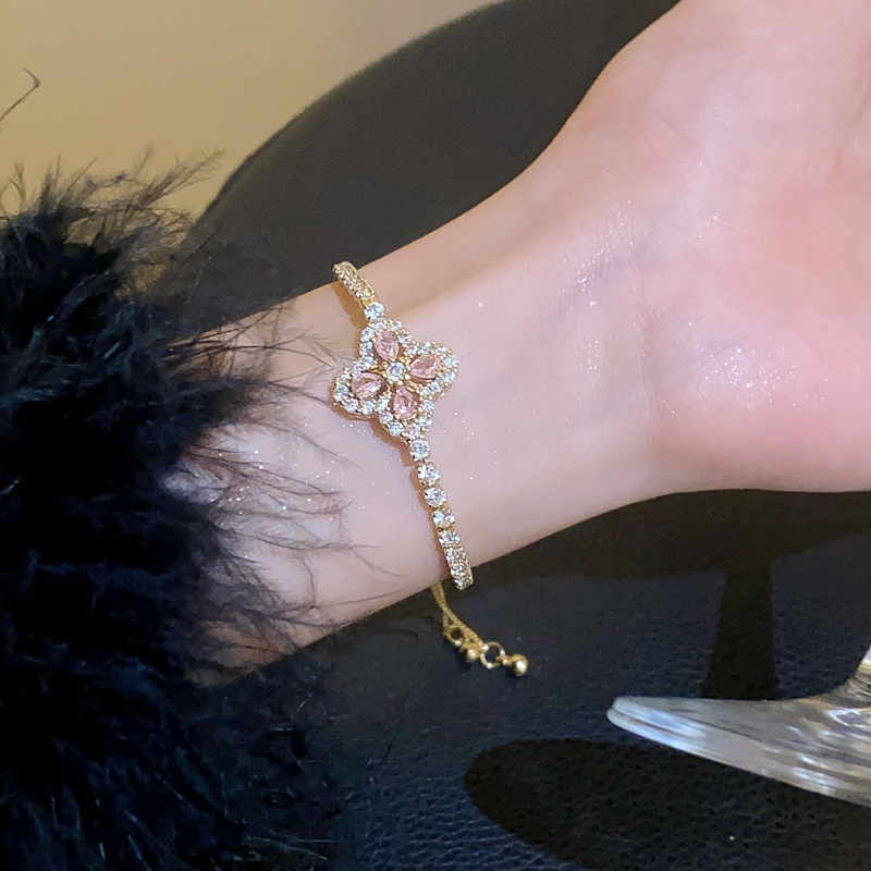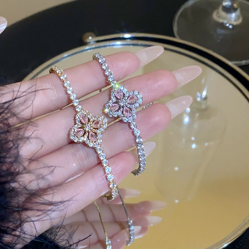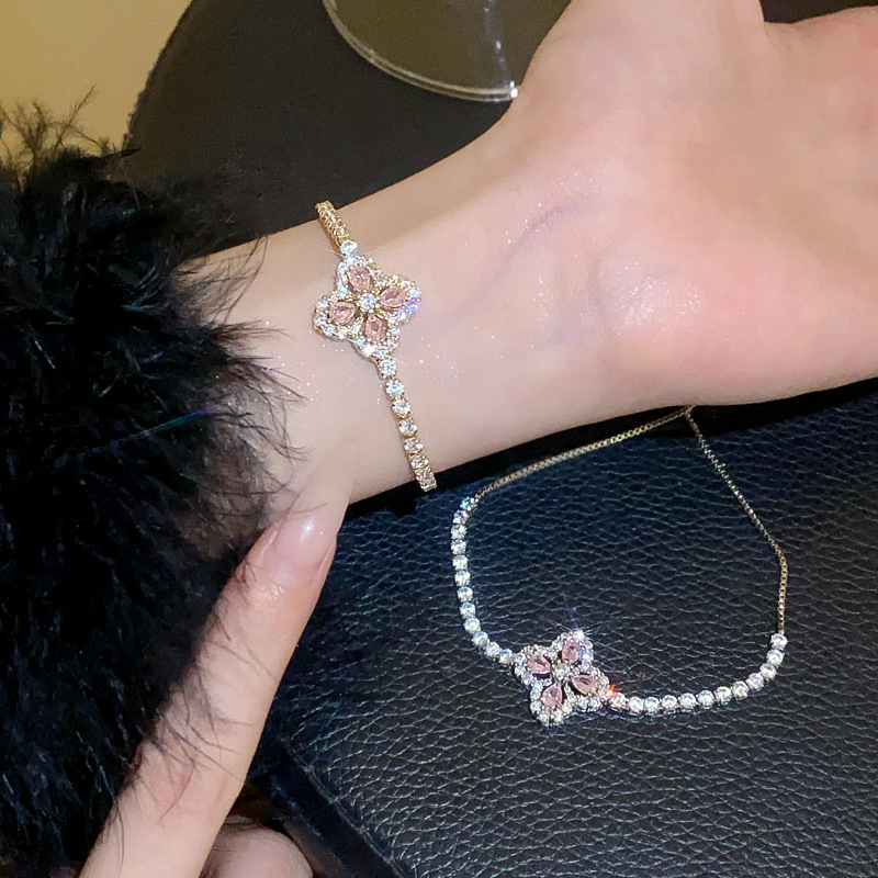 锆石水滴花朵可抽拉手链韩国小众气质百搭手环轻奢高级感新款手饰