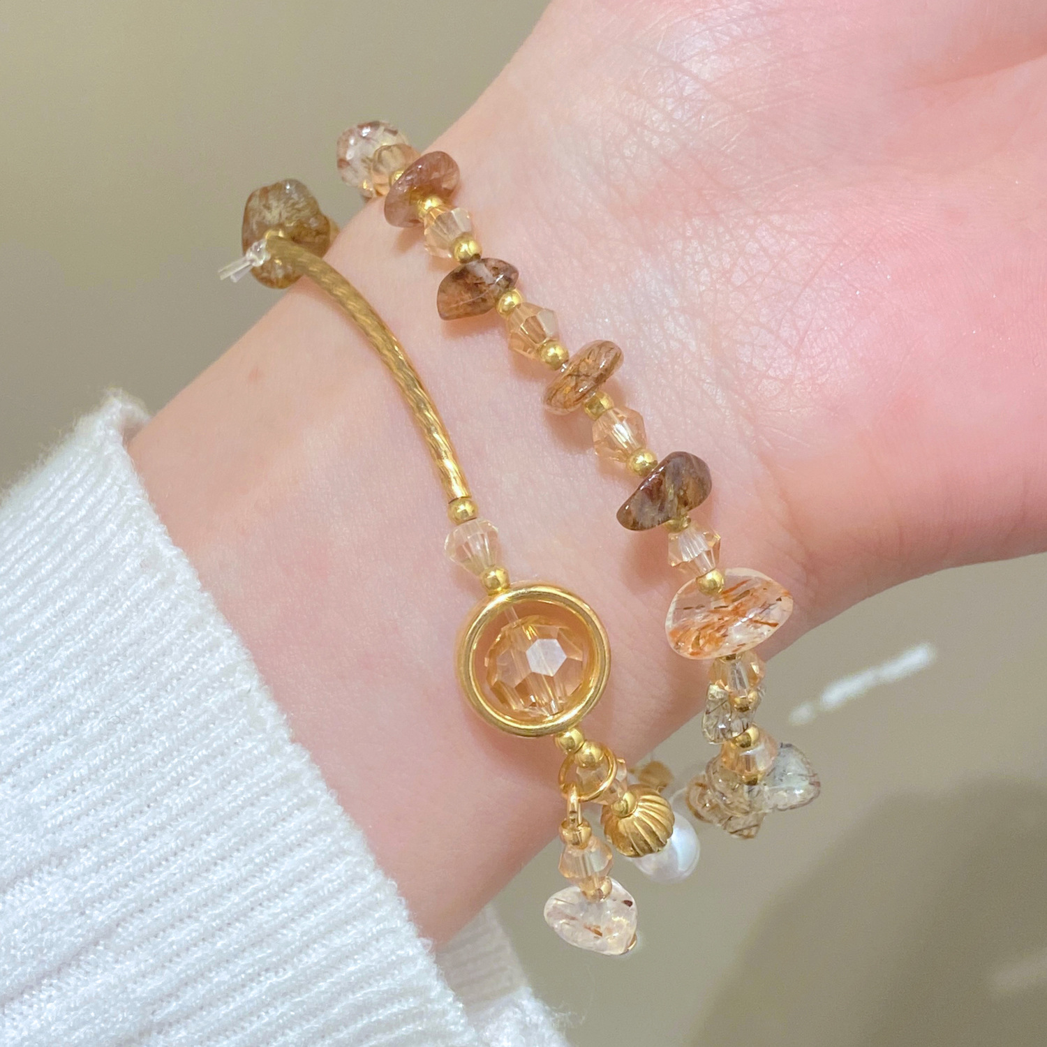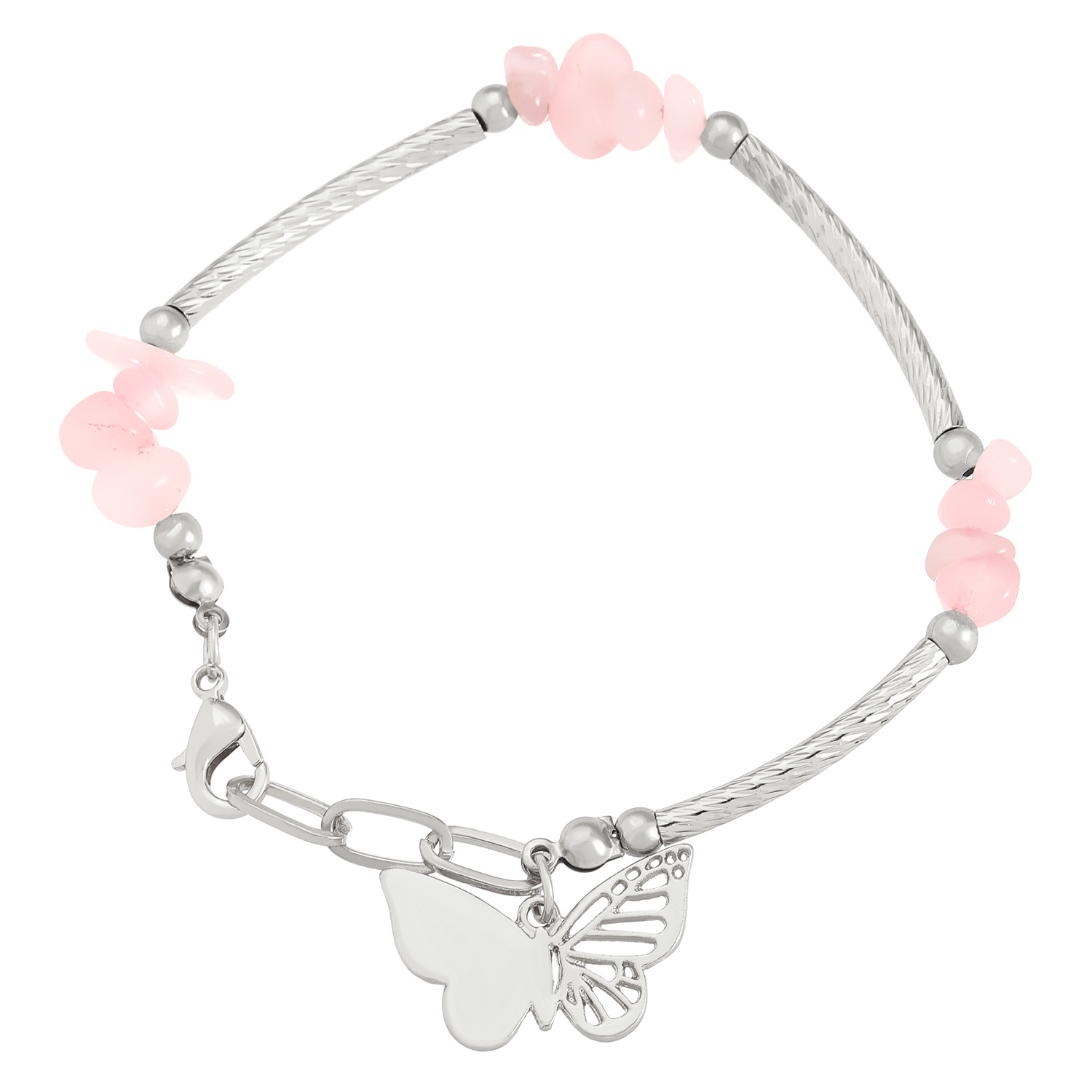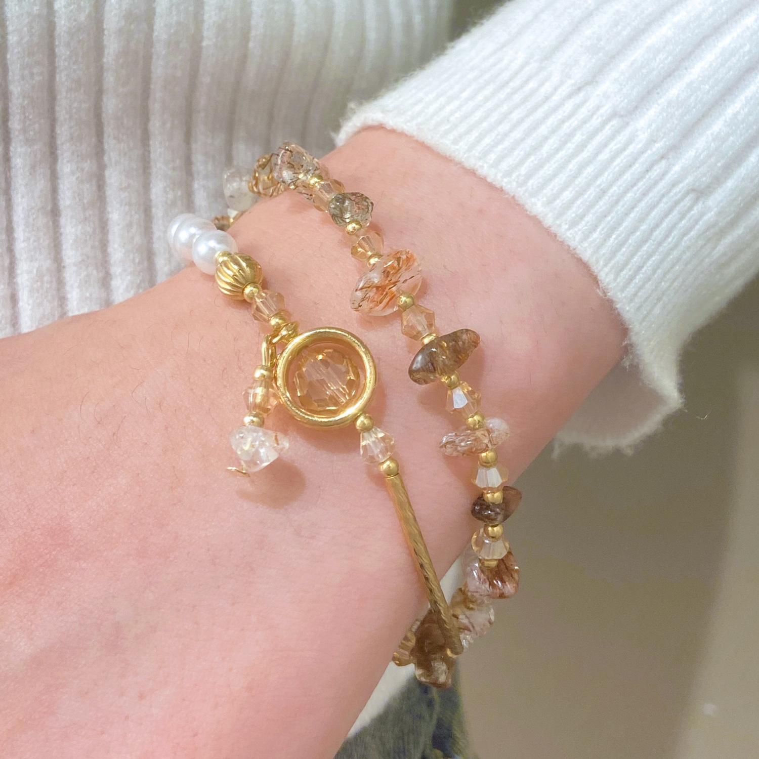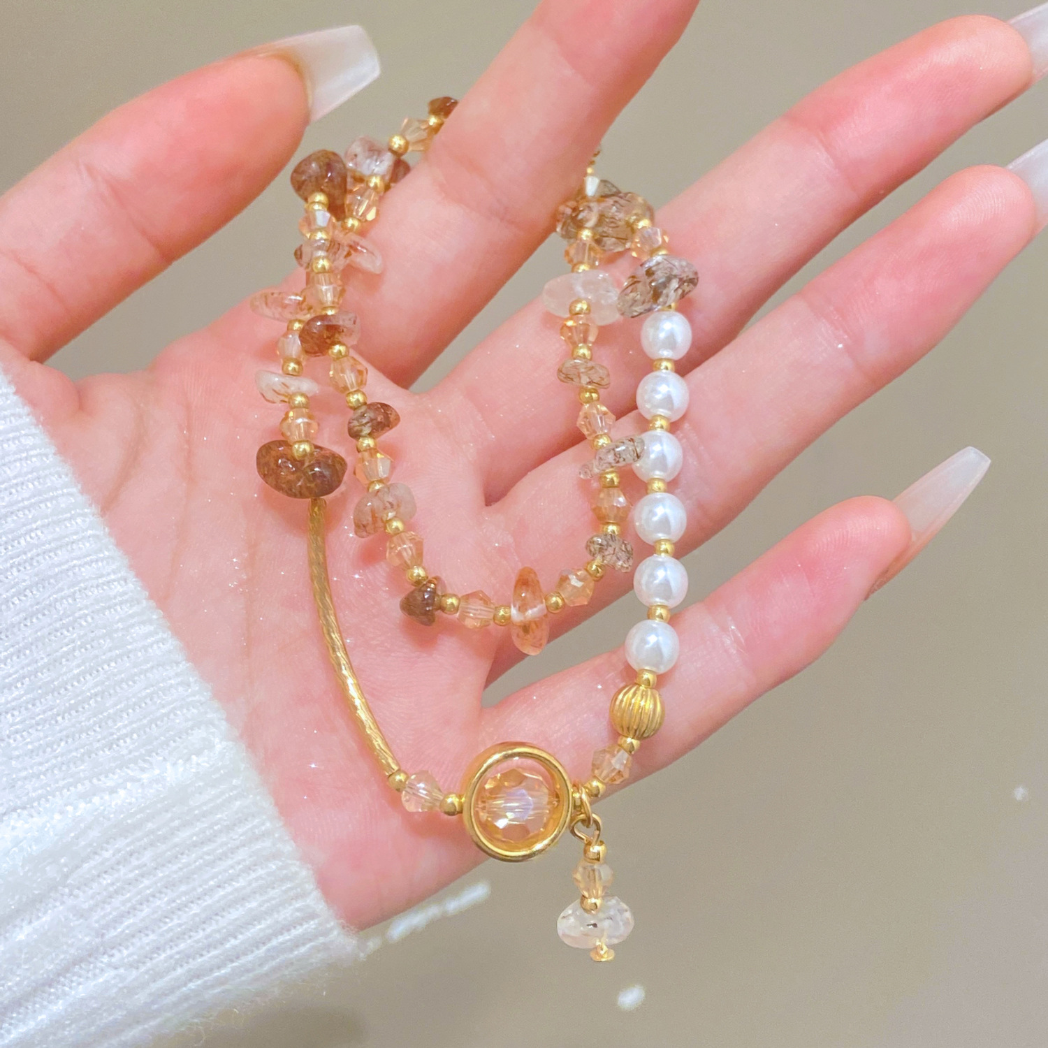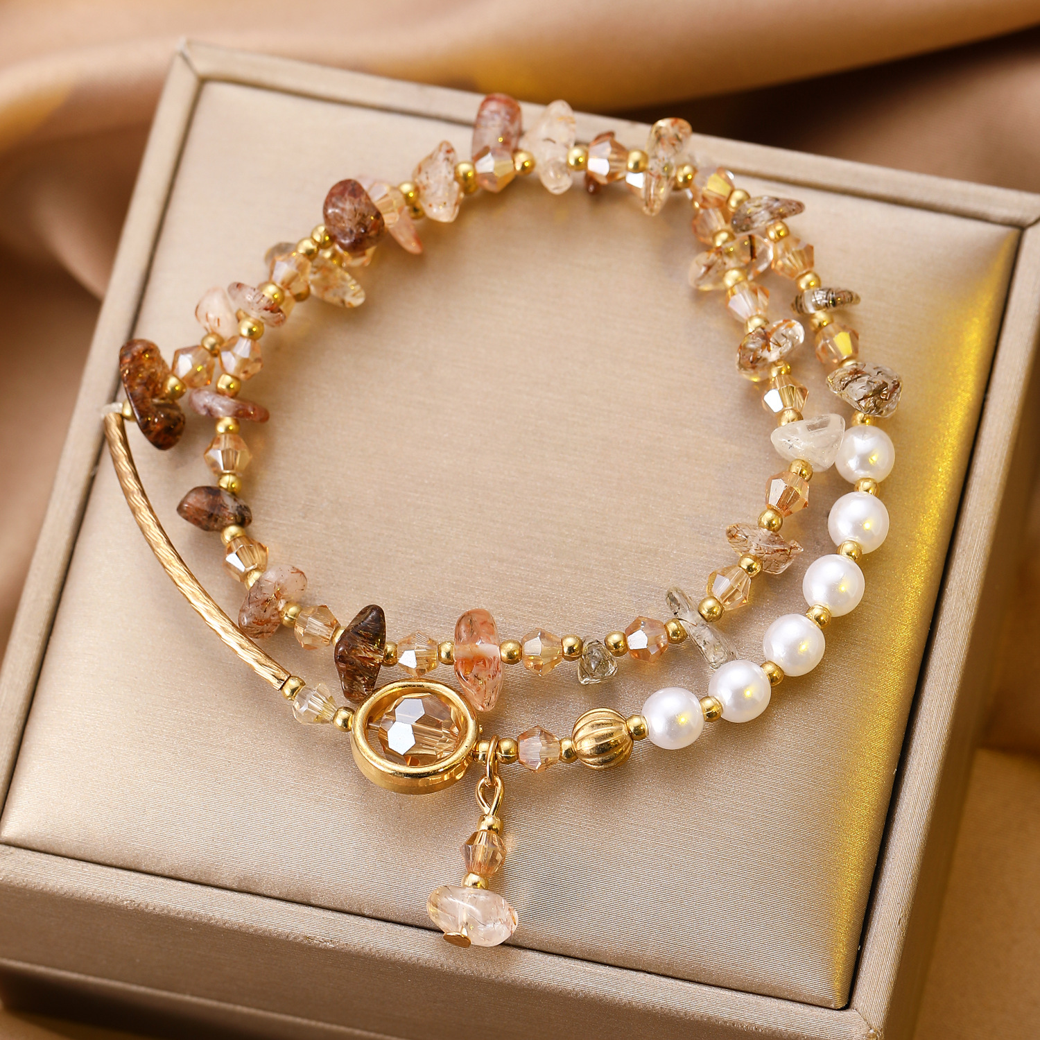 跨境复古天然石水晶仿珍珠叠戴手链女多巴胺彩色碎石蝴蝶吊坠手饰