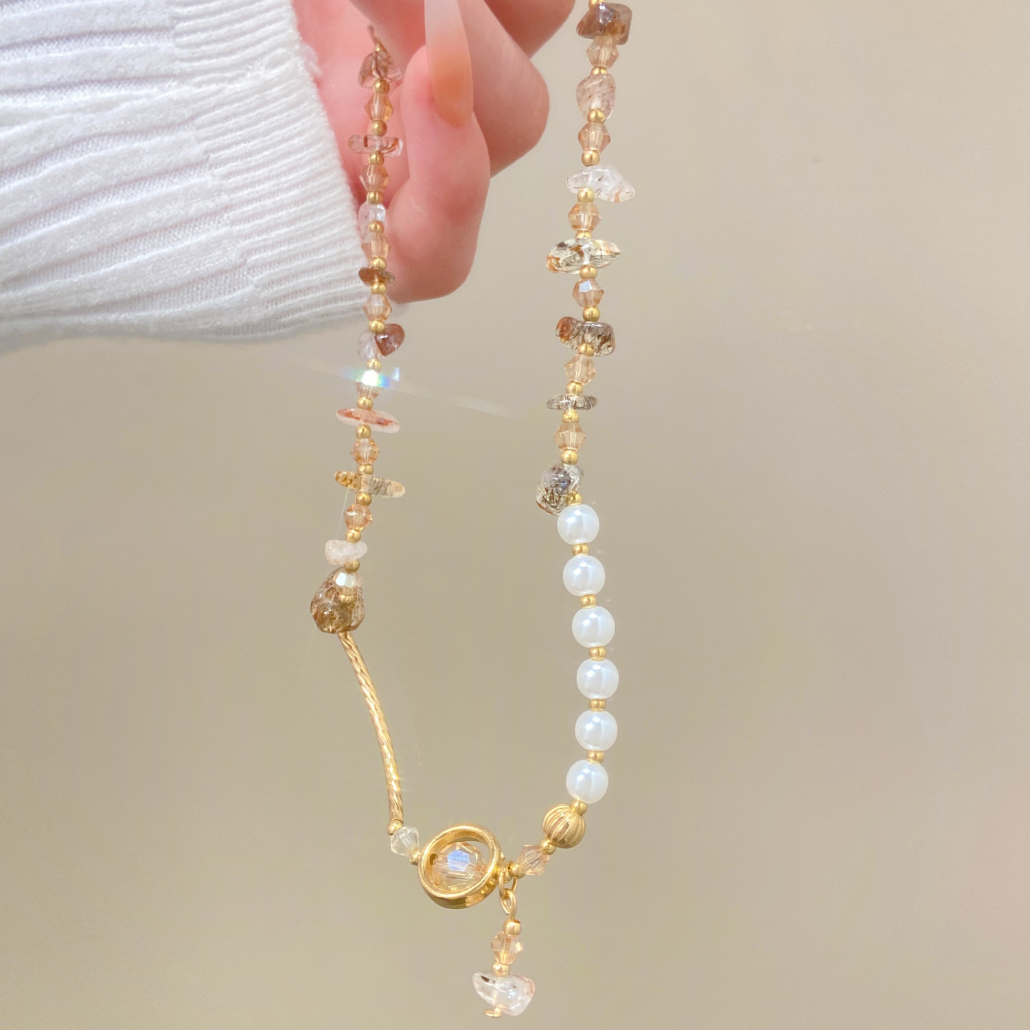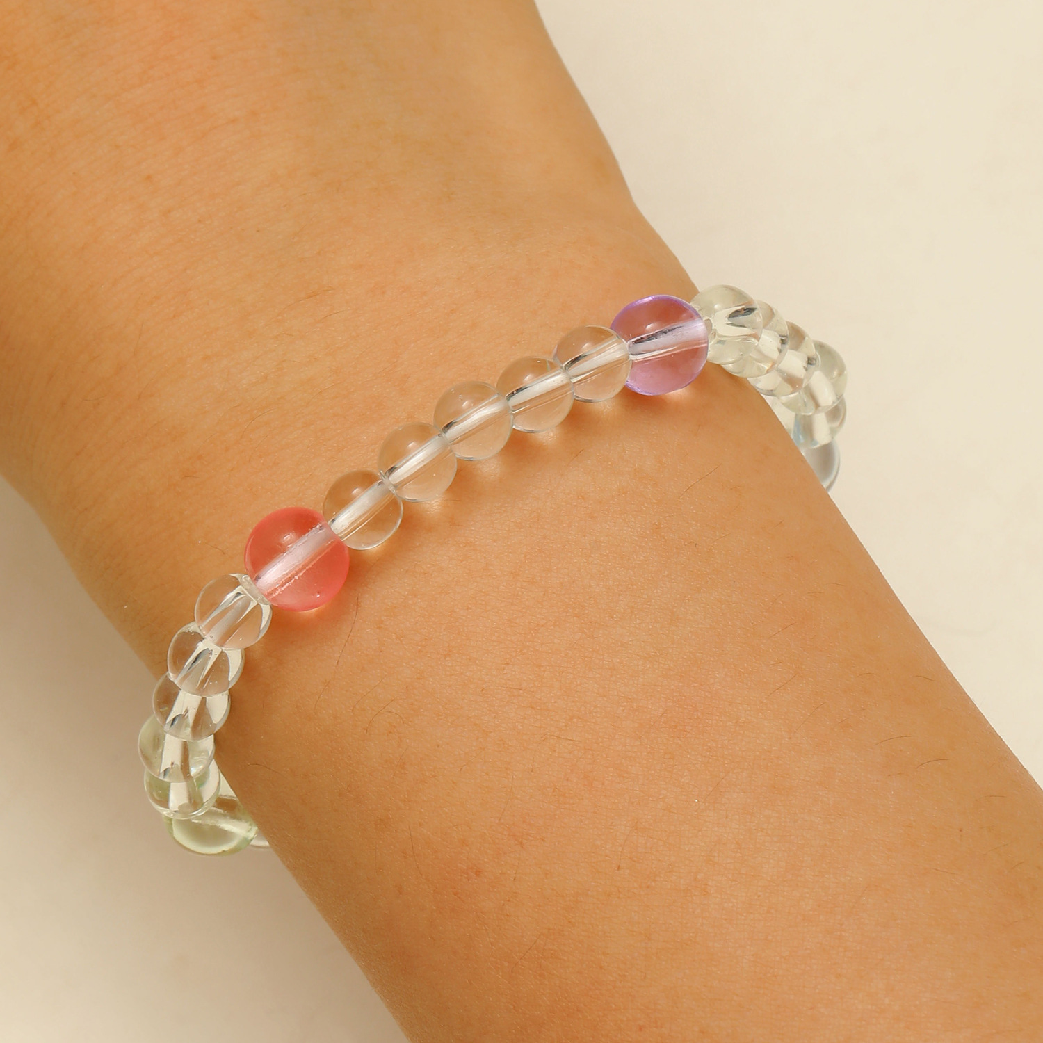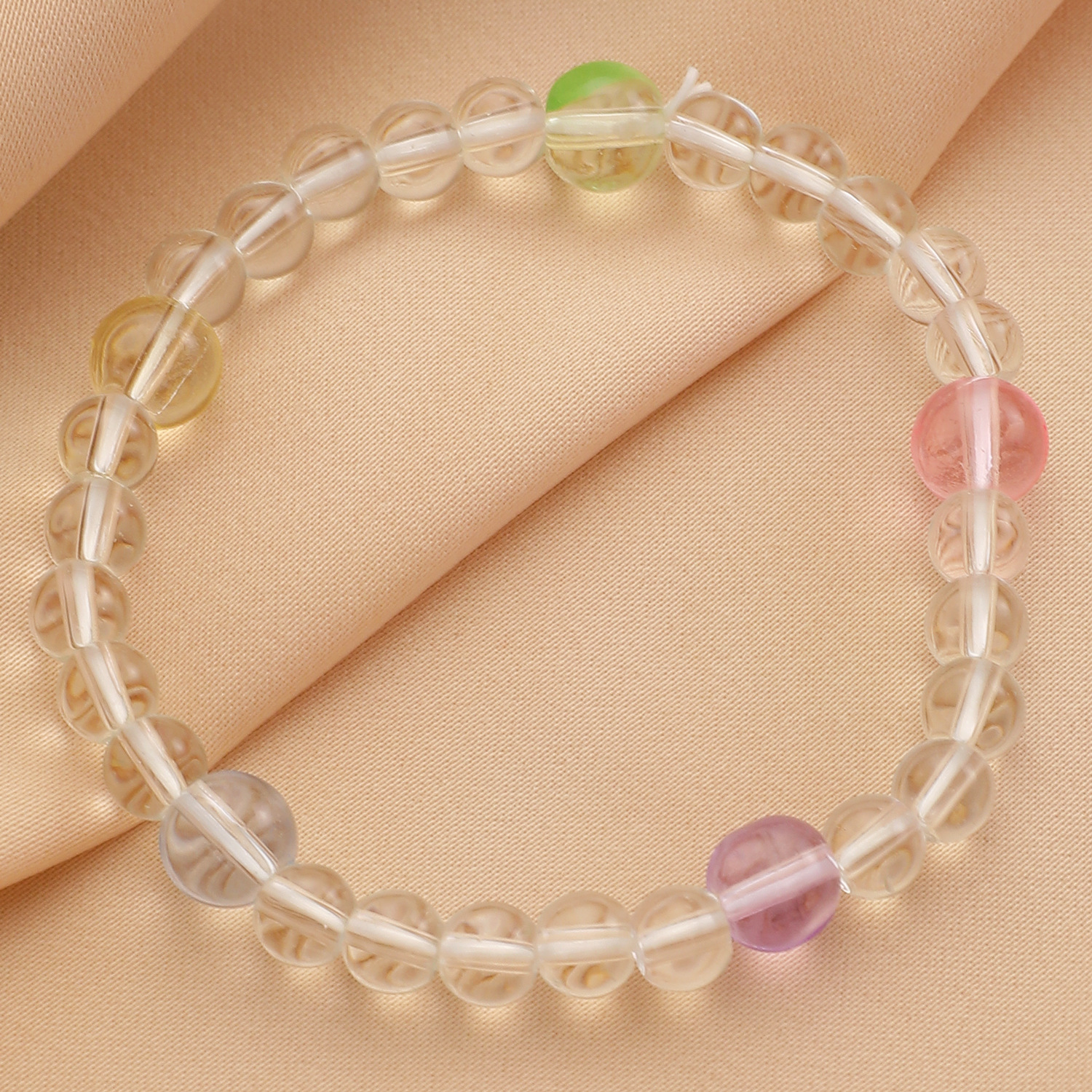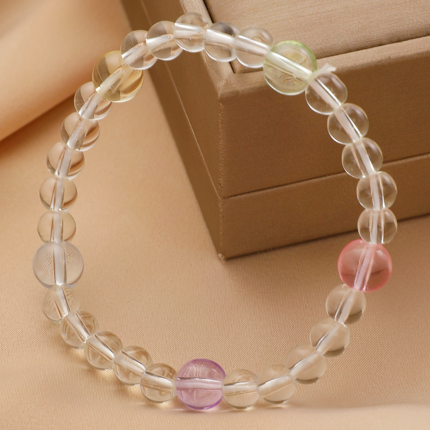 跨境复古天然石水晶仿珍珠叠戴手链女多巴胺彩色碎石蝴蝶吊坠手饰