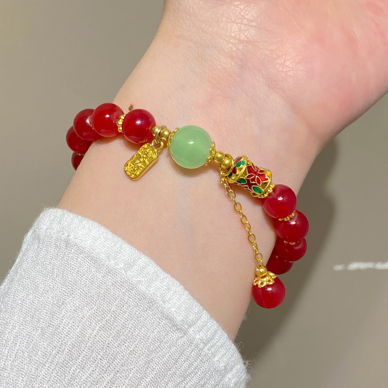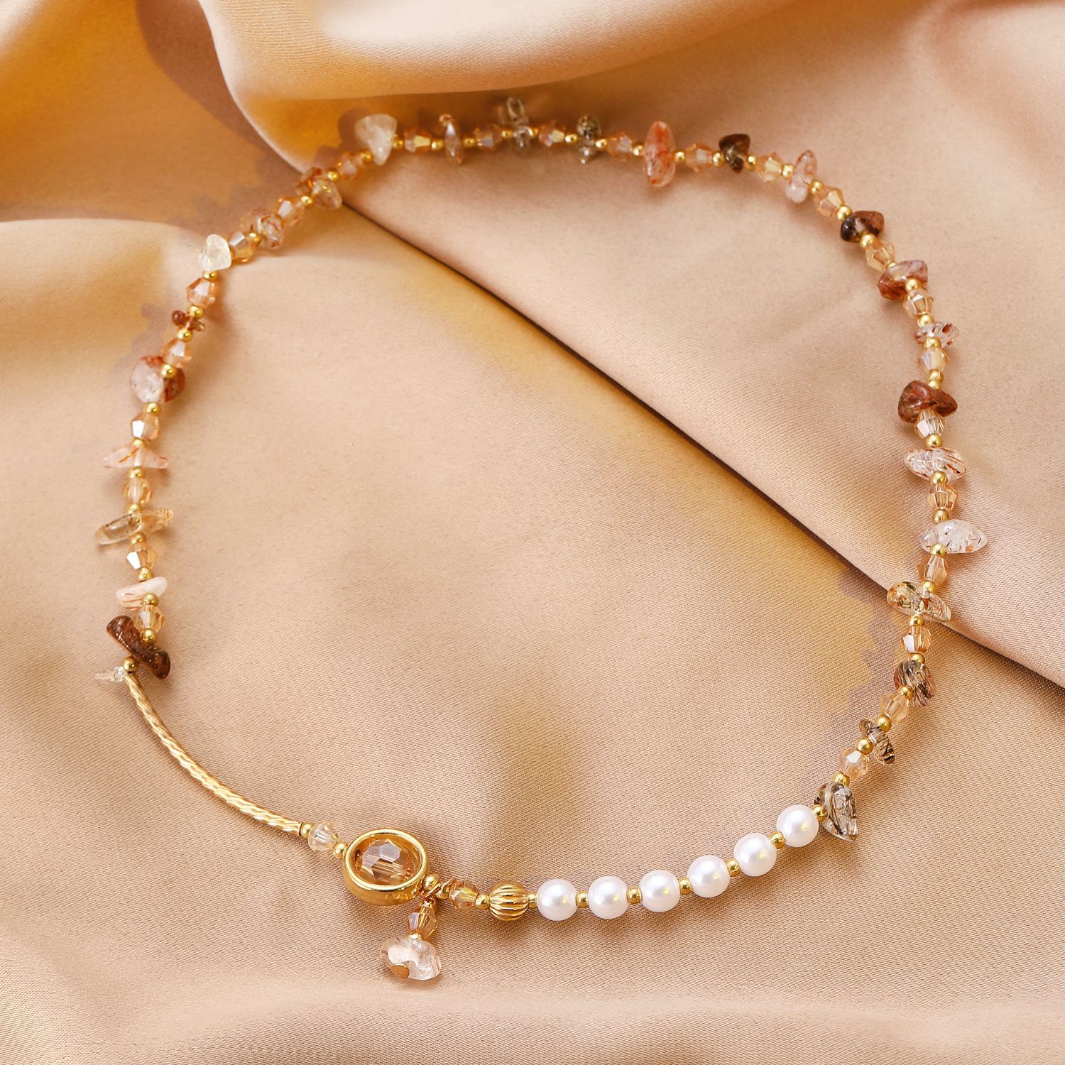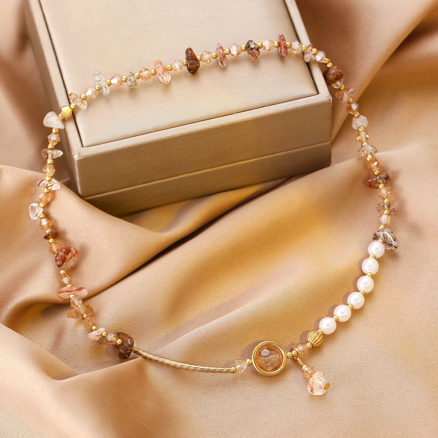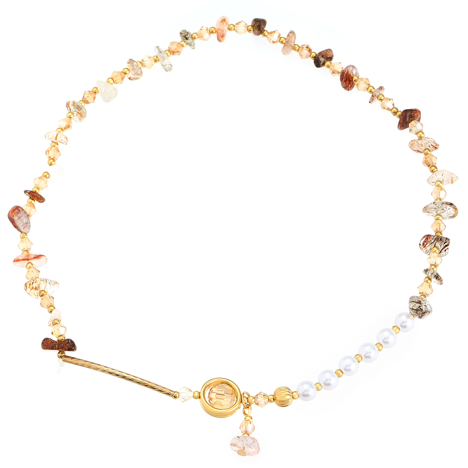 跨境复古天然石水晶仿珍珠叠戴手链女多巴胺彩色碎石蝴蝶吊坠手饰