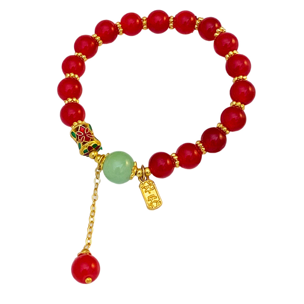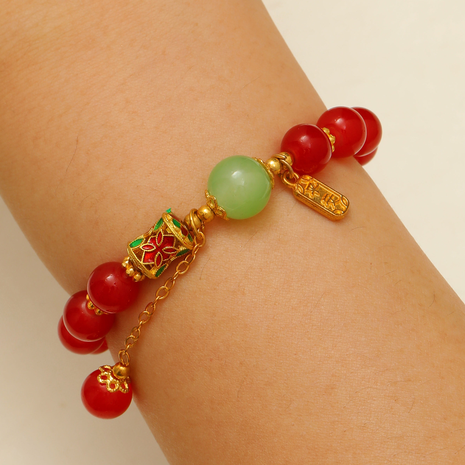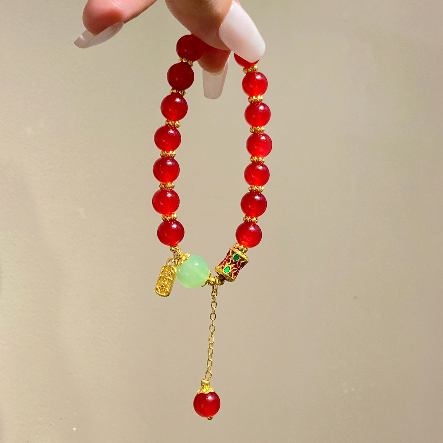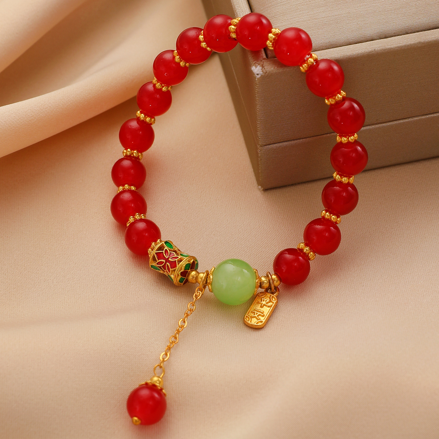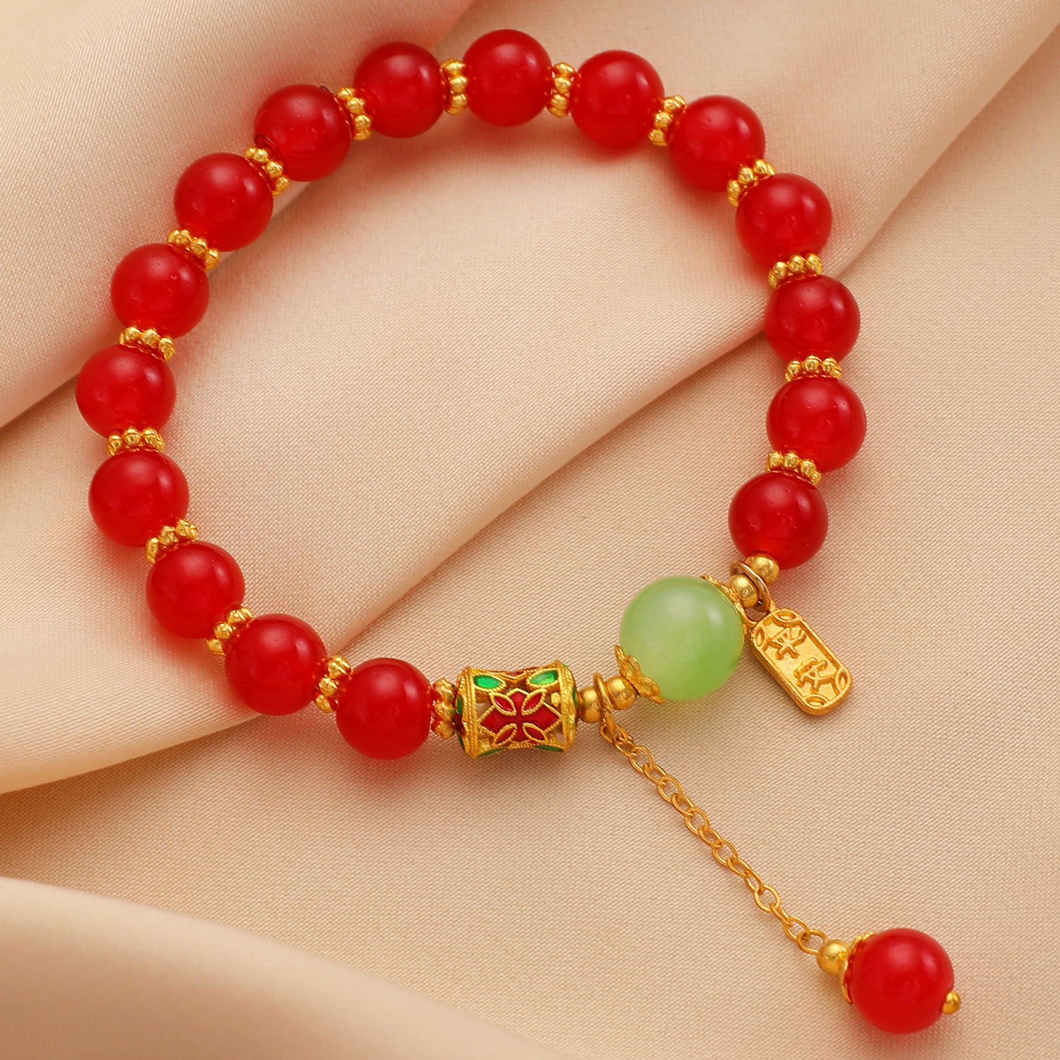 跨境复古天然石水晶仿珍珠叠戴手链女多巴胺彩色碎石蝴蝶吊坠手饰