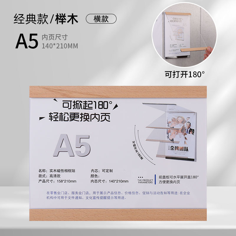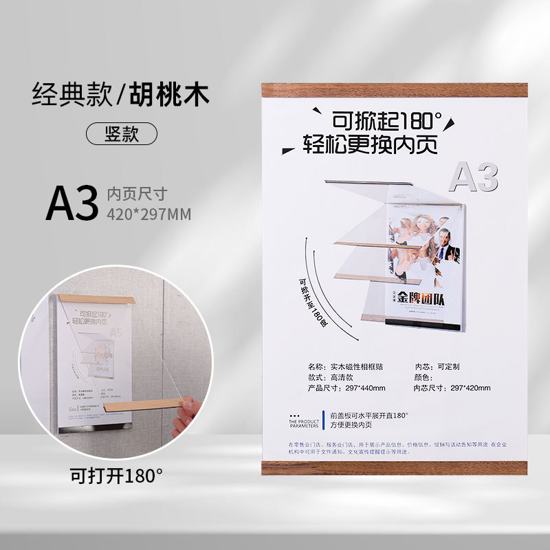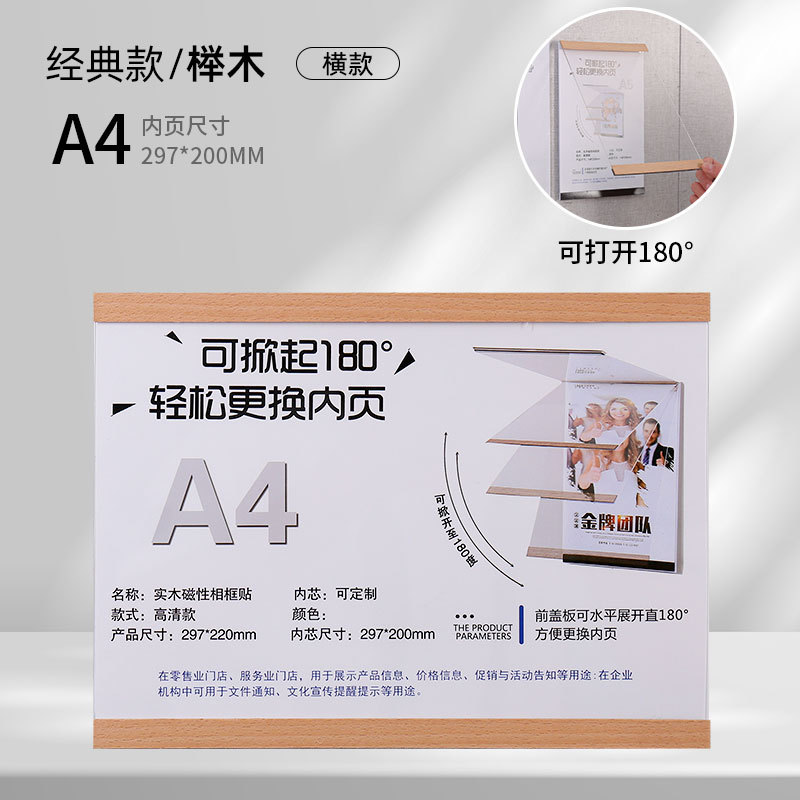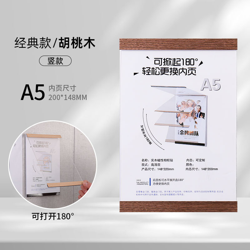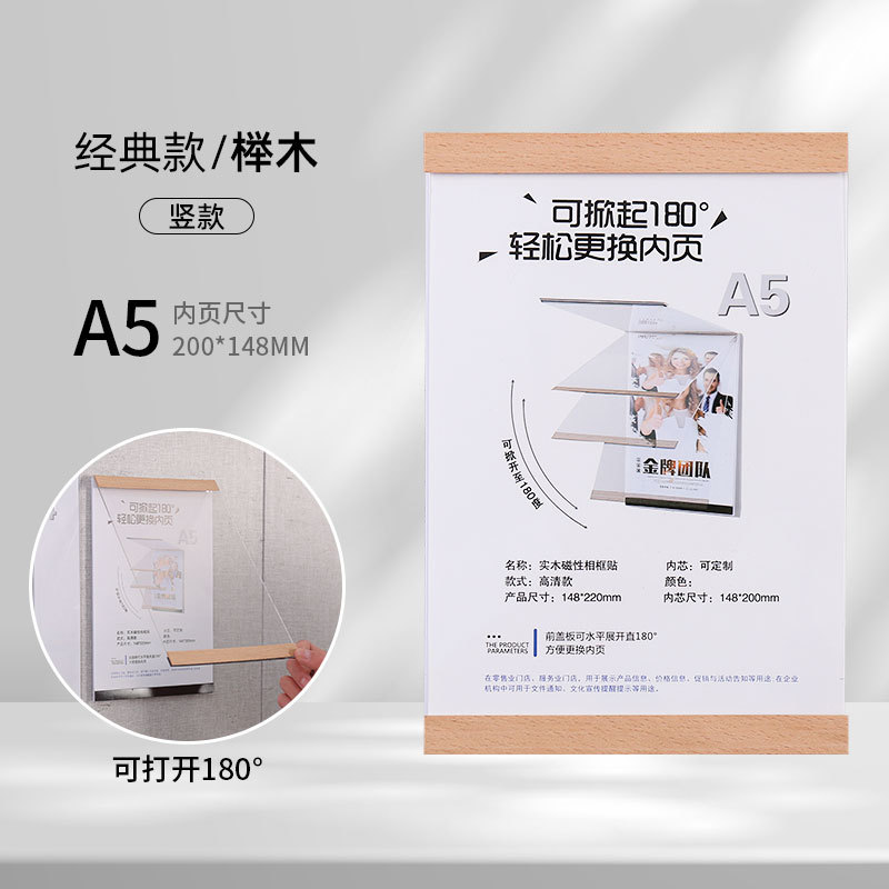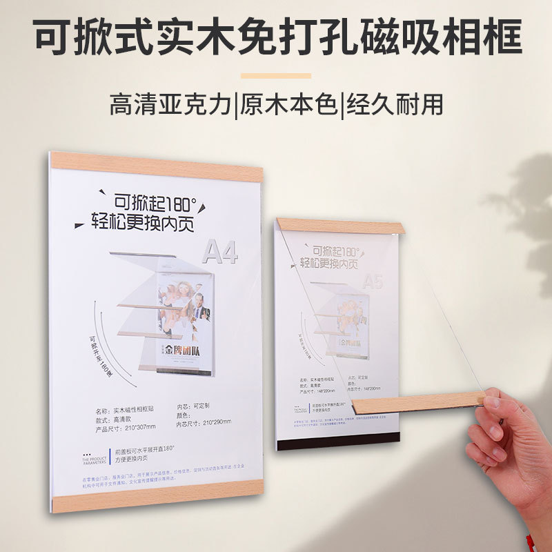 实木免打孔磁吸相框亚克力证书奖状荣誉展示框A4A5墙贴画框海报夹