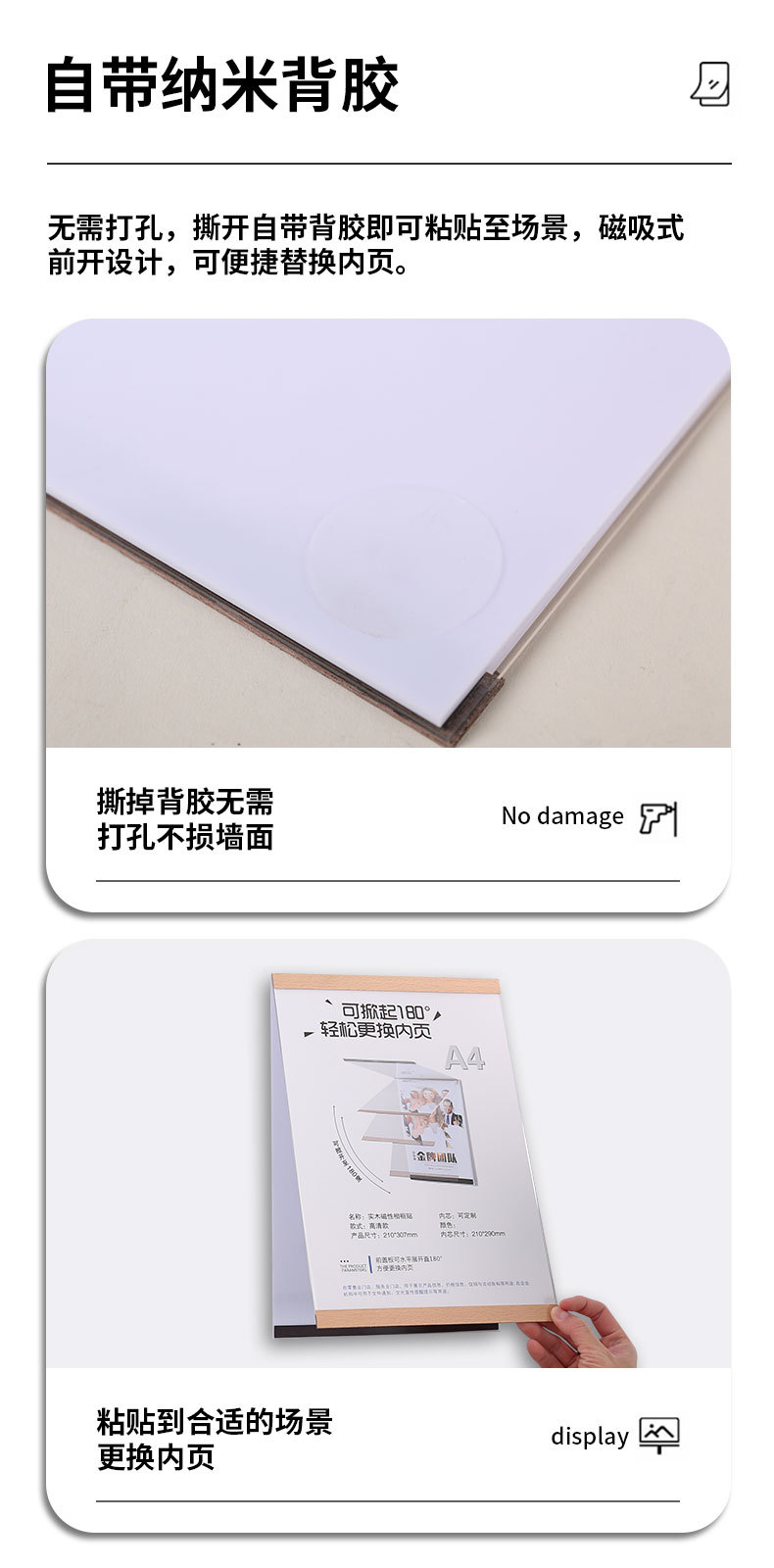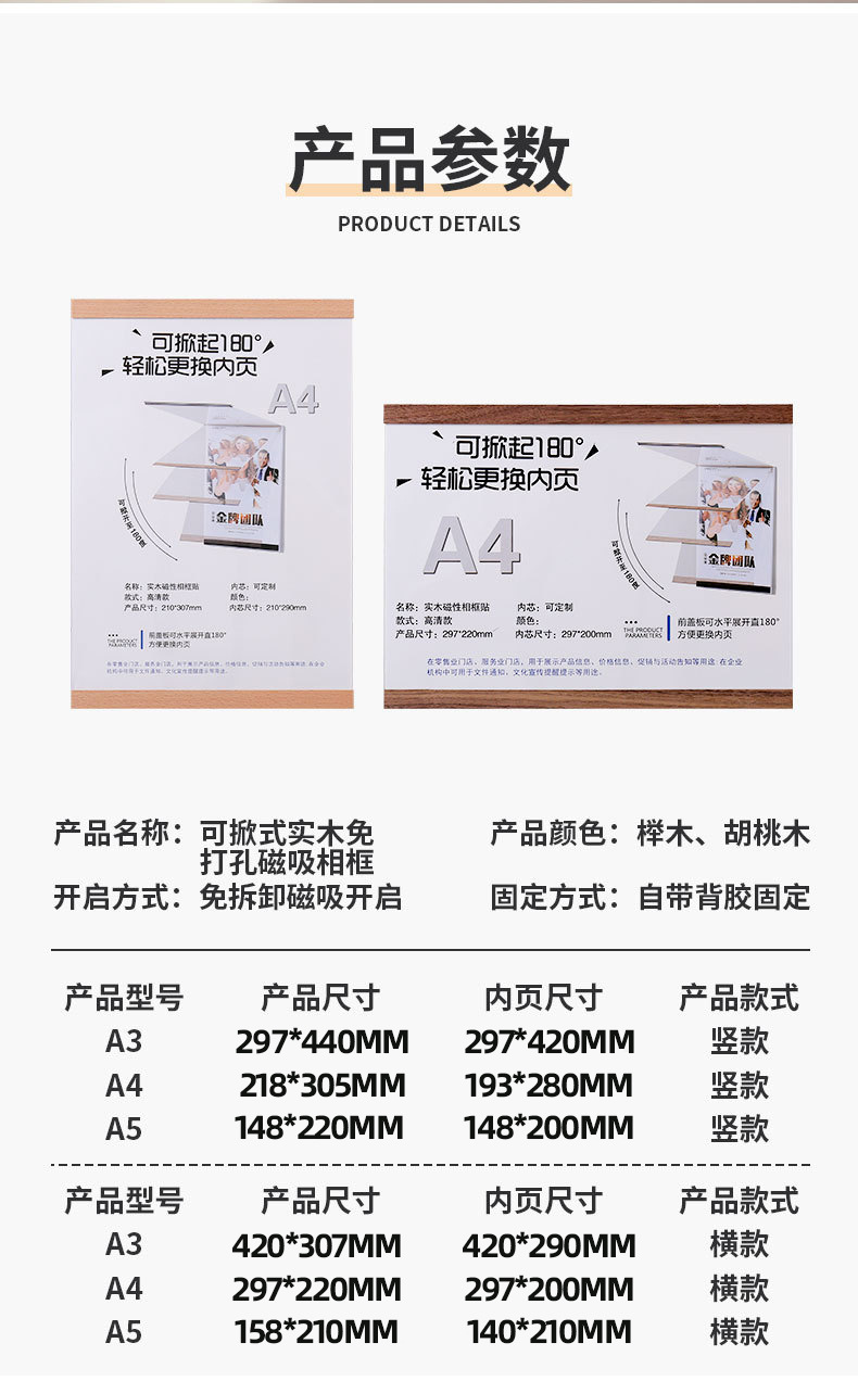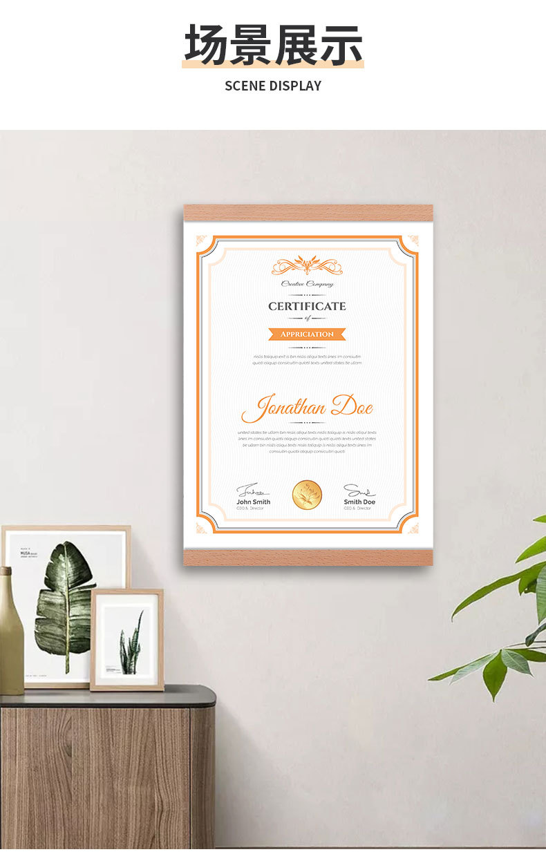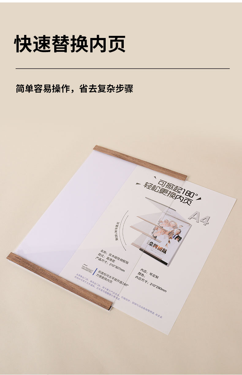 实木免打孔磁吸相框亚克力证书奖状荣誉展示框A4A5墙贴画框海报夹