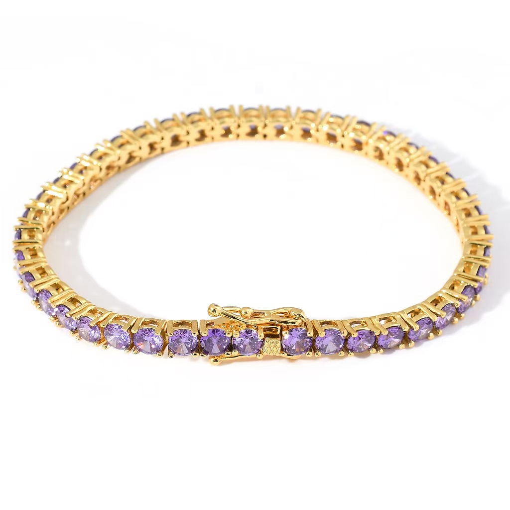 跨境欧美简约高级感网球满钻锆石手链男女款小众轻奢饰品源头批发