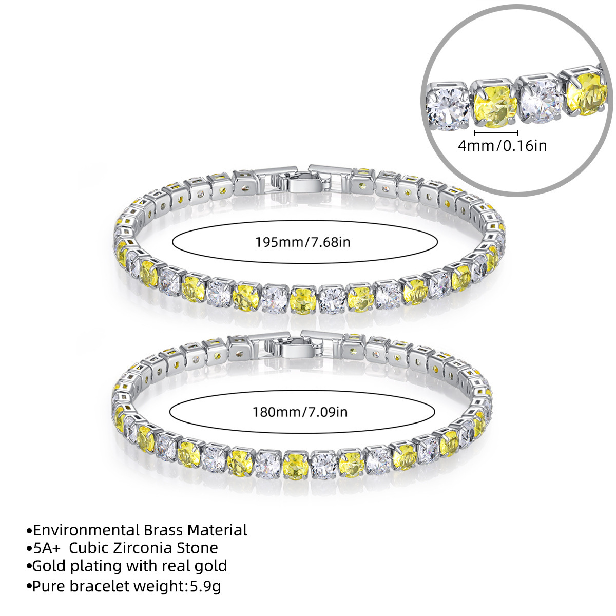 欧美热销直播货源时尚4mm间色锆石手链高级感轻奢网球手链批发