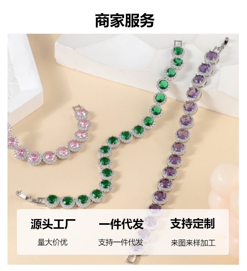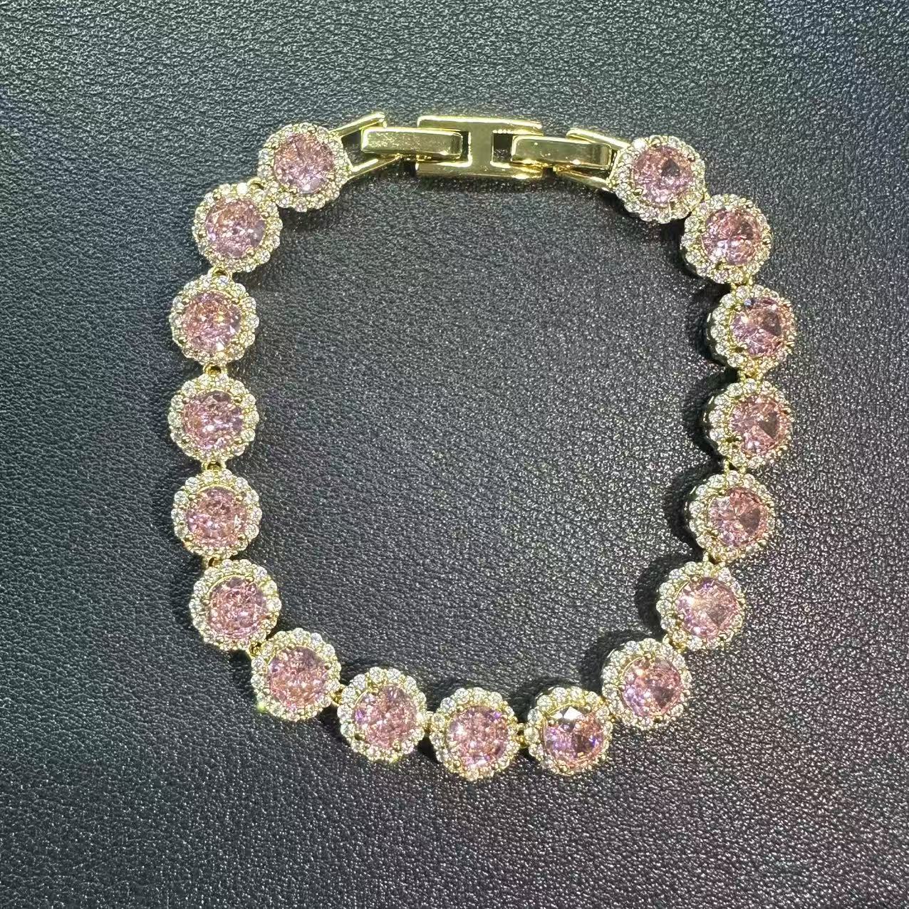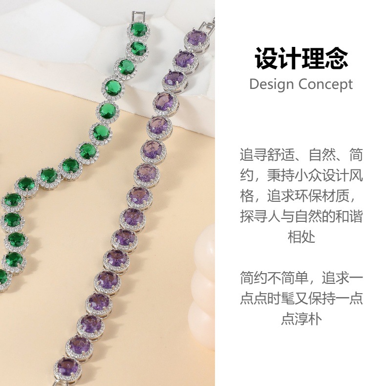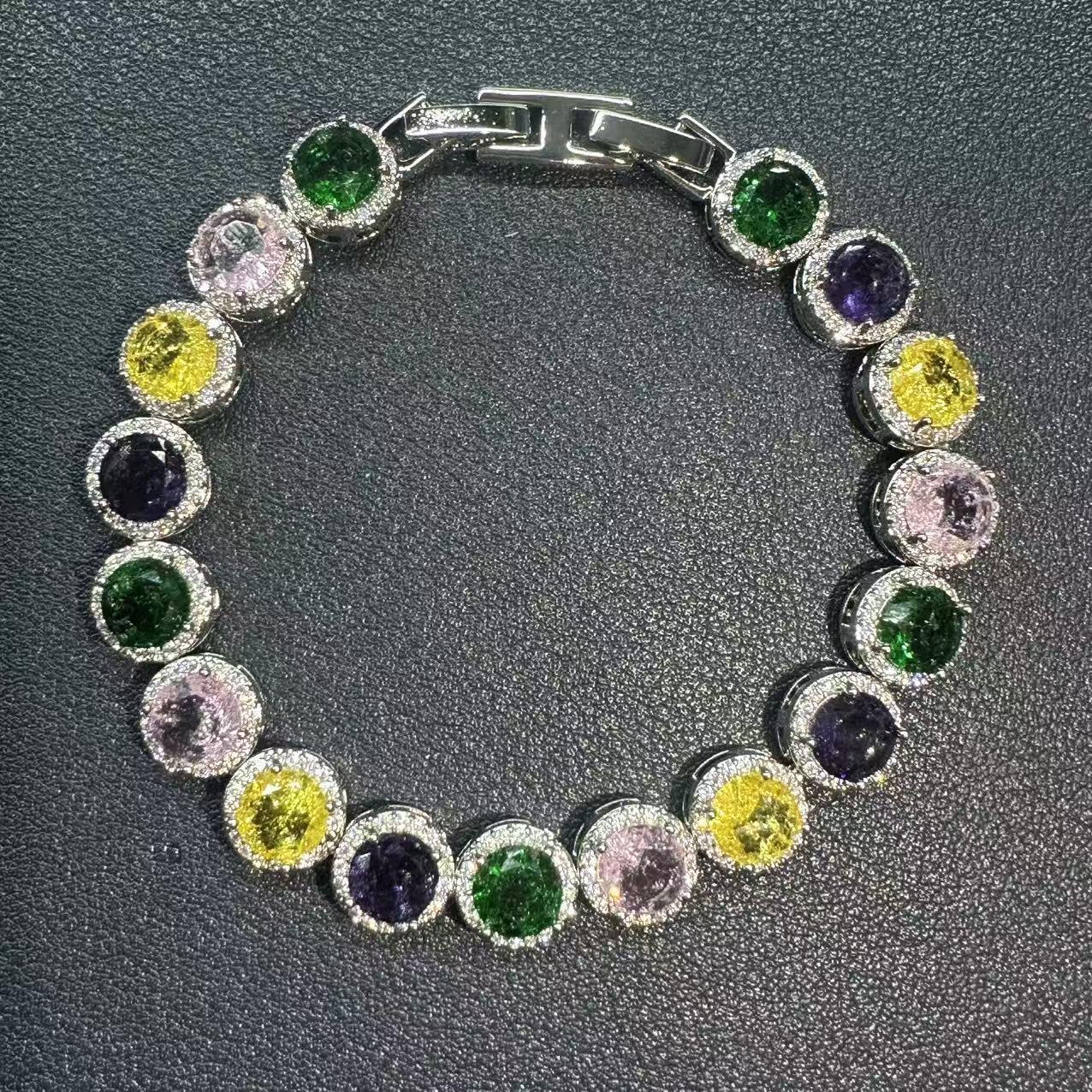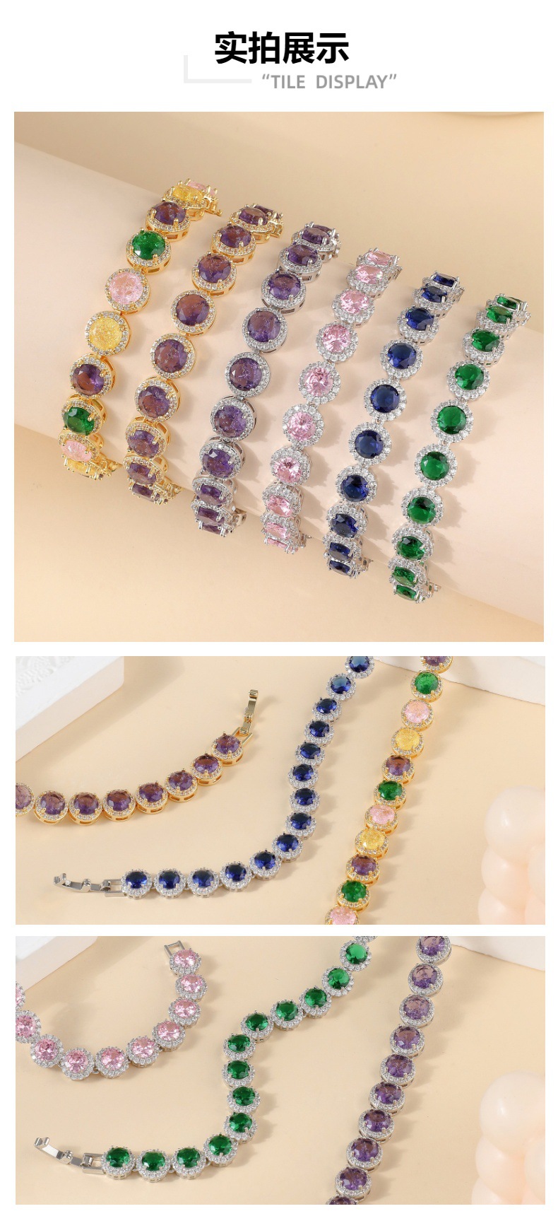 跨境欧美时尚镂空圆形手链镀金镶嵌锆石手饰女士时尚百搭彩色轻奢